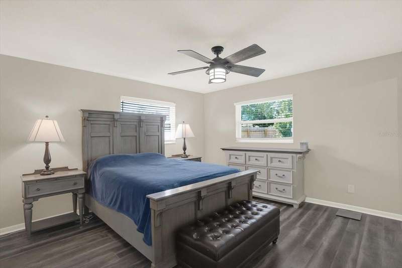 WELCOME TO THIS BEAUTIFULLY MAINTAINED 3-BEDROOM, 2-BATH BLOCK CONSTRUCTION HOME IN UNINCORPORATED SEMINOLE! This property is equipped with modern finishes and an inviting layout. The open concept living area features durable vinyl flooring and abundant natural light throughout. The kitchen boasts sleek stone countertops, stainless steel appliances, and plenty of cabinet space—perfect for cooking and entertaining. Outside, enjoy excellent curb appeal with fresh landscaping, a new fence, and an irrigation system that keeps the yard lush year-round. Situated on a LOW-TRAFFIC CUL-DE-SAC, the backyard offers direct access to the Pinellas Trail (!), ideal for outdoor activities and relaxation! A 2-car garage provides convenience and extra storage. Centrally located near great schools, the Florida Botanical Gardens, Walsingham Park, shopping, dining, and just minutes from the Gulf beaches, this MOVE-IN READY HOME combines style, comfort, and an unbeatable location that’s also in a NON-FLOOD ZONE!
