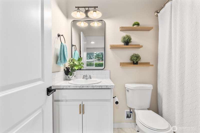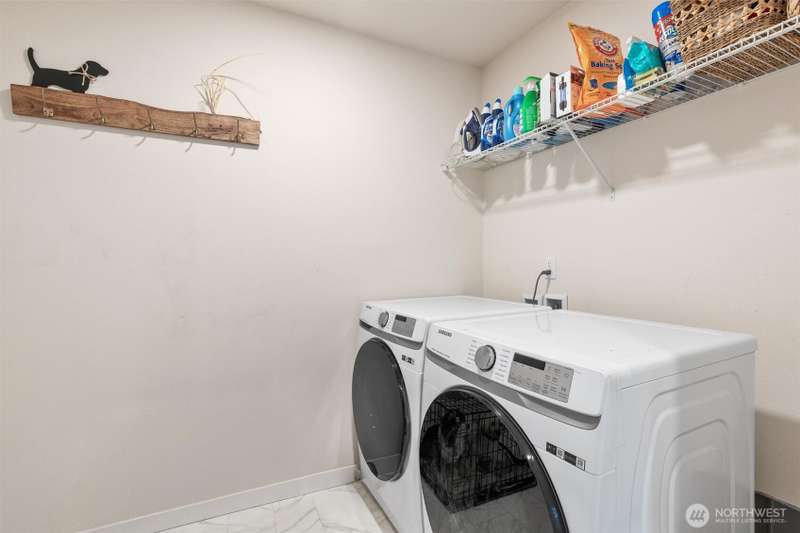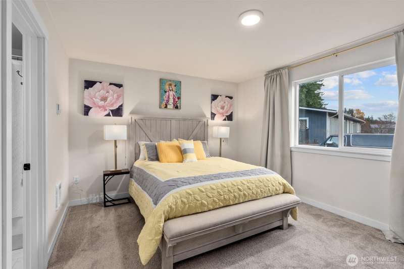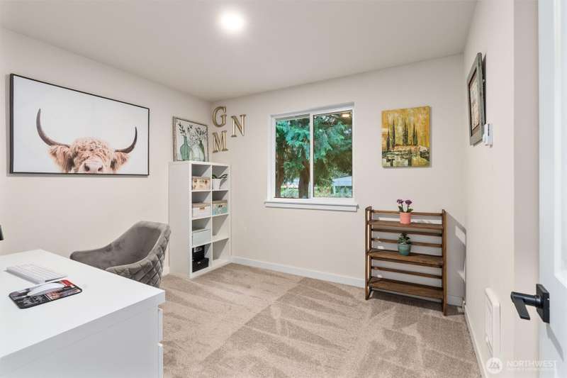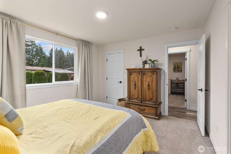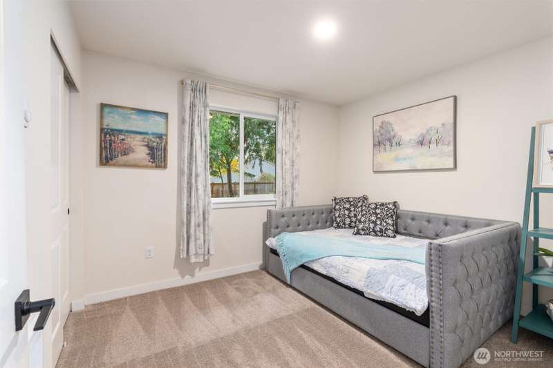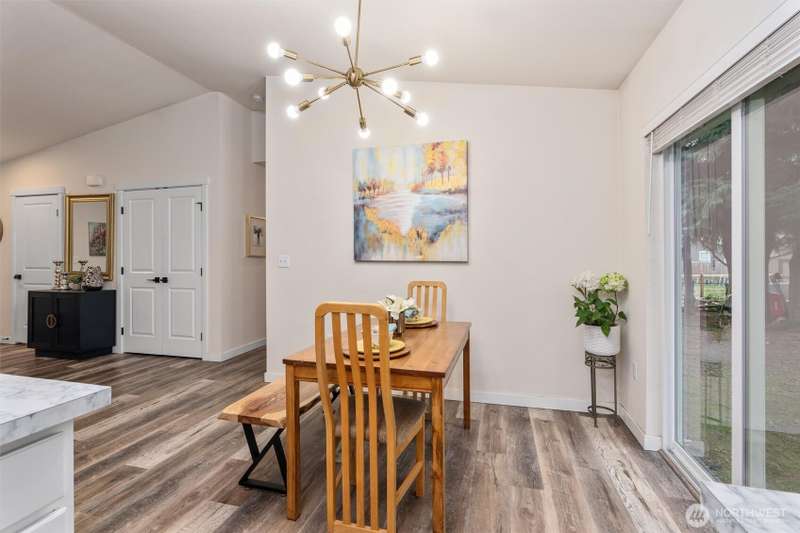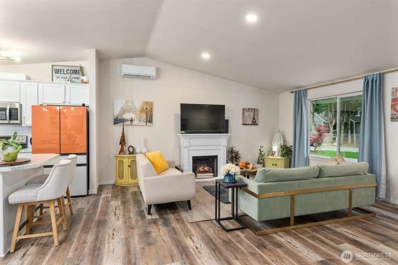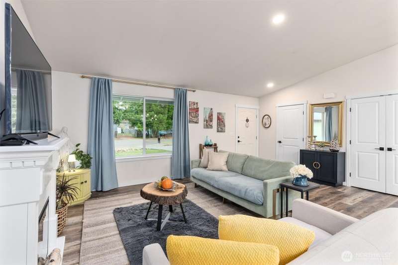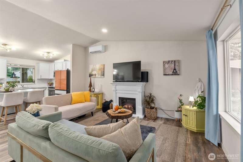 Welcome to this beautifully maintained 2022 almost-new build featuring 3 bedrooms, 2 bathrooms, and an inviting open floor plan with vaulted ceilings. The modern kitchen boasts stainless steel appliances, an island, and durable vinyl plank flooring throughout the main areas. The primary suite offers a walk-in closet and private bathroom for added comfort. Enjoy the quiet cul-de-sac location, Mt. Rainier views, a good-sized backyard with garden and BBQ space, plus a long driveway for extra parking. Stay comfortable year-round with the mini split w/ AC. A rare opportunity to own a nearly new home on a large lot!