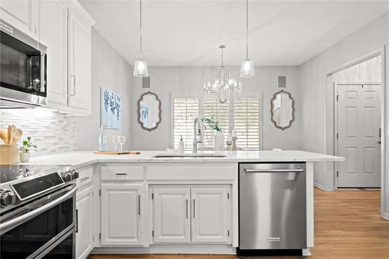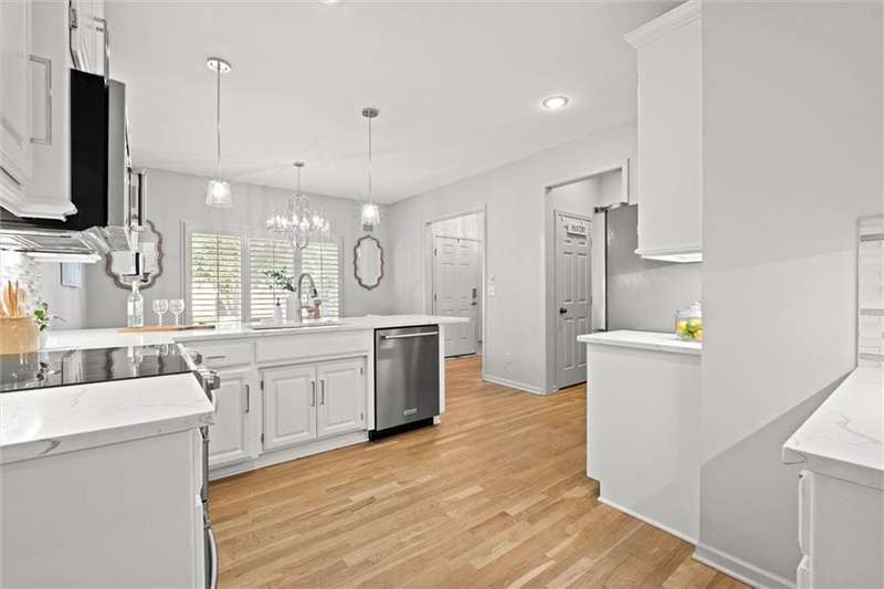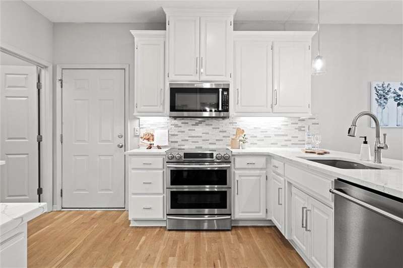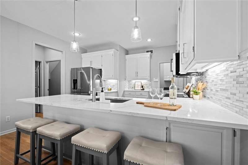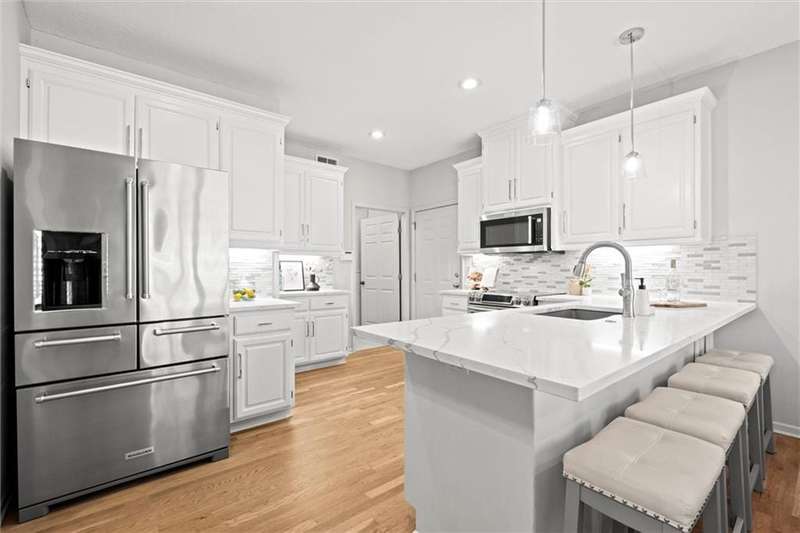 Welcome into this beautifully remodeled Tom French 1.5-story home located in the Blue Valley School district, where style meets comfort and natural light fills every room. Freshly painted in key areas, this home feels bright and inviting from the moment you enter. The spacious kitchen boasts quartz countertops, stainless steel appliances, extensive cabinetry with generous storage, and designer lighting. Beautiful hardwood floors flow seamlessly, complemented by a reimagined laundry room with pullout shelving and a convenient drop station. The dazzling great room features vaulted ceilings, abundant natural light, plantation shutters, and a fireplace, ideal for everyday living and entertaining. The main-levelprimary suite includes a double vanity, jetted tub, and a large walk-in closet. Enjoy quiet moments or morning coffee on the private screened porch. Upstairs, natural light fills the spacious bedrooms and versatile loft space. The finishedlower level includes a large family room, bonus room (ideal gym/home office), additional bedroom, full bath, andabundant storage. Low-maintenance living at its BEST!