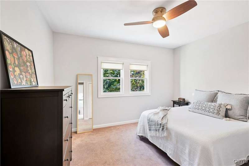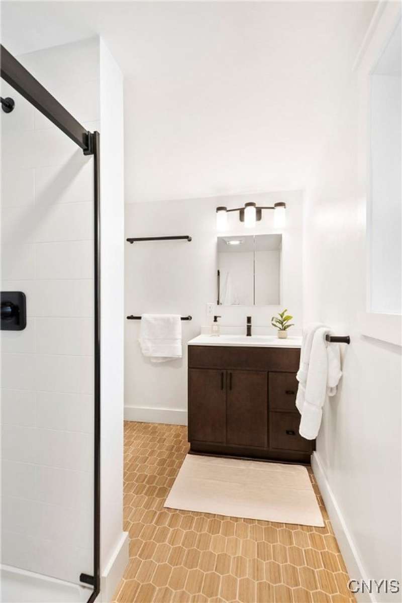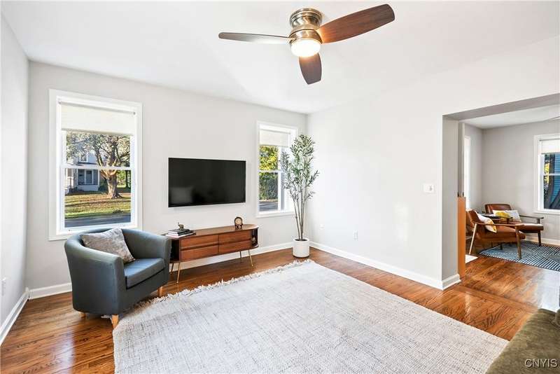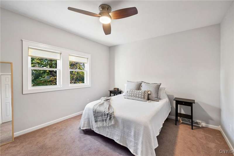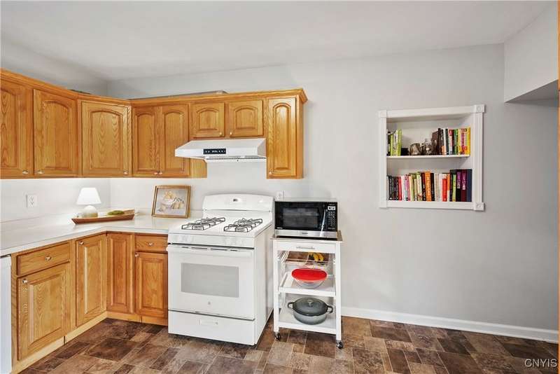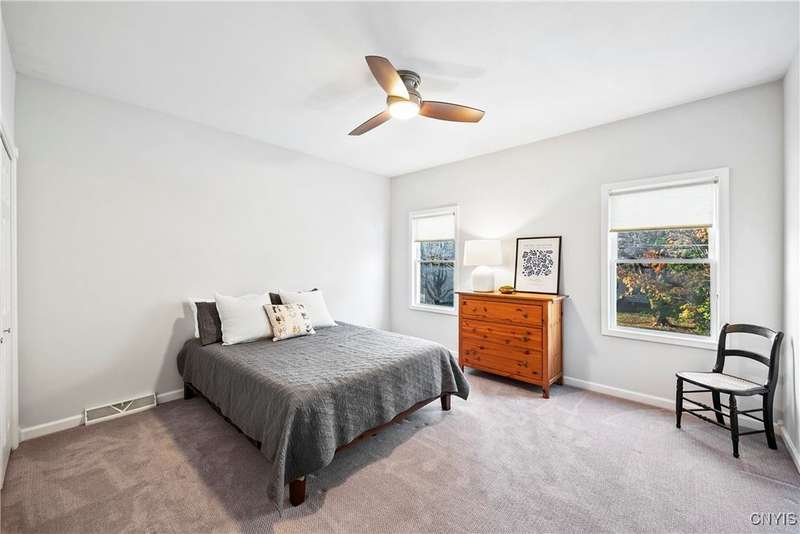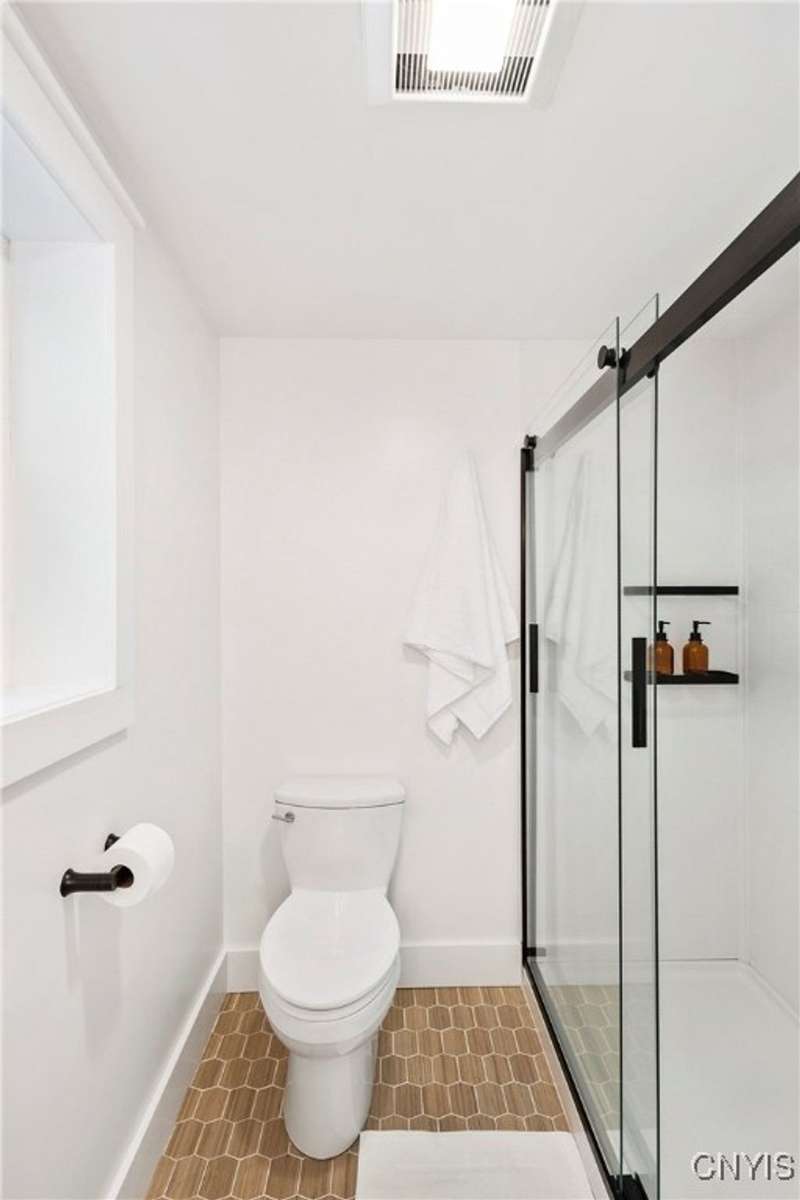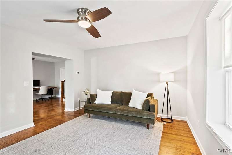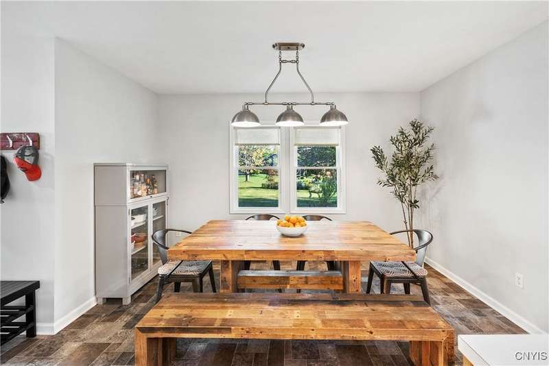 This beautiful Skaneateles Village home sits in an unbeatable location where you can walk to all of Skaneateles' shops, restaurants, and the lake, with the grocery store and local pharmacies just around the corner. Situated in the award-winning Skaneateles School District within walking distance of the school campus, this residence showcases high ceilings that fill the spaces with natural light, three generously sized bedrooms, a recently renovated full bathroom, and abundant closet space throughout. The large combined kitchen and dining room overlooks a stunning backyard complete with raspberry bushes and a bluestone paver patio, while the barn out back provides one-car garage parking, storage, and a versatile bonus space currently used as a gym that would make an ideal home office. With brick construction beneath the vinyl siding for exceptional insulation, a newer furnace that keeps utility costs remarkably low, a convenient first-floor laundry and half bath, and a private backyard retreat enhanced by dramatic stone terracing, this home perfectly balances village convenience with comfortable, efficient living.