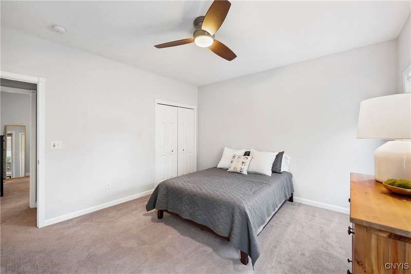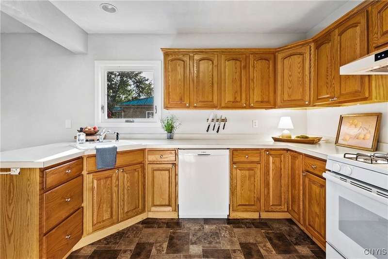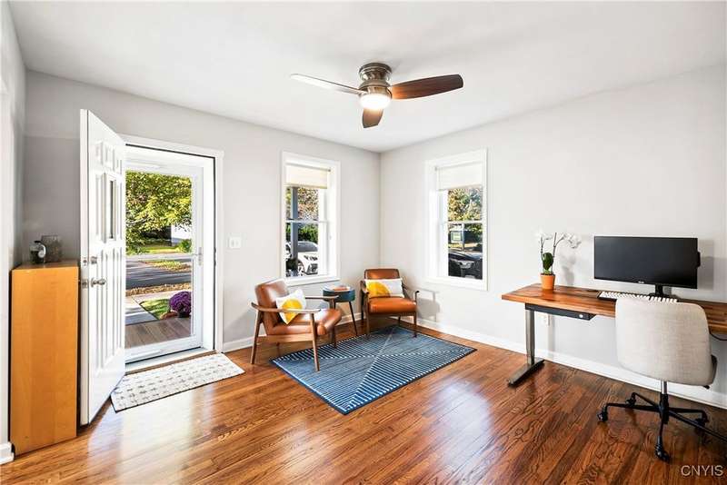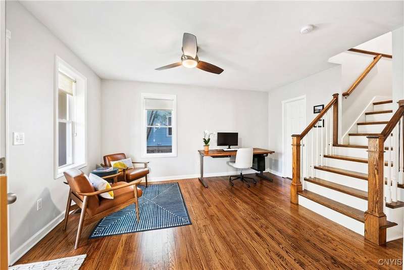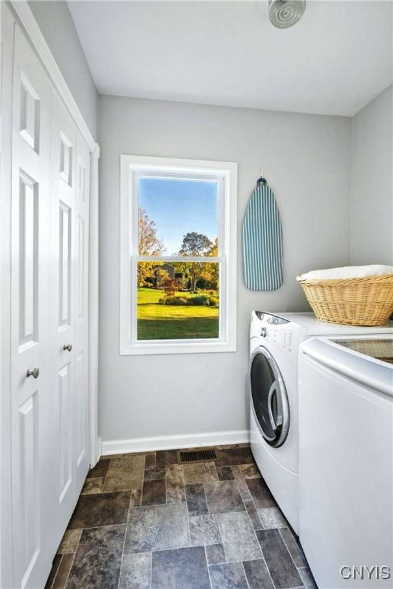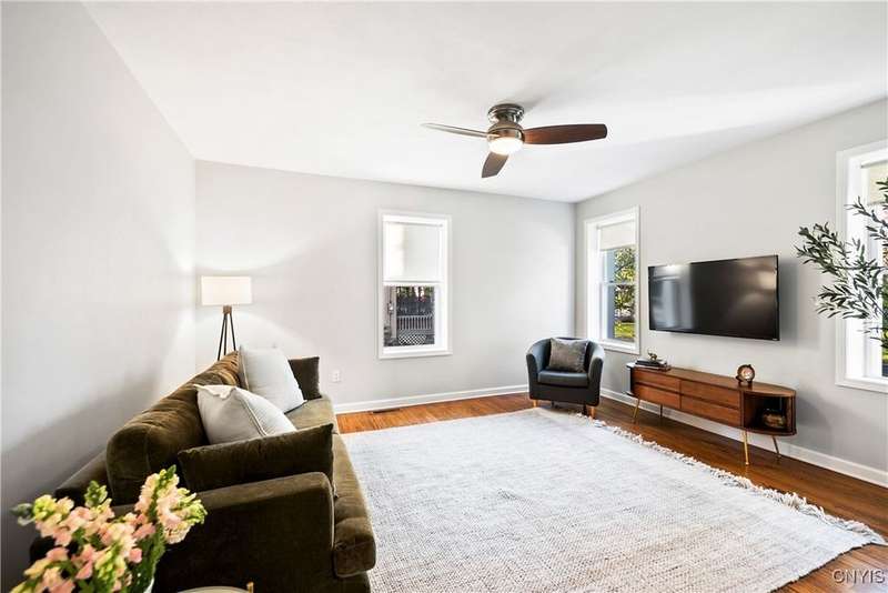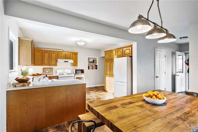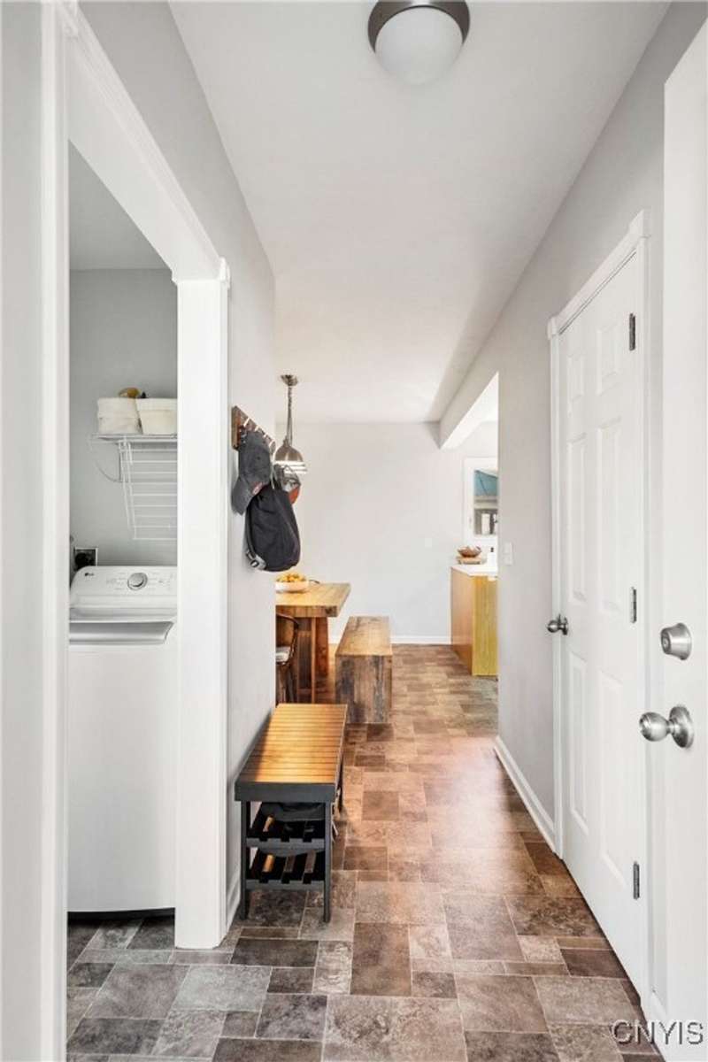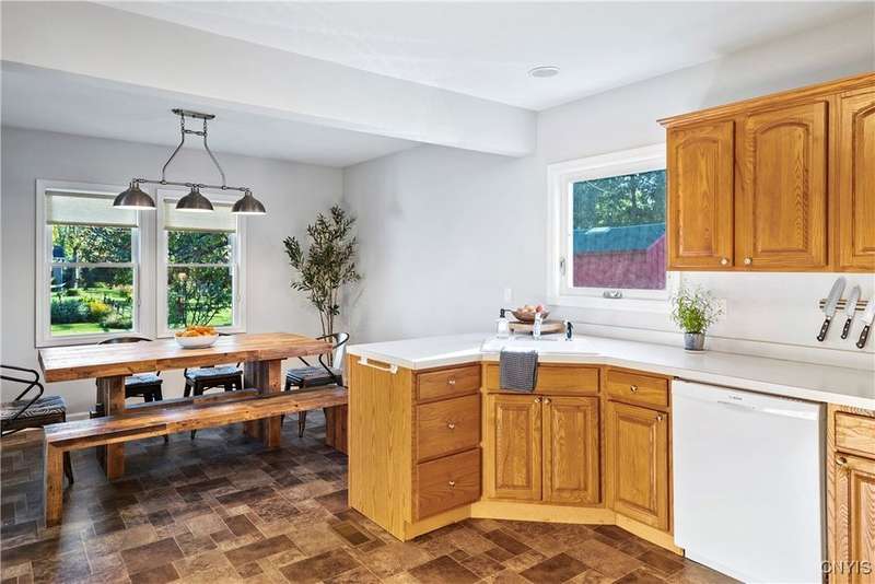 This beautiful Skaneateles Village home sits in an unbeatable location where you can walk to all of Skaneateles' shops, restaurants, and the lake, with the grocery store and local pharmacies just around the corner. Situated in the award-winning Skaneateles School District within walking distance of the school campus, this residence showcases high ceilings that fill the spaces with natural light, three generously sized bedrooms, a recently renovated full bathroom, and abundant closet space throughout. The large combined kitchen and dining room overlooks a stunning backyard complete with raspberry bushes and a bluestone paver patio, while the barn out back provides one-car garage parking, storage, and a versatile bonus space currently used as a gym that would make an ideal home office. With brick construction beneath the vinyl siding for exceptional insulation, a newer furnace that keeps utility costs remarkably low, a convenient first-floor laundry and half bath, and a private backyard retreat enhanced by dramatic stone terracing, this home perfectly balances village convenience with comfortable, efficient living.