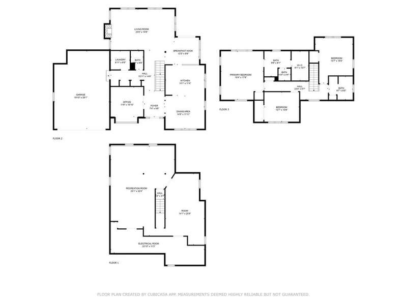 Welcome to this custom-built, one-owner home in a highly sought-after Palatine location! Offering beauty, comfort and convenience, this spacious residence features 3 large bedrooms on the upper level with 2 full baths, including a newly remodeled, luxurious primary bathroom with a walk-in closet! On the main level, you'll find a sun-filled family room with a cozy gas fireplace, eat-in kitchen, dining room, office, main level laundry, and a convenient half bath. Natural light pours in throughout the entire home, creating a warm and inviting atmosphere. The finished English basement offers incredible versatility. Highlights include a spacious 23' x 32' recreation room, a 14' x 26' flex room that could serve as a 4th bedroom, home gym, theater, or storage space, plus a roughed-in bath-providing excellent potential to customize and expand your living area. The possibilities are endless! The residence has been exceptionally maintained and updates include a new furnace (3 years) and a hot water heater that was replaced within the past 5 years. This beautiful home is perfectly situated in a desirable sidewalk community on a quiet, prime cul-de-sac and is just around the corner from Hummingbird Park and The Deer Grove Trail System. You are also only minutes to top-rated schools, shopping, dining, and the Palatine Metra Station. This home truly has it all. With generous living spaces, thoughtful design, and room to grow, this is a rare find you won't want to miss! A MUST SEE!!