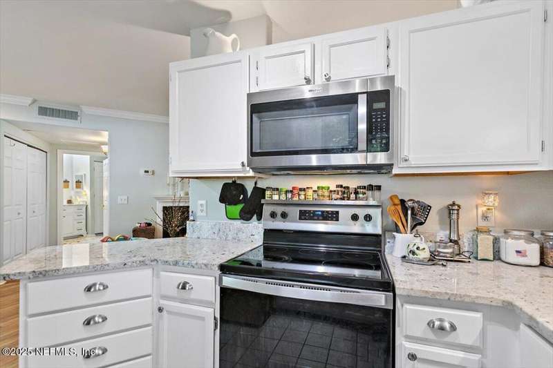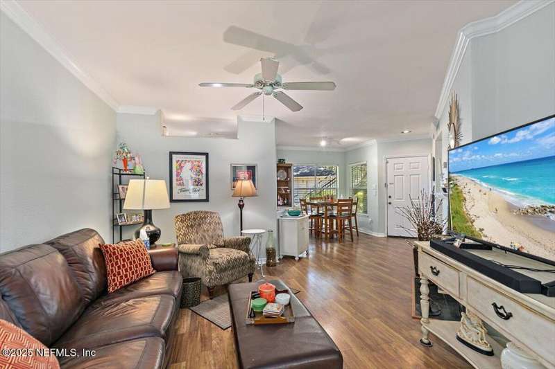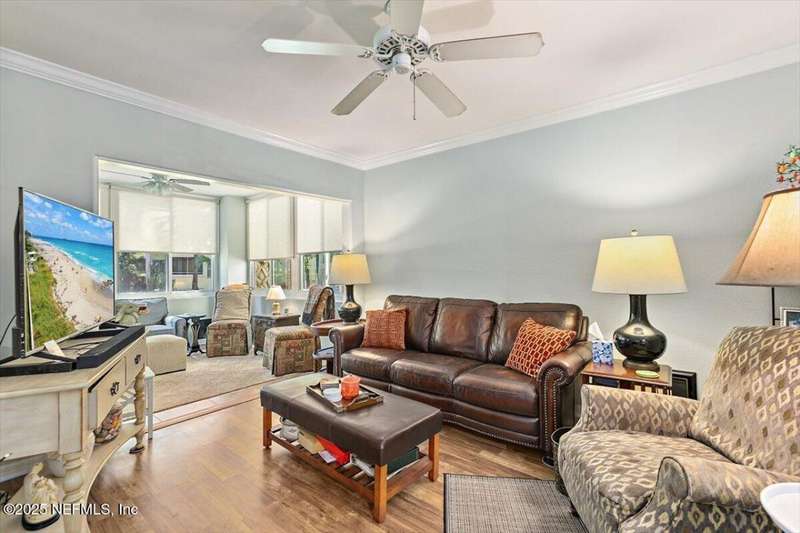 YOU'LL LOVE THIS COZY YET SPACIOUS ONE BEDROOM CONDO ON THE 1ST FLOOR IN THIS DESIREABLE GATED BEACH COMMUNITY*LARGE OVERSIZED ONE CAR GARAGE JUST STEPS FROM THE FRONT DOOR INCLUDED*OPEN LIVING AREA WITH CROWN MOLDING AND BEAUTIFUL LAMINATE FLOORING*KITCHEN W/GRANITE COUNTERS, WHITE CABINETS, &STAINLESS STEEL APPLIANCES INCLUDING A FRIG W/WATER & ICE*SEPARATE DINING AREA, GREAT ROOM W/ELECTRIC FIREPLACE W/HEAT SYSTEM*FINISHED FLORIDA ROOM / DEN W/LOW-E WINDOWS, AND CUSTOM TILE FLOORING & SHADES*LARGE BEDROOM W/WALK-IN CLOSET, OPENING TO THE FLORIDA ROOM THRU DOUBLE BIFOLD DOORS*UPDATED BATH W/QUARTZ VANITY W/UNDERMOUNT SINK & BRUSHED NICKEL FIXTURES AND NEW SHOWER W/GLASS DOOR W/BRUSHED NICKEL FRAMING*LAUNDRY CLOSET W/SHELVING AND WASHER & DRYER INCLUDED*UNIT IS CLOSE TO COMMUNITY ENTRANCE AND WALKING DISTANCE TO THE AMENITY CENTER*EASY ACCESS TO THE BEACH, JTB, AND I95 / I295, SHOPPING AND RESTAURANTS NEARBY*DON'T MISS IT!!!