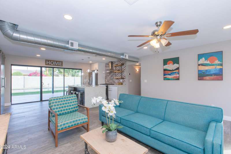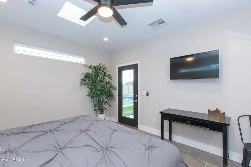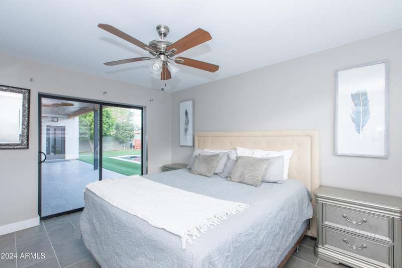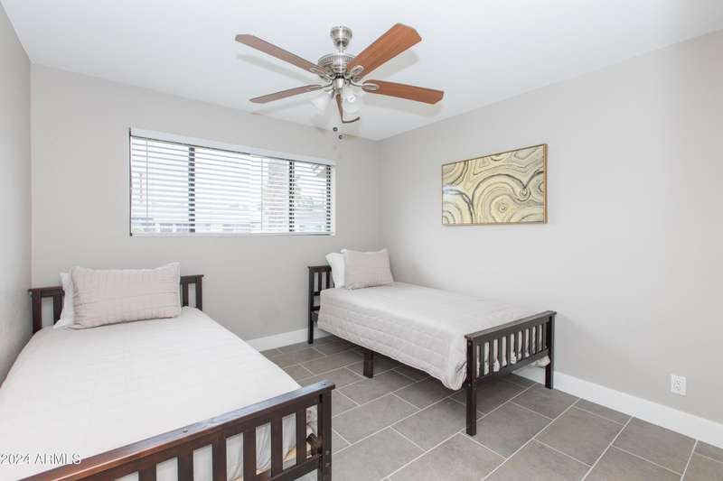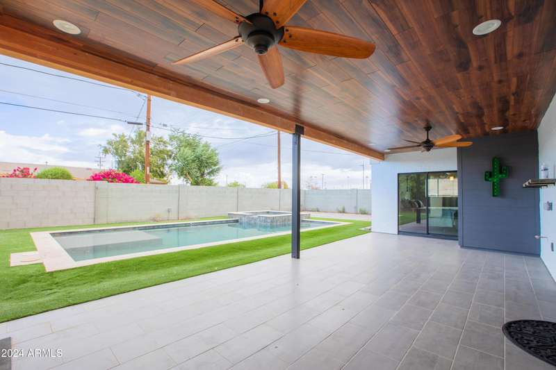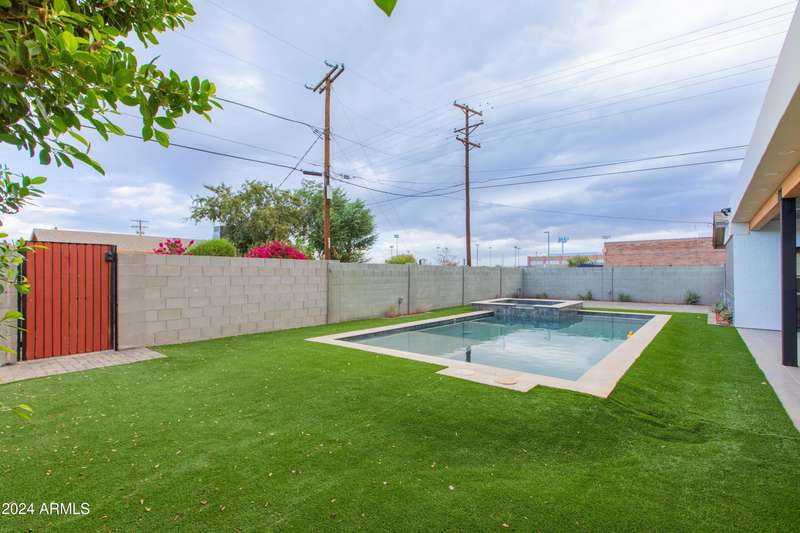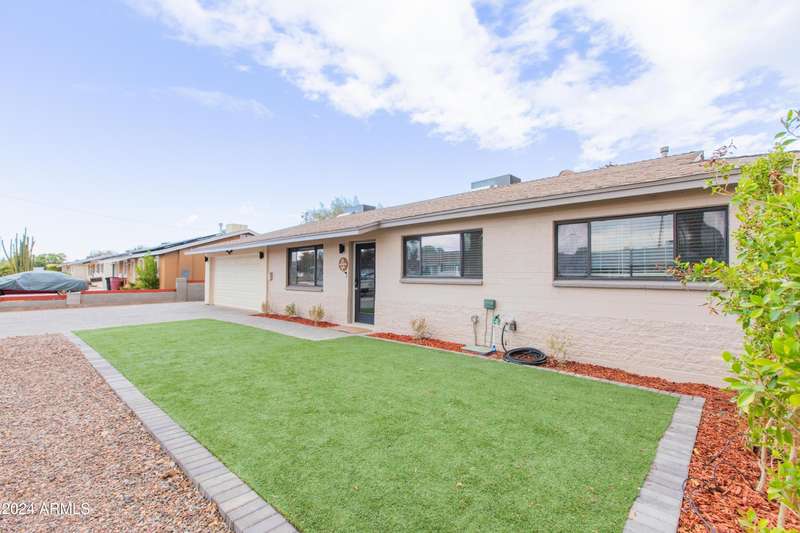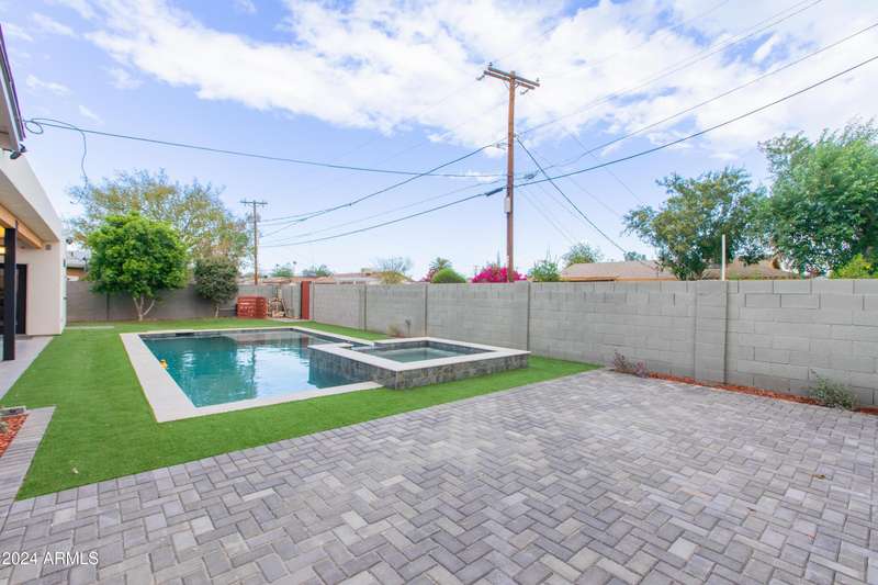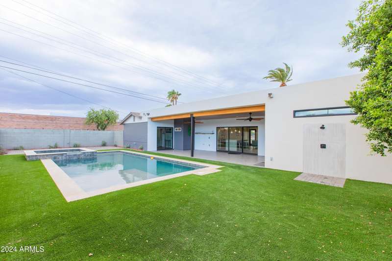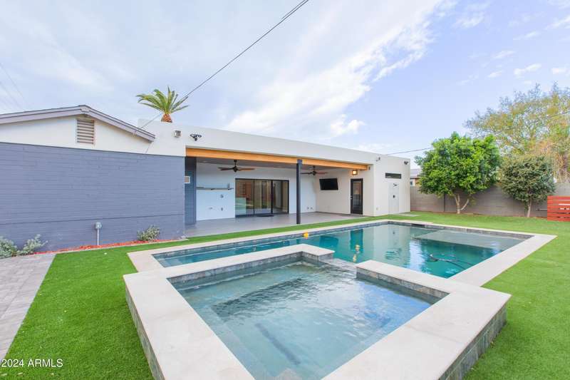 A RARE find in South Scottsdale... 4 Bedrooms + attached guest quarters AND 3 bathrooms, pool, spa & 2 car garage!! Beautifully remodeled throughout! Home features include marble countertops, stainless appliances, cabinetry, fixtures, recessed lighting, plumbing, flooring, windows, vanities, bath fixtures, tankless water heater and more! Attached guest quarters with it's own private bathroom. Garage has epoxy-coated flooring, wood-paneled wall, electric opener. Backyard has amazing extra large covered patio w/ wood-like paneled ceiling and fan. Gorgeous pool and spa with island platform for relaxing and sunbathing. Other features... outdoor shower, artificial turf, low-maintenance landscaping, paved pad for patio furniture. Ignore days on market - we took it temporarily off for months.