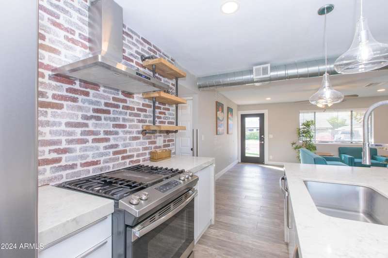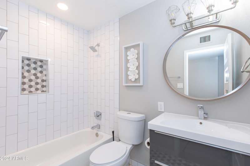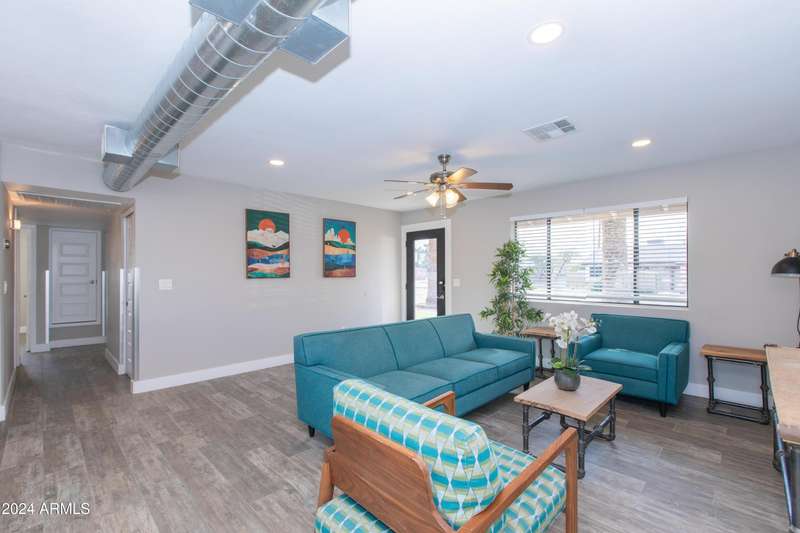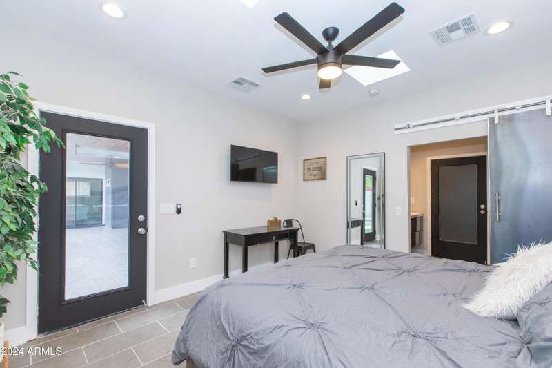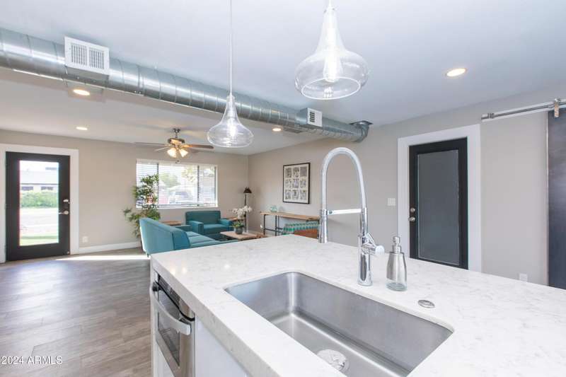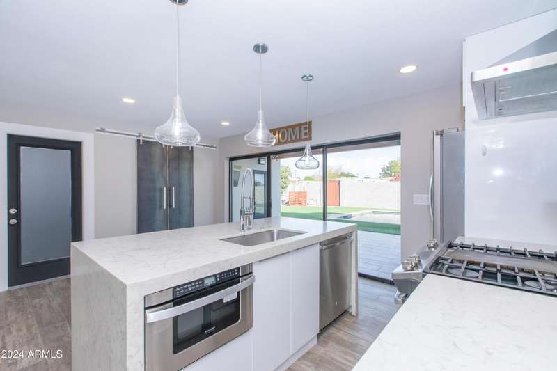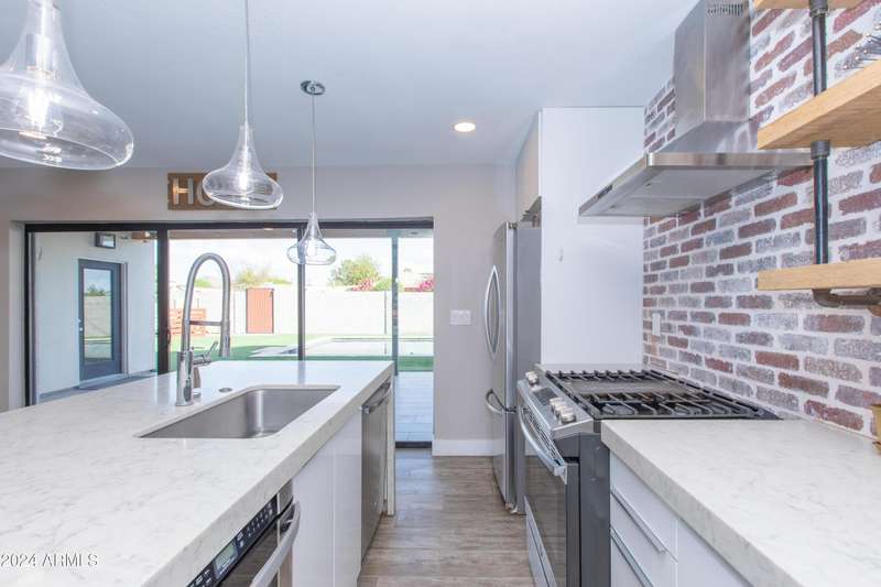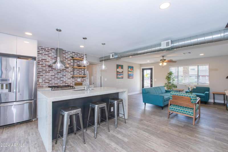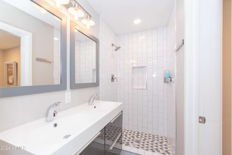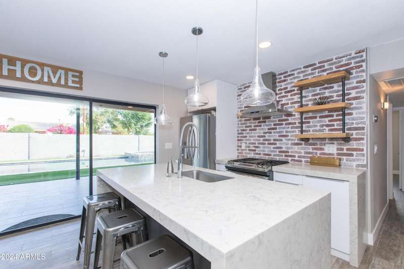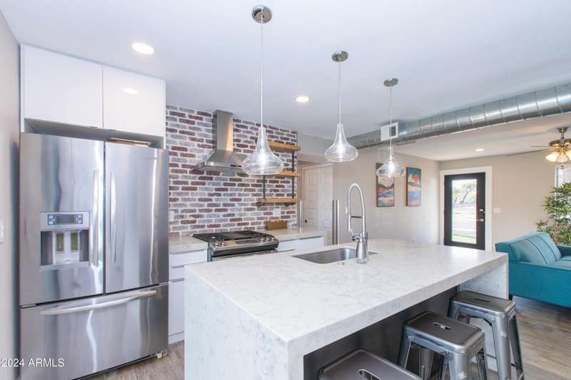 A RARE find in South Scottsdale... 4 Bedrooms + attached guest quarters AND 3 bathrooms, pool, spa & 2 car garage!! Beautifully remodeled throughout! Home features include marble countertops, stainless appliances, cabinetry, fixtures, recessed lighting, plumbing, flooring, windows, vanities, bath fixtures, tankless water heater and more! Attached guest quarters with it's own private bathroom. Garage has epoxy-coated flooring, wood-paneled wall, electric opener. Backyard has amazing extra large covered patio w/ wood-like paneled ceiling and fan. Gorgeous pool and spa with island platform for relaxing and sunbathing. Other features... outdoor shower, artificial turf, low-maintenance landscaping, paved pad for patio furniture. Ignore days on market - we took it temporarily off for months.
