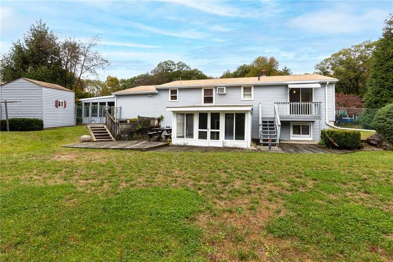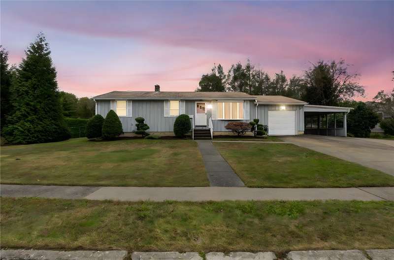 Welcome to this lovely ranch located in the desirable Westwood Estates of Western Cranston! Offering endless possibilities, this home is ready for you to add your own personal touch. The main level features a cozy living room that opens to the dining area and kitchen perfect for comfortable everyday living. You'll also find a tiled full bath and three bedrooms, including a primary suite with sliding glass doors leading to a private deck. The lower level boasts a spacious open-concept layout complete with a second kitchen and full bathroom, leading to a fully enclosed glass sunroom. A laundry room adjoins a large storage and utility area, providing plenty of space with a workshop area. Outside, enjoy a corner lot with a large, fenced-in yard offering excellent privacy. Additional highlights include hardwood flooring, a one-car garage, glass carport, and convenient access to Routes 295 and 95, as well as nearby Garden City, shopping, restaurants, and more. Come fall in love! Property i