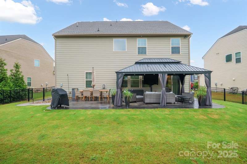 Welcome to this beautifully maintained 5-bedroom, 4.5-bath home located in the sought-after neighborhood of Falls Cove at Lake Norman. This spacious home features an open-concept layout, perfect for entertaining, with a chef's kitchen and generous cabinetry. An expanded driveway offers added parking and convenience, while a walk-around sidewalk connects the front and fenced backyard. The primary suite includes dual sinks and a private en suite with a separate shower. Enjoy the beautifully designed outdoor living area, featuring a gazebo-covered patio and custom hardscape-ideal for gatherings or relaxing evenings. With easy access to nearby Lake Norman and excellent community amenities, this home blends comfort, style, and function. A truly beautiful property and a must-see in your search for the perfect home. Don't miss this incredible opportunity!