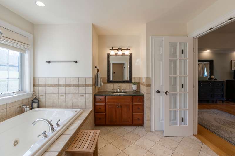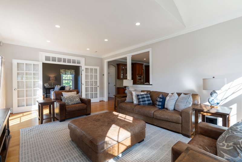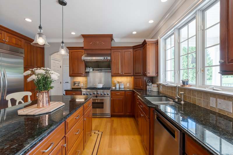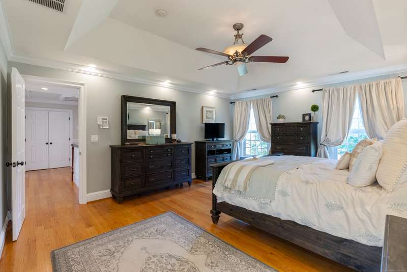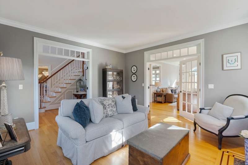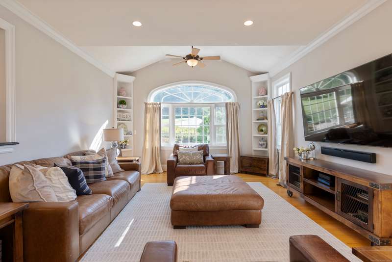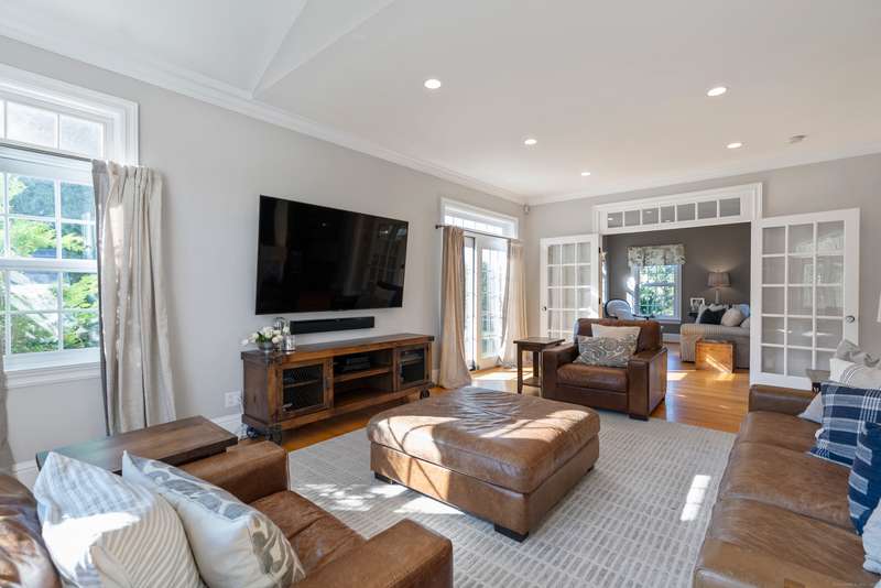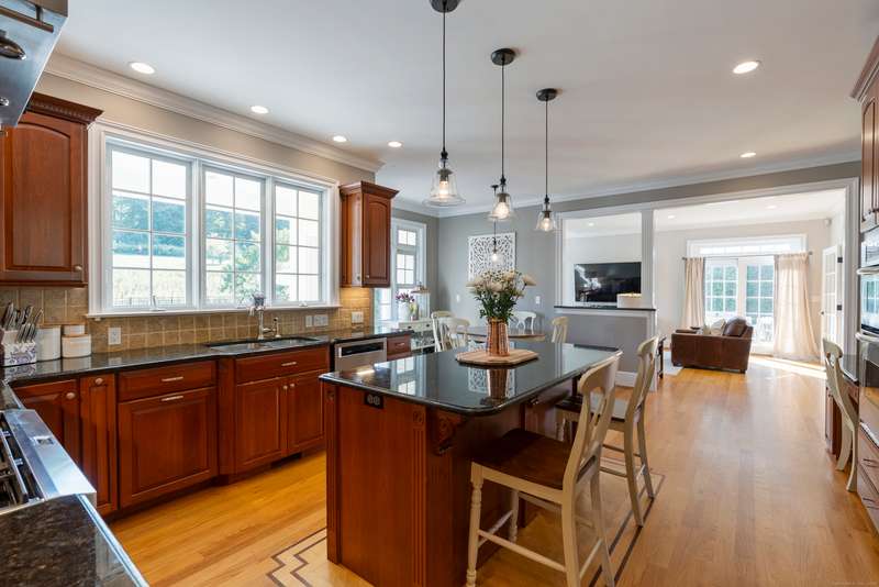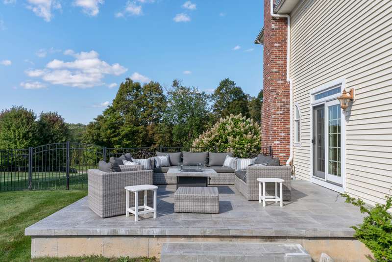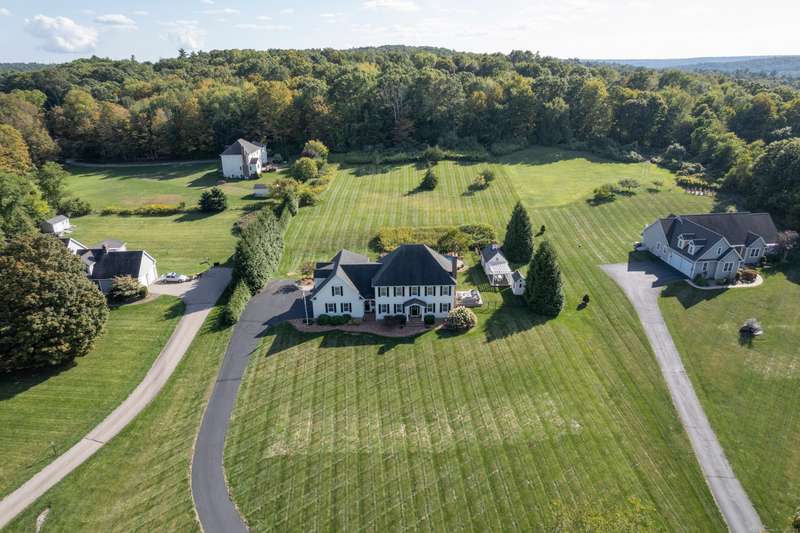 Prominently set on 2.6 acres of manicured grounds, this highly appointed Colonial exudes elegance, while offering a layout designed for everyday living. From the moment you arrive, the setting impresses-lush greenery, striking curb appeal, and an outdoor oasis designed for both relaxation and entertaining. The resort-style outdoor living is nothing short of spectacular..in-ground pool framed by two expansive patios, beautifully crafted cabana with detailed trim, and pergola-topped deck make every day feel like you are vacationing at a luxury resort. Custom designed with no details spared; the home is a showcase of unparalleled craftsmanship featuring multi-tiered crown moldings, shadow-boxing, tray ceilings, transom windows, and gleaming hardwood floors throughout. At the heart of the home, is the chef's kitchen featuring custom cabinetry, intricate millwork, professional-grade appliances, large center island, pantry. The floorplan was designed to naturally and seamlessly blend togethe