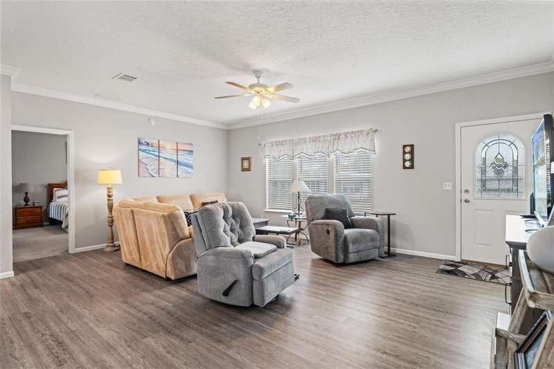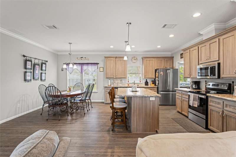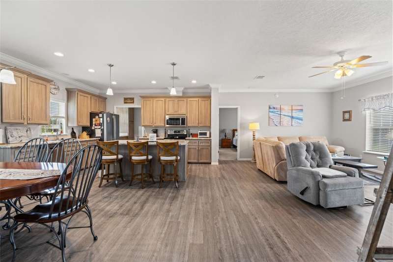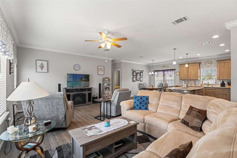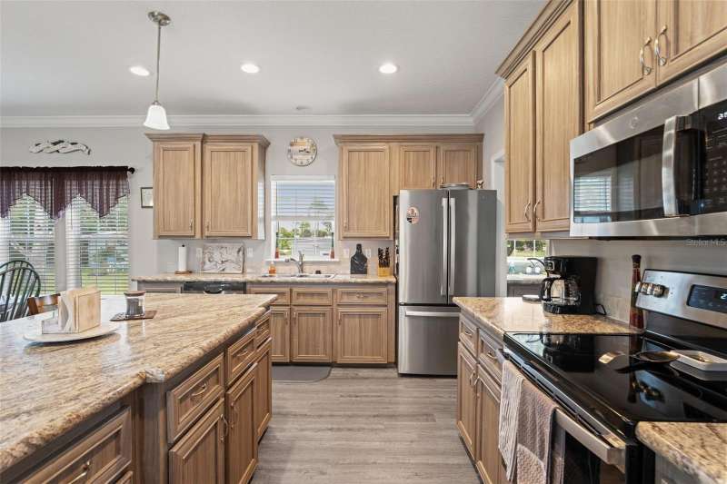 This beautifully maintained 3-bedroom, 2-bath home sits on a rare double lot and offers the perfect blend of comfort and lifestyle. Complete with an RV carport, workshop, and golf cart garage, this property is designed for convenience and versatility. Inside, you’ll find a thoughtfully designed open floor plan featuring a large kitchen with stainless steel appliances, a spacious island, and plenty of storage. The vinyl flooring throughout adds style and easy maintenance. The front room serves as a great entertaining space or a cozy spot to relax with a book. The inside laundry room makes everyday living even more functional. The master ensuite offers a true retreat with dual sinks and a well-appointed layout, while two additional bedrooms provide comfort for family or guests. This home is set on one of the few double lots available, giving you plenty of space to create your dream backyard oasis. Imagine adding a sparkling pool, a relaxing pergola, and a spacious back deck—perfect for entertaining or simply enjoying the Florida lifestyle. Located close to shopping, dining, and outdoor adventures at Weeki Wachee—perfect for kayaking, boating, fishing, and spotting manatees. This home puts Florida living right at your doorstep. With quick access to the Suncoast Parkway, you’ll enjoy an easy commute to Tampa and the nearest airport. The community itself is rich with amenities, including A gated community with 24-hour security, golf course, tennis courts, swimming pool, clubhouse, fitness room, and numerous clubs and activities, all within a friendly golf cart community. This property truly has it all—a home that feels like home, paired with endless opportunities to enjoy life to the fullest.