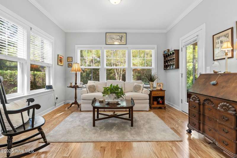 Welcome to this beautiful, like-new cottage-style home located in the prestigious St. James Plantation community. This home offers an open-concept layout, perfect for modern living and entertaining. Before entering the home, you'll find a welcoming front porch and serene views of a large neighborhood pond just across the street. Once inside, the main level features a spacious living area with a fireplace and built-ins, a dining room or flex space, a coffee bar, a large step-in pantry, and a sunroom. The primary suite is a true retreat, offering a private morning room, direct access to the sunroom, a generous walk-in closet, dual vanities, and a zero-entry shower. A guest bedroom and full bath are also conveniently located on the first floor. Upstairs, you'll find a private third bedroom with an ensuite bath, a large flex/bonus room, and walk-in storage. The rear of the home backs up to a massive nature preserve, ensuring your privacy is both protected and permanent. Best of all, the HOA maintains all exterior landscaping and irrigation, allowing you to enjoy a truly low-maintenance lifestyle. An Active Club Membership is in place, potentially saving the new owner up to $10,000 in additional membership fees. With membership, enjoy resort-style amenities as part of the St. James Plantation lifestyle, including: 81 holes of championship golf A private beach club on Oak Island A full-service marina with wet slips and dry stack storage Indoor and outdoor pools Tennis and pickleball courts Fitness centers Walking and biking trails Multiple clubhouses with dining options