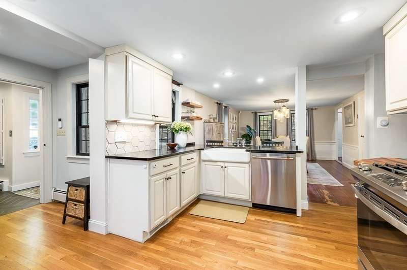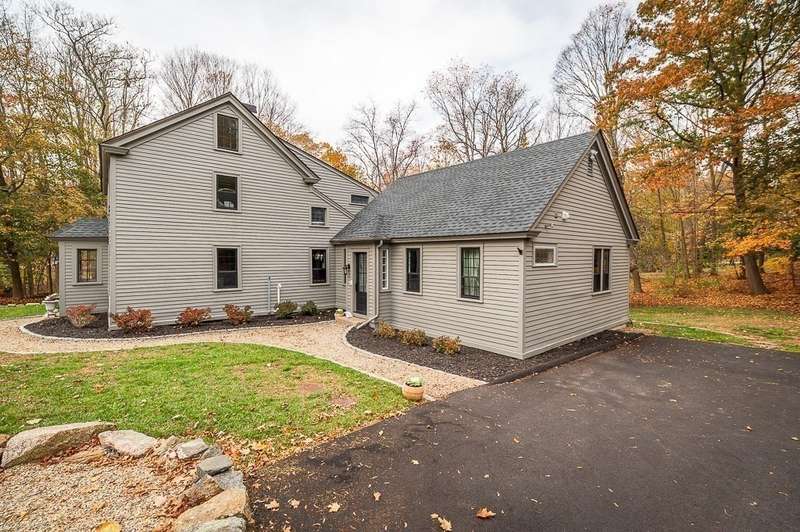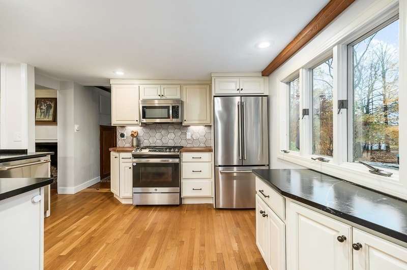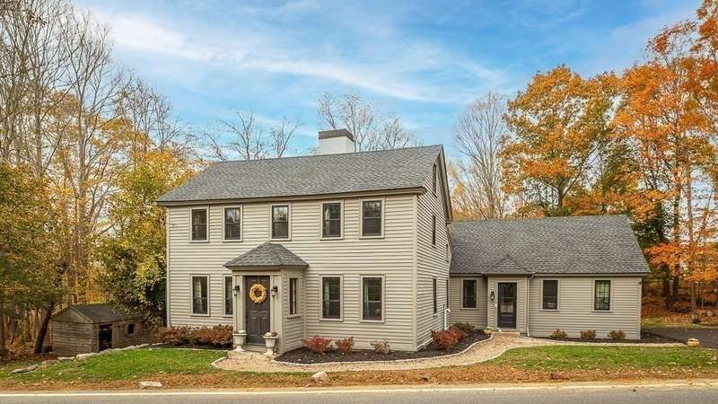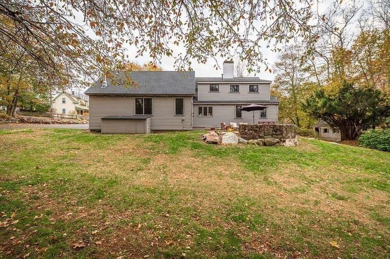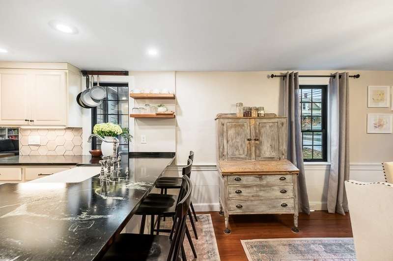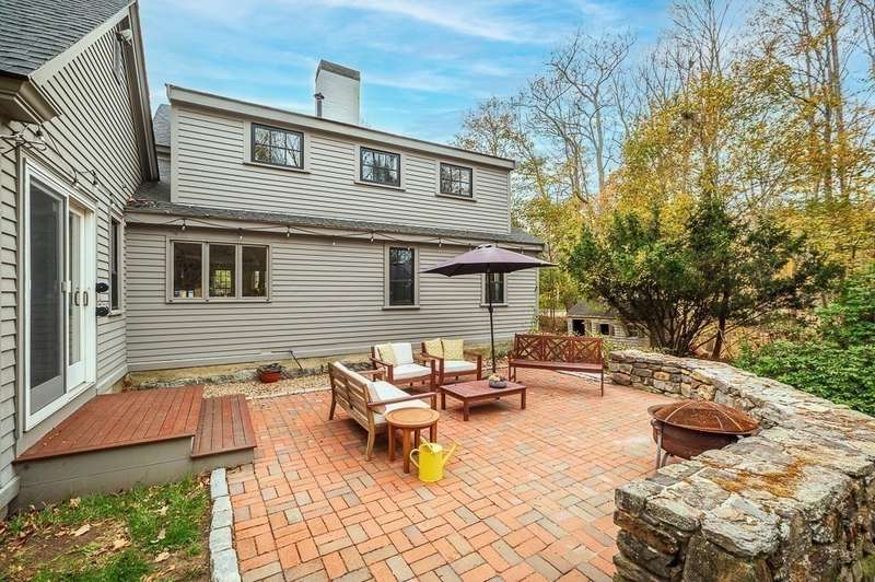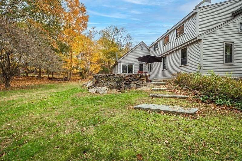 The best of both worlds! Stylish and updated c.1800 colonial in a bucolic Hamilton setting. This home perfectly balances historic charm with modern amenities offering inviting spaces for formal and informal gathering. Beautifully updated chefs’ kitchen with stone counters and breakfast bar open to a spacious dining room. Gather in the family room with cathedral ceiling, built in shelving and wood stove, and a charming, beamed living room. Newly renovated mudroom with laundry, spacious bedroom and full bath complete the first floor. Spacious bedroom on the main level plus 2 spacious bedrooms upstairs with beamed cathedral ceilings including the main bedroom with spa like bathroom and walk in closet. Stunning stone patio overlooks the large level yard. Sidewalks to town, easy access to trains and highways for commuters and enjoy the highly rated Hamilton Wenham schools. Come visit! Open Saturday and Sunday 11:30-1pm.