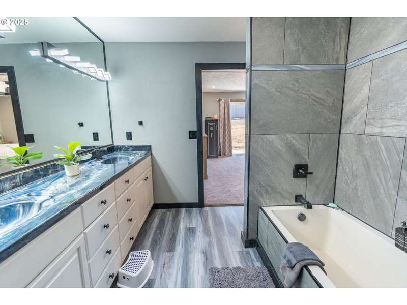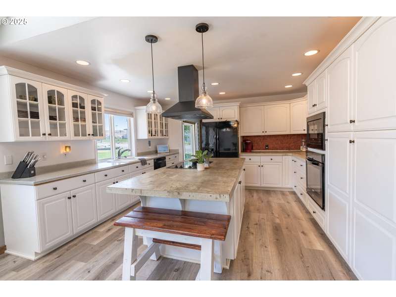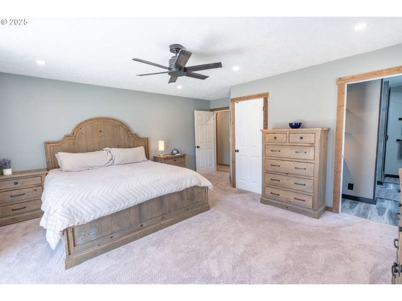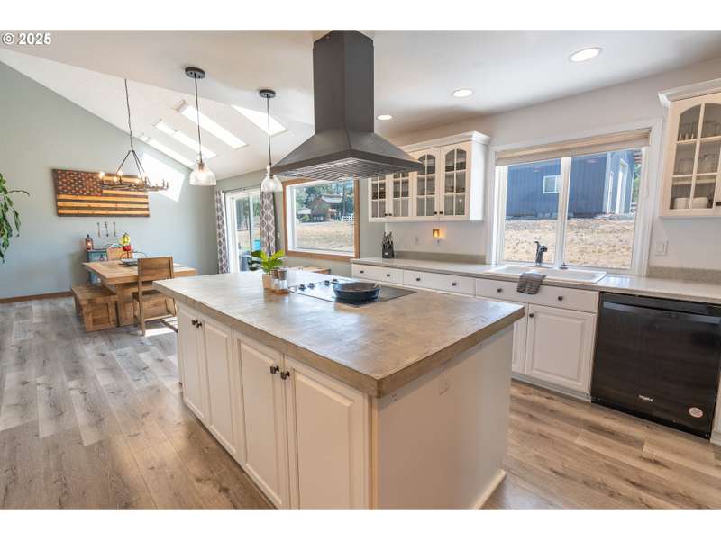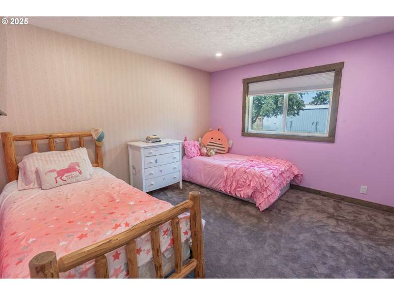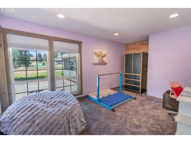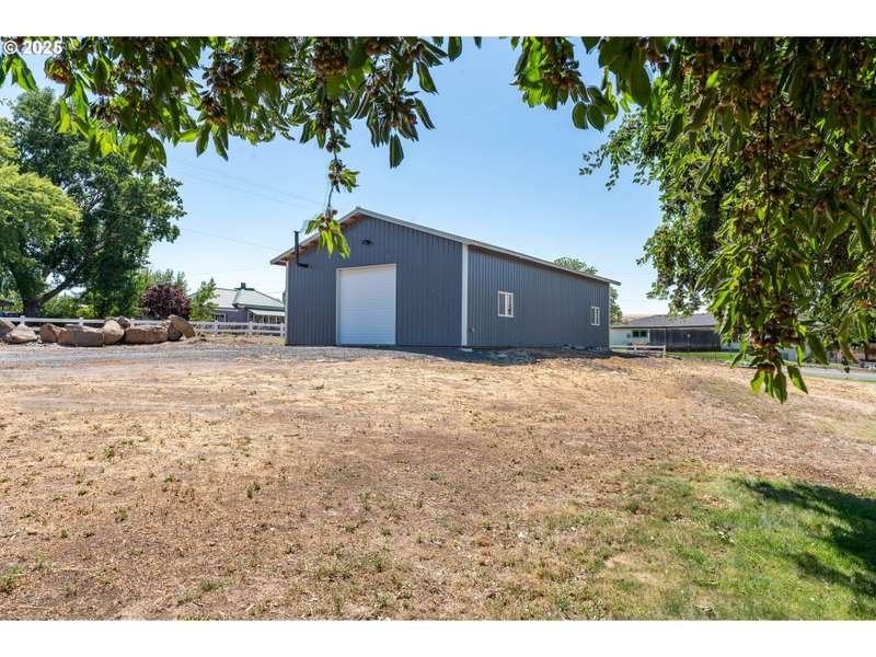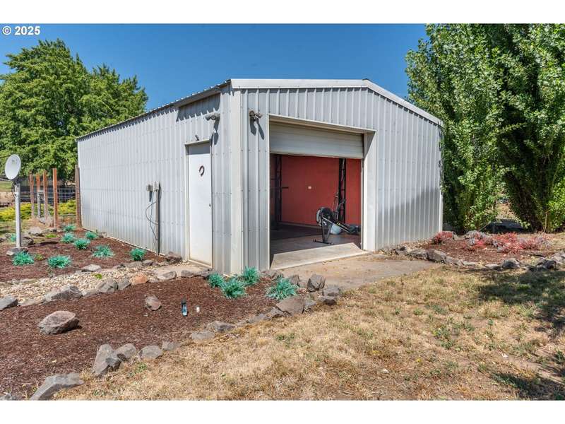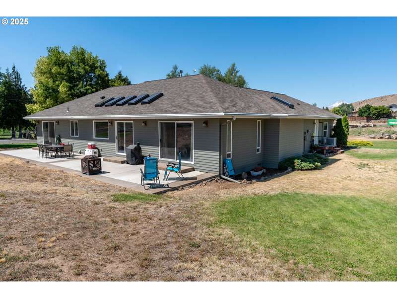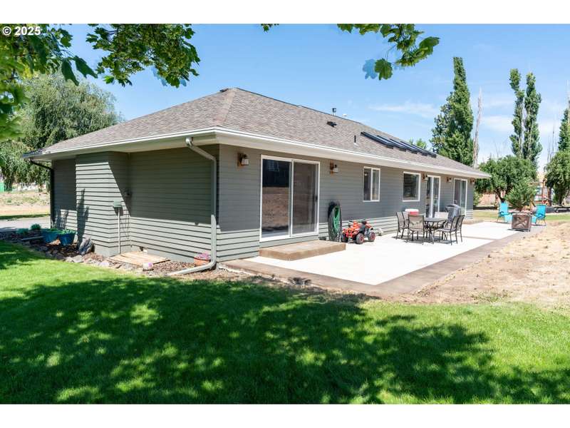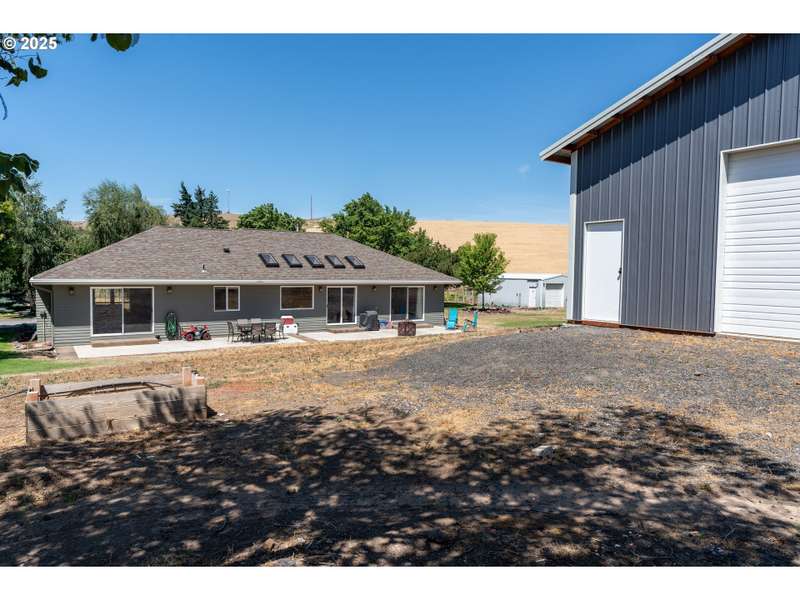 This spacious one-level home offers comfort, functionality, and plenty of room to grow. Featuring four generous bedrooms plus a dedicated office space. The large primary suite includes a sliding door that opens to an expansive back patio—ideal for morning coffee or evening relaxation. The heart of the home is the open kitchen and dining area, highlighted by vaulted ceilings that create a bright and airy feel. Recent updates include a new heat pump for year-round efficiency and comfort. Outside, the property boasts ample off-street parking, a designated play area, and a sprinkler system all situated on a desirable corner lot. A standout feature is the impressive 30' x 40' shop with double doors and a convenient pass-through design, ideal for hobbyists or storage needs. Additionally, a second shop currently functions as a workout room, adding even more versatility to this unique and well-appointed home.