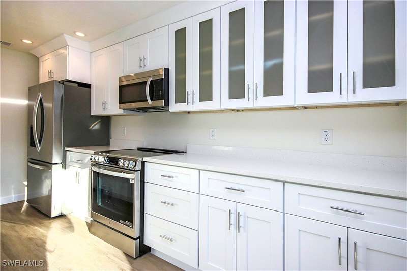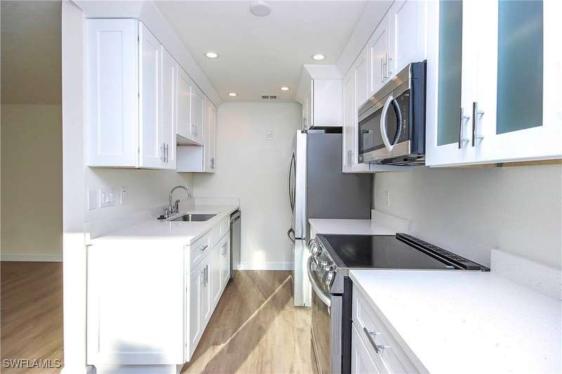 Don't miss the opportunity to make this beautiful and totally renovated condo your island getaway. Located in the sought after east end of Sanibel. This 2 bedroom, 1 and 1/2 bath condo features all new impact glass, newly renovated baths, kitchen, white coastal cabinetry, new stainless appliances, quartz countertops and luxury vinyl flooring. Extended cabinetry through out the dining area. Captains Walk has all new roofs, newly completed structural work and soon to have new, professional landscaping. Captains Walk features docks between every two buildings where you can enjoy kayaking, coffee in the morning or an evening cocktail. Located within walking distance of 5 beautiful beach access. Lighthouse Beach, Seagrape, Buttonwood, next to Colony Beach Estates and Spoonbill off East Gulf. Restaurants and shopping are just minutes away and the world famous Gramma Dots restaurant and Sanibel Marina are located directly across Periwinkle Way. Easy access to the causeway and causeway islands is another one of the great features of Captains Walk. This quiet complex is loved by many year round owners and winter residents.