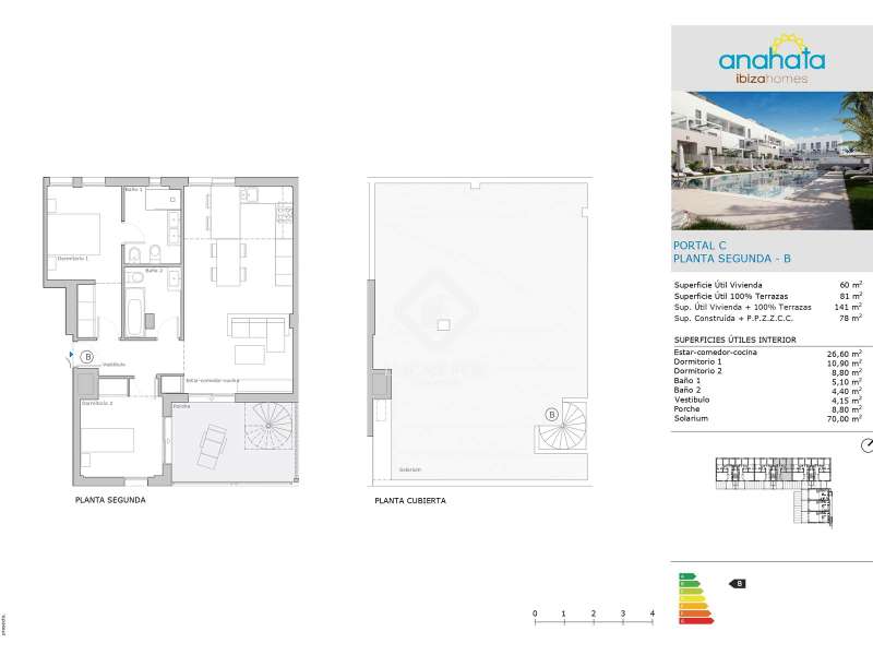 WORK IN PROGRESS The privacy of Anahata Ibiza Homes is one of its key features, with only 23 residences in the development, creating an intimate and secluded environment on the island of Ibiza. The homes are situated within a private gated community, which includes a swimming pool, solarium, and a private gym. The properties offer 2- and 3-bedroom layouts, all with terraces of up to 79 m² in size. The homes are designed with dual aspects, maximizing natural light and ventilation. Each property includes an outdoor terrace, and some feature additional private terraces. The kitchens are seamlessly integrated into the living areas, creating an open-concept space ideal for day-to-day living. The development has earned an energy efficiency rating of 'B,' ensuring optimal energy performance. Ses Figueretes beach is just 550 metres away, Es Vivé beach is 950 metres, and Bossa beach is 1.5 km. The nearest hospital is 350 metres, and the closest health centre is just 250 metres away. Supermarkets are located 250 metres from the development, and the sports centre is 500 metres away. The airport is just an 8-minute drive. Anahata Ibiza Homes is nestled in a well-established area, offering easy access to all essential services for daily living. For more information, please contact us.