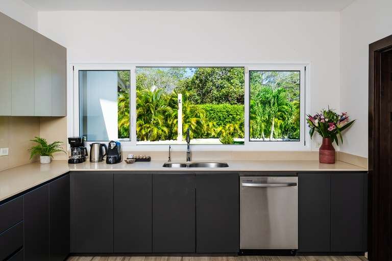 Casa Kenya also includes two detached one-bedroom apartments—ideal for vacation rentals, hosting guests, or creating a private retreat for extended family. Each apartment is thoughtfully designed with a private living area, a fully equipped kitchen, and a stylish bathroom, ensuring complete privacy and comfort. These separate living spaces make Casa Kenya a versatile property, equally suited for personal use or generating rental income.