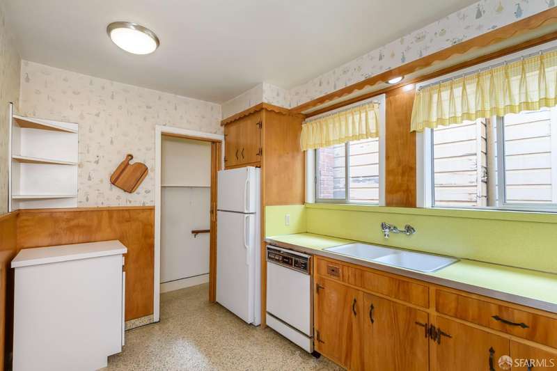 Charming Parkside 2 bedroom 1 bath home built in 1927. Living room with corner fireplace, separate formal dining room, oak hardwood floors, adorable 1950's kitchen with vintage oven/range and original tile bathroom with tub and separate stall shower. Full basement provides 2 car tandem parking, laundry room, storage room and further expansion potential. Rear brick patio and large rear yard. Wonderful home ready for your remodeling and gardening ideas and conveniently located 2 blocks to Taraval St public transit, shops, restaurants and services.
