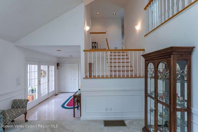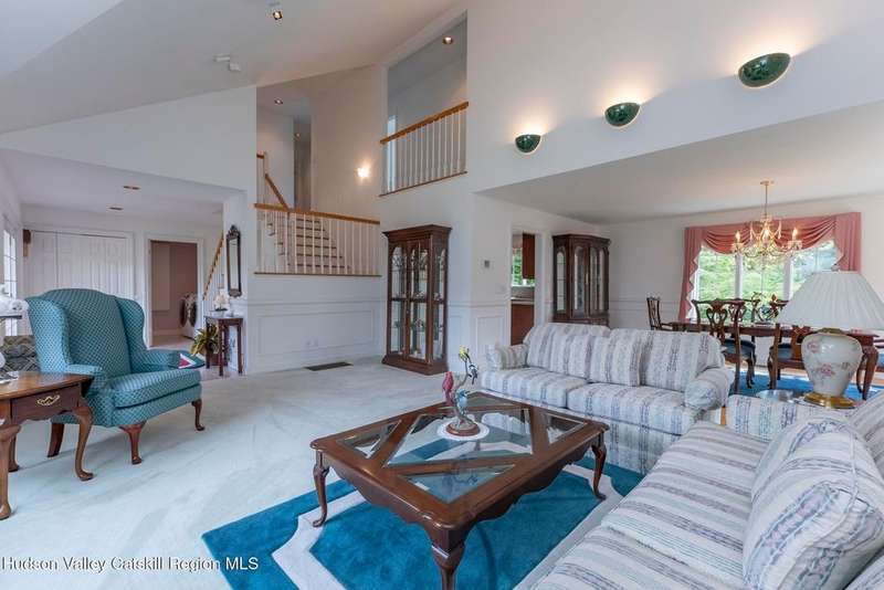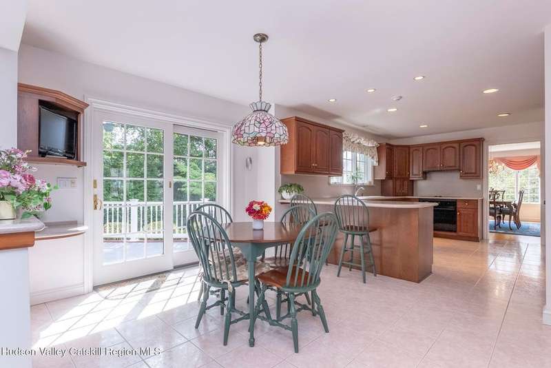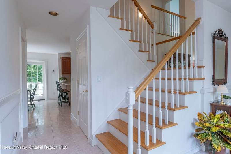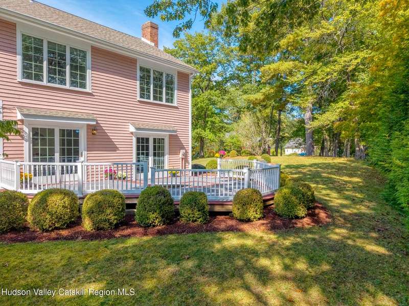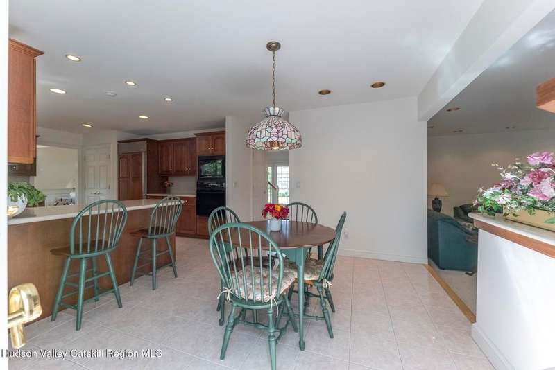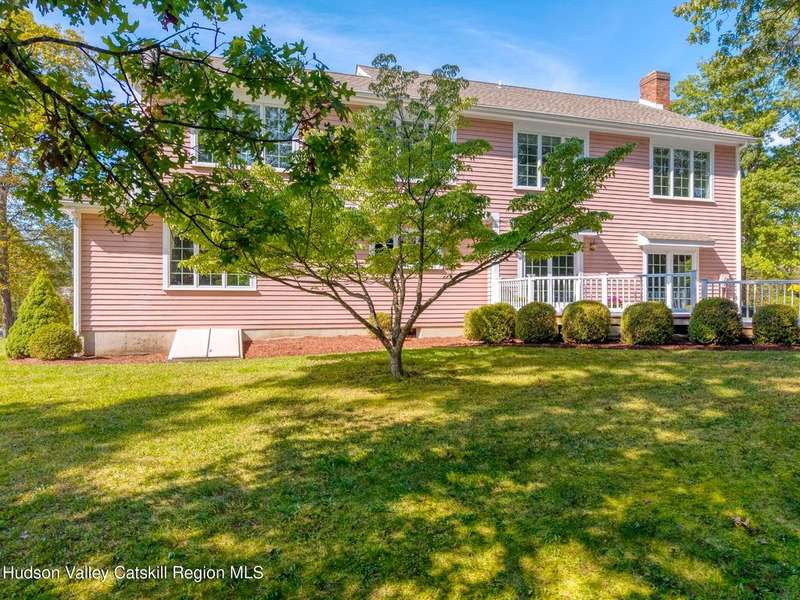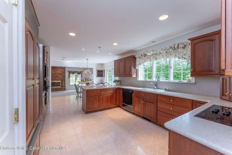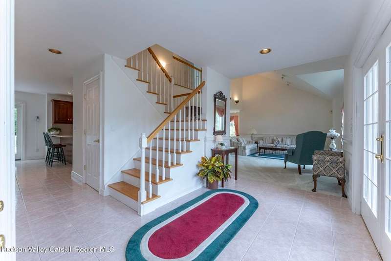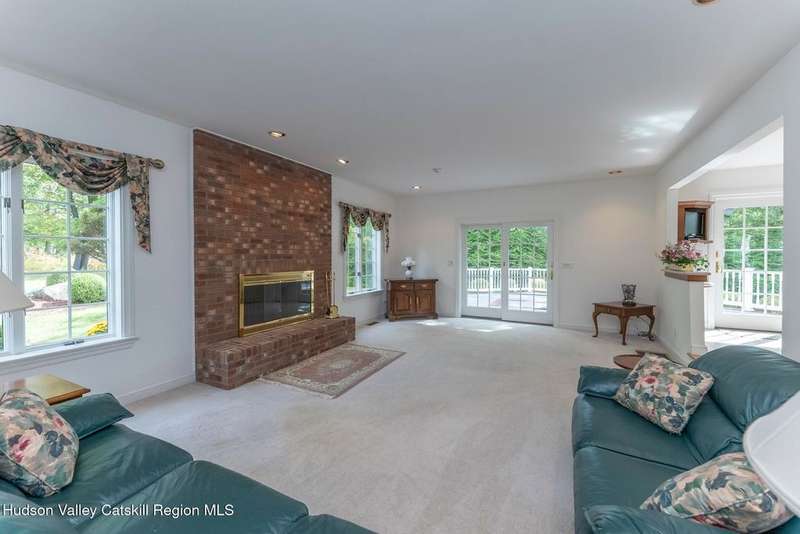 Tucked away on a quiet cul-de-sac in Kingston's desirable Hillside Heights neighborhood, this custom-built Contemporary offers an exceptional blend of style, space, and comfort. Lovingly maintained by its original owners, the home showcases thoughtful design elements and quality finishes throughout. Step inside to a bright and airy foyer, featuring an open staircase, that leads into the stunning vaulted-ceiling living room, seamlessly flowing into the formal dining area?perfect for entertaining. Expansive windows throughout the home invite abundant natural light and serene views of the surrounding landscape. The spacious eat-in kitchen is a chef's delight, featuring rich cherry cabinetry, a Jenn-Air cooktop, two Jenn-Air ovens and a built-in Sub-Zero refrigerator. The adjoining family room with a cozy brick fireplace creates a welcoming space for everyday living. Sliding doors from both the kitchen and family room open to an expansive rear deck, offering peaceful views of the private backyard. Upstairs, you will find four generous bedrooms, including a luxurious primary suite with a skylit en-suite bath, featuring a whirlpool tub for relaxation, plus two walk-in closets with custom organizers .The oversized, attached, 3-car garage with direct access to mud/laundry room makes every day routine a breeze. All the closets in the home feature automatic lights and closet organizers and the full basement offers ample storage and future finishing potential. A new owner will enjoy the comfort of geothermal heating, central air conditioning, two hot water heaters, security system, central vacuum and 5-year young roof. Conveniently located close to Kingston's vibrant shops, cafes, and restaurants, with easy access to major commuter routes?this is a rare opportunity to own a distinctive home in one of the area's most coveted locations. Some photos have been virtually staged.
