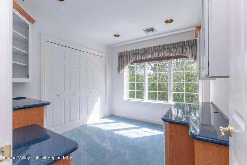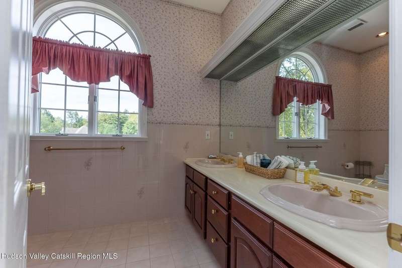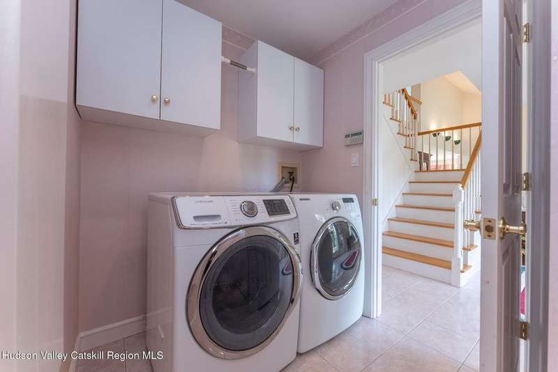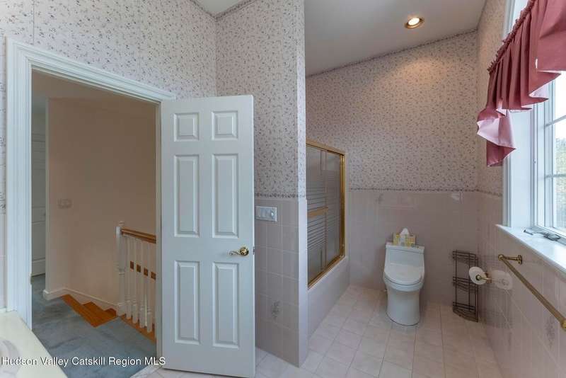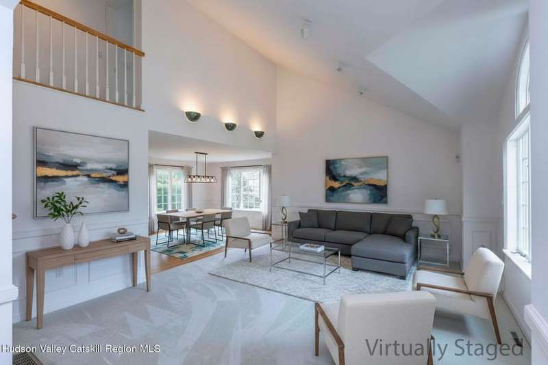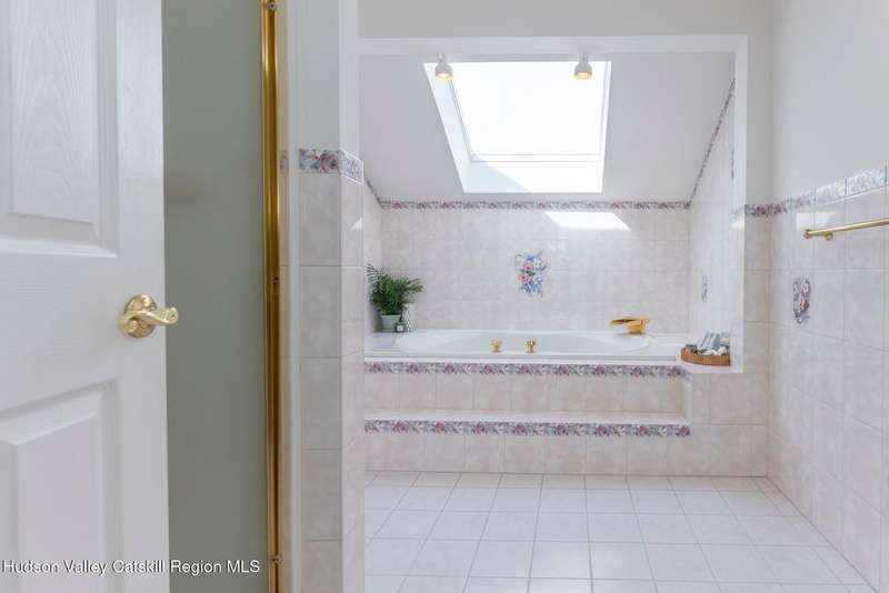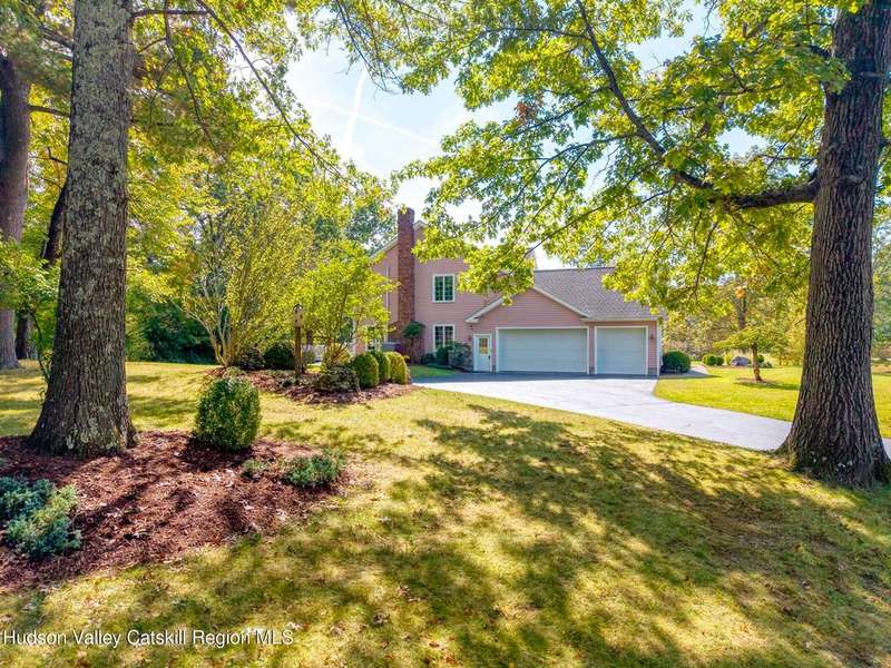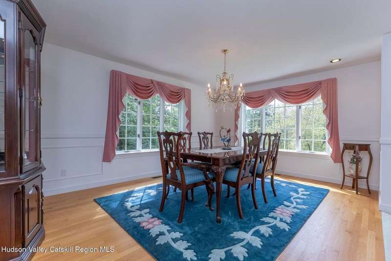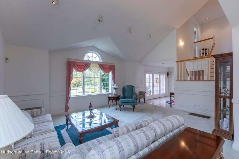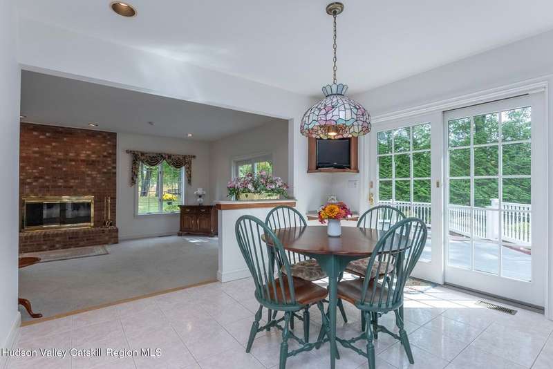 Tucked away on a quiet cul-de-sac in Kingston's desirable Hillside Heights neighborhood, this custom-built Contemporary offers an exceptional blend of style, space, and comfort. Lovingly maintained by its original owners, the home showcases thoughtful design elements and quality finishes throughout. Step inside to a bright and airy foyer, featuring an open staircase, that leads into the stunning vaulted-ceiling living room, seamlessly flowing into the formal dining area?perfect for entertaining. Expansive windows throughout the home invite abundant natural light and serene views of the surrounding landscape. The spacious eat-in kitchen is a chef's delight, featuring rich cherry cabinetry, a Jenn-Air cooktop, two Jenn-Air ovens and a built-in Sub-Zero refrigerator. The adjoining family room with a cozy brick fireplace creates a welcoming space for everyday living. Sliding doors from both the kitchen and family room open to an expansive rear deck, offering peaceful views of the private backyard. Upstairs, you will find four generous bedrooms, including a luxurious primary suite with a skylit en-suite bath, featuring a whirlpool tub for relaxation, plus two walk-in closets with custom organizers .The oversized, attached, 3-car garage with direct access to mud/laundry room makes every day routine a breeze. All the closets in the home feature automatic lights and closet organizers and the full basement offers ample storage and future finishing potential. A new owner will enjoy the comfort of geothermal heating, central air conditioning, two hot water heaters, security system, central vacuum and 5-year young roof. Conveniently located close to Kingston's vibrant shops, cafes, and restaurants, with easy access to major commuter routes?this is a rare opportunity to own a distinctive home in one of the area's most coveted locations. Some photos have been virtually staged.