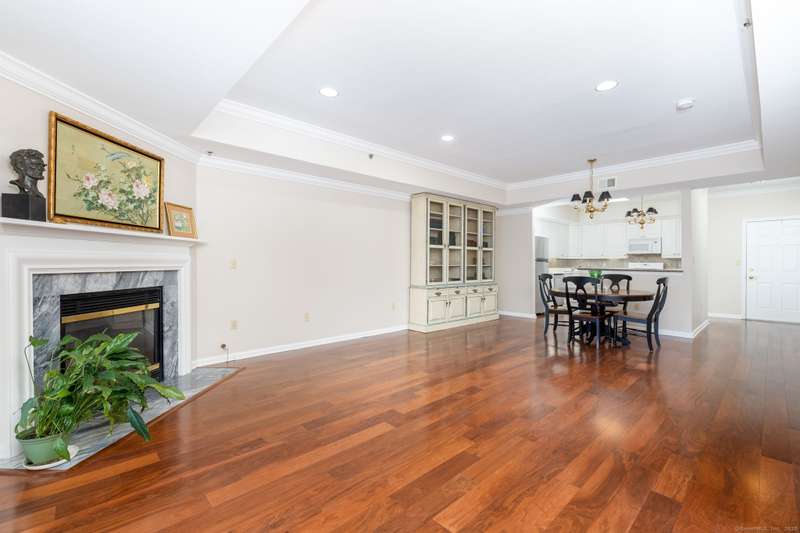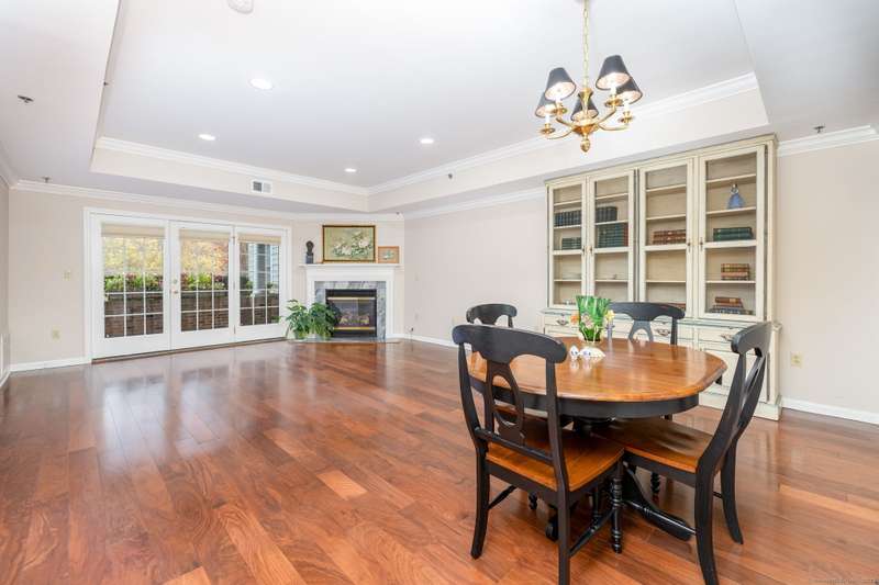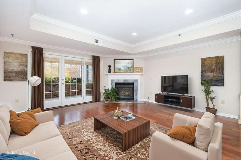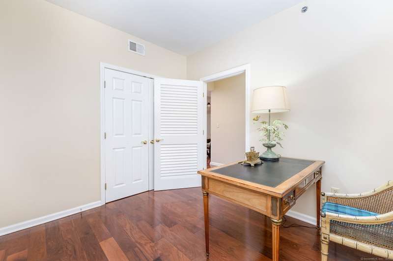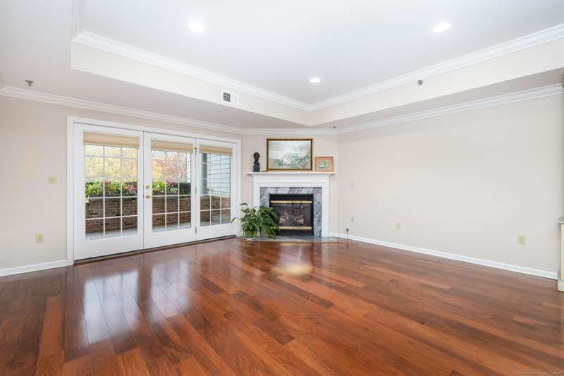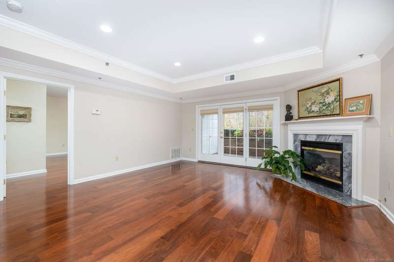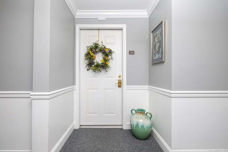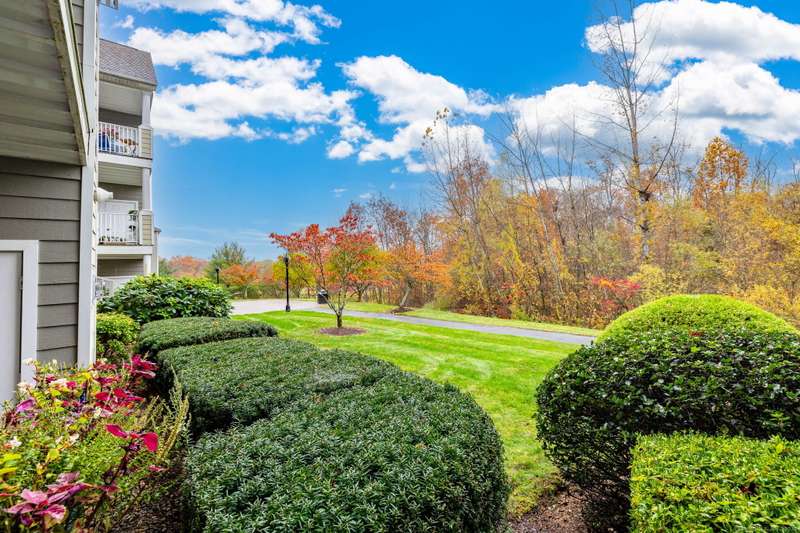 RARELY AVAILABLE in a magnificent setting with the most convenient living! This beautifully appointed condominium unit is updated in sophisticated style with wider board, cherry flooring, soaring ceilings, natural gas fireplace, massive closets, exceedingly large Master Bedroom AND an additional, enclosed, private room with unlimited possibilities. 1ST FLOOR living has never been so easy breezy. Sliding doors open to the unit's exclusive patio with a beautiful, brick privacy surround. This outdoor access is not only A COVETED VALUE ADD, it's life-changing with a pet! Strategically sited within the building proper, Unit 110's generously sized windows manage to offer loads of light without sacrificing privacy. One doesn't have to leave the house to enjoy bucolic views and some of the best leaf-peeping around. Walking paths and private trails are enjoyed by this community's local owners. They are scattered all about the acres here and are beautifully and carefully maintained. In fact, any