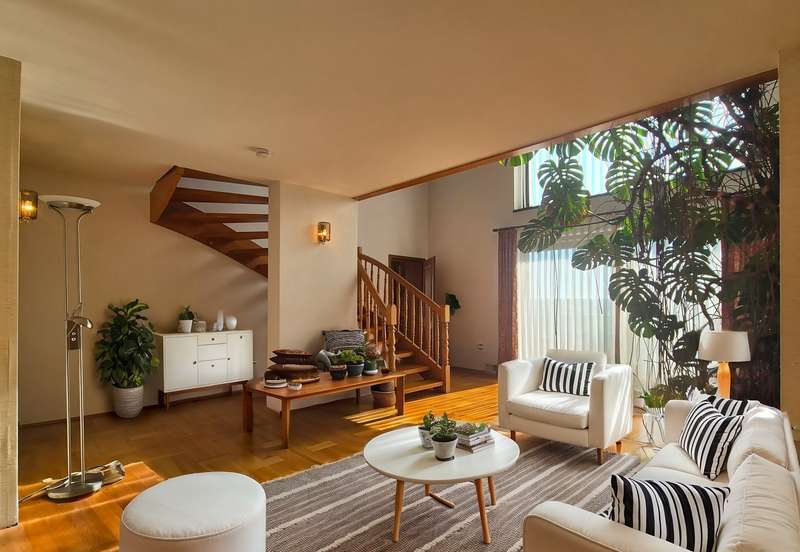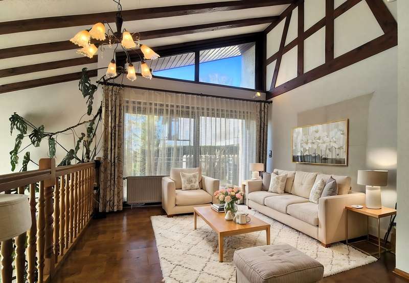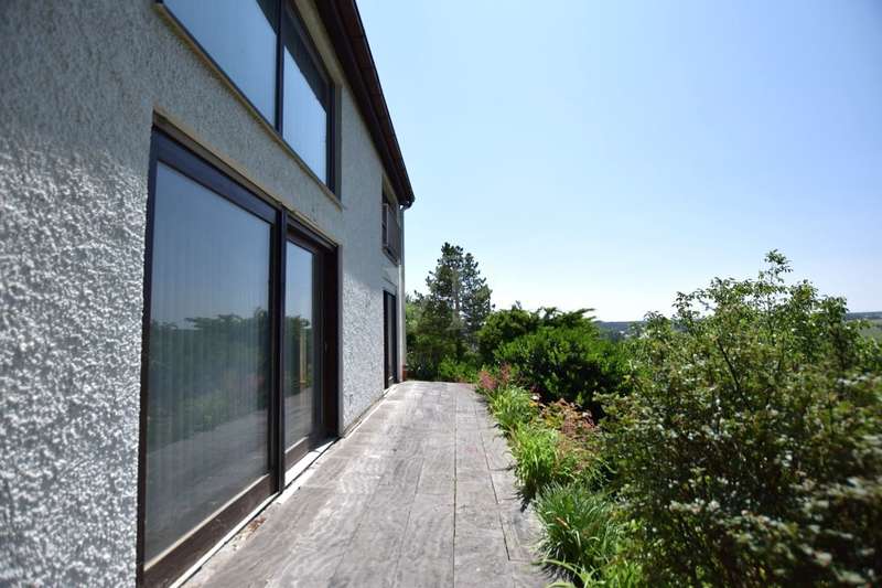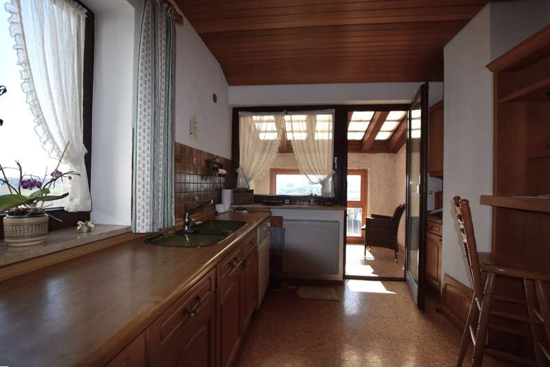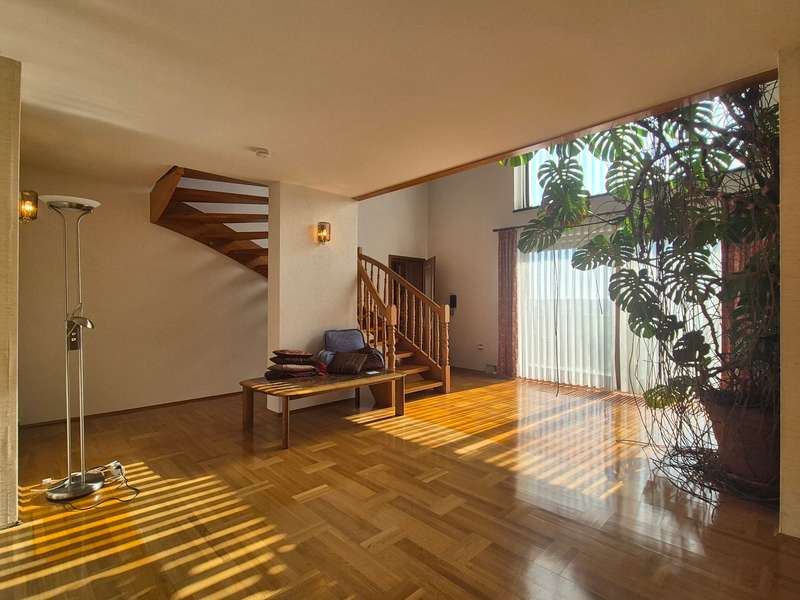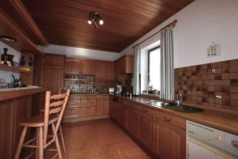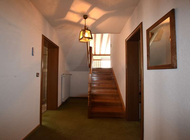 For sale is a well-kept architect's house, built in solid construction and completed in 1984 for first occupancy. The property is in a sought-after location in Feuchtwangen and offers a living space of approx. 180 m² on a generous plot of approx. 831 m². The house boasts an ingenious room layout and numerous special features that will make life in your new home particularly pleasant. The property has a total of 7 rooms that can be used flexibly. The light-flooded living concept is emphasized, among other things, by large window fronts that offer a panoramic view over the city and access to the balcony and the three terraces. A tiled stove also ensures cozy evenings, spreading warmth and a comfortable ambience on the first floor. Another special highlight is the fireplace room, which adjoins the open-plan living area and enhances living comfort. The fitted kitchen is directly connected to a small conservatory, which offers additional space for socializing or relaxing. The kitchen solution is practically designed and leads to more efficient use of the house in everyday life. A daylight bathroom and a separate guest WC provide the necessary functionality and comfort. The room layout also includes a balcony that offers an uninterrupted view into the distance. A swimming pool is located in the shell of the building and leaves room for individual design and development. In addition to the generous living space, there is approx. 140 m² of usable space available, which offers further possibilities for individual usage concepts. An oversized double garage is also located on the property and offers sufficient space for vehicles and two-wheelers as well as additional storage space in the attic. The covered entrance protects you from the weather and you can enter the house with your shopping in the dry. The architecture of the house is exceptional and blends seamlessly into the familiar urban landscape. The location of the property combines central proximity with a feeling of privacy and tranquillity. With its many terraces, the house offers plenty of opportunities to enjoy the outdoor areas of the beautifully landscaped garden to the full. The existing trees provide pleasant shade in hot summers. Potential buyers can expect a property that offers a harmonious combination of comfort, functionality and charming surroundings. Experience the numerous advantages of this detached house during a personal viewing, be it the generous room layout or the well thought-out fittings. Please contact us for more information or to arrange a viewing. We look forward to presenting this special property to you in more detail and answering any questions you may have.