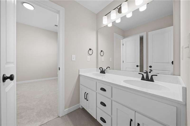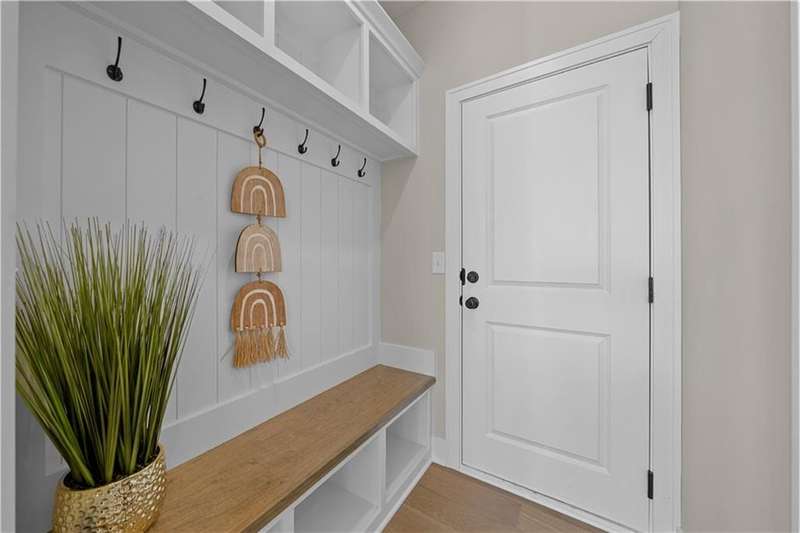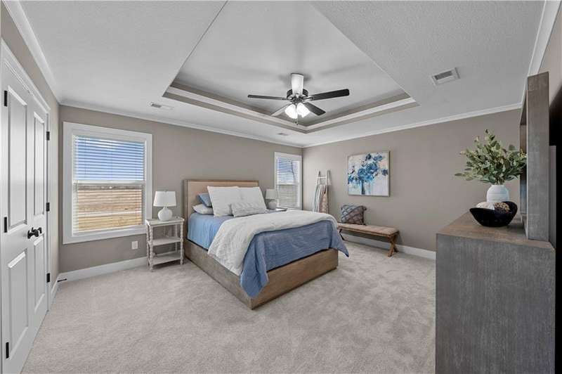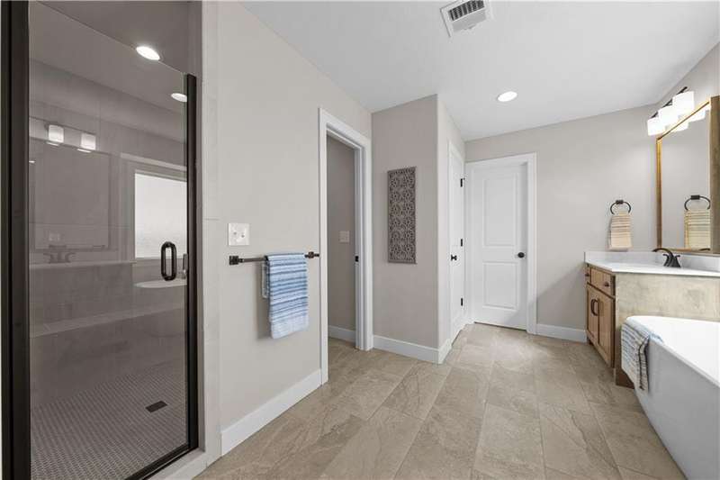 The Delaney III plan by MFEI featuring a prep-pantry addition in the kitchen. Prep pantry includes wood floors, butcher block top upgrade, tons of extensive trim work, and outlets. Home also includes a covered patio with extendedconcrete. Upgraded front elevation and 8ft tall sliding glass door upgrade to the backyard. Open main level with hardwoods throughout. Oversized, deep lot on a cul-de-sac. Two-story entry. 9-ft foundation with basement bath stub upgrade, and additional landscaping. Vaulted secondary bedrooms on the front of the house. Guest bedroom includes private 3/4 bath. An expansive master bedroom suite with a lighted tray vault, a beautiful master bath with a freestanding tub, a fabulous spa shower, and separate vanities. Detailed trim work in the master closet. All bathrooms include upgraded Matte Black Faucet package, and hardware. Upgraded lighting package. All bedrooms are wired for future ceiling fans. Additional features include 8-lb carpet pad, granite kitchen countertops with an expanded kitchen island, upgraded kitchen backsplash, custom wood cabinet hood with insert vented to the exterior, enamel cabinet surround with stained island, glass pantry door, composite kitchen sink, smart thermostat, garage door openers, garage keypad, 2-inch faux wood BLINDS, sprinkler system, R-49 attic insulation, painted and insulated garage walls, extended front porch and much, much, more! Area amenities include a STOCKED fishing lake, a heated subdivision pool with a splash zone and slide (extended pool season), a playground, a picnic shelter, and a fire pit. Taxes and sqft are estimated.