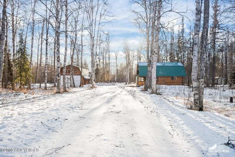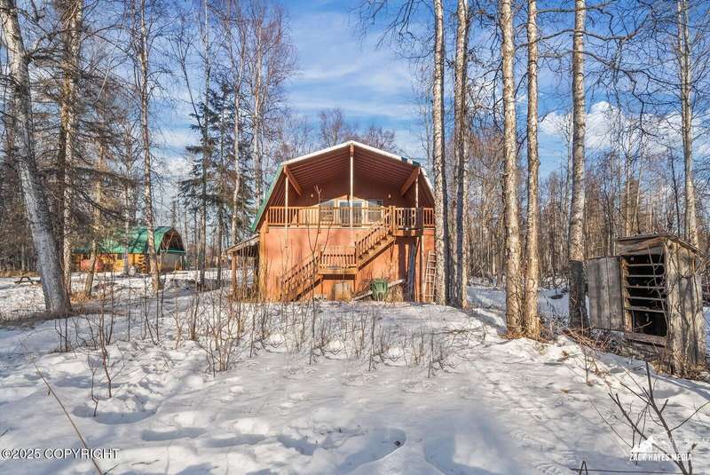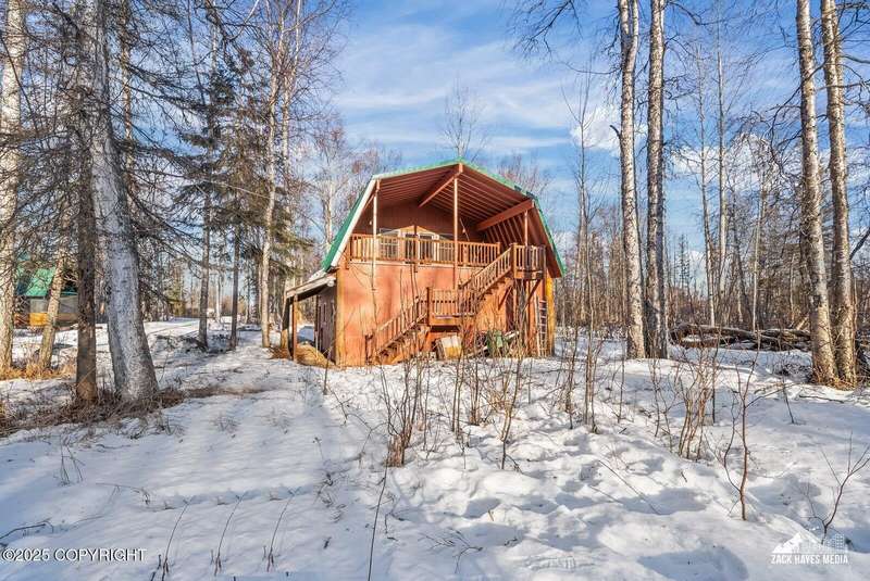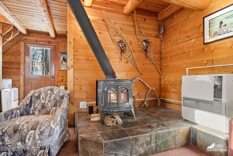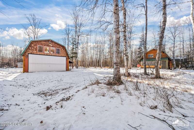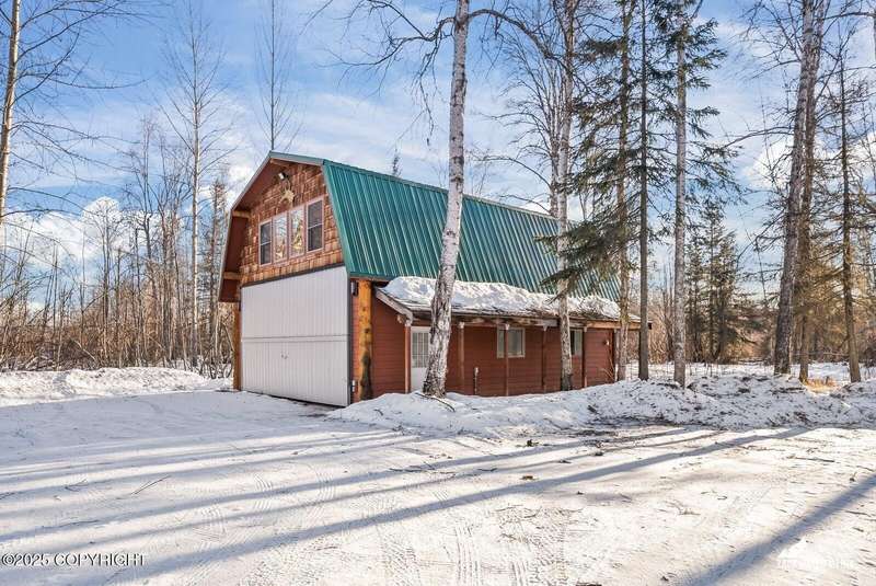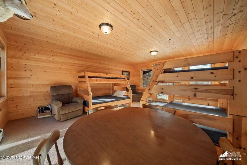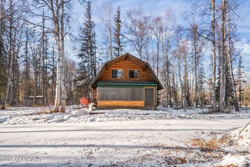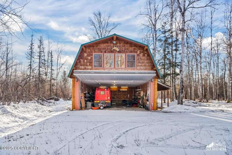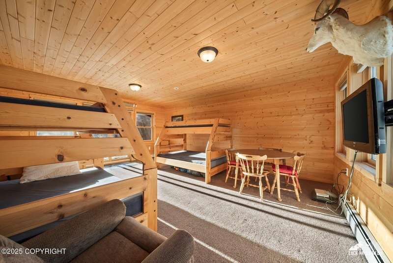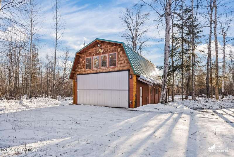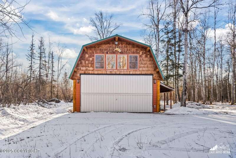 Furnished recreational snow machining cabin with direct access to miles and miles of snow machine trails including the Iditarod trail to the Susitna River right out the back of property. 891 square foot radiant-heated garage for all your toys with huge hangar door, frost free hydrants and a bunk room and deck above! House is move-in ready and includes a snow blower and field brush mower and many, many tools. Situated next to Deshka Landing boat launch on the Susitna river. Gated community.