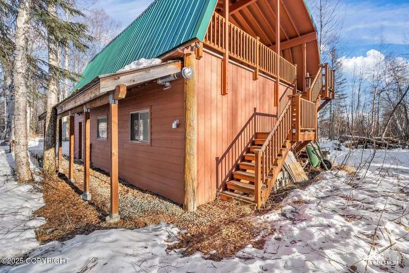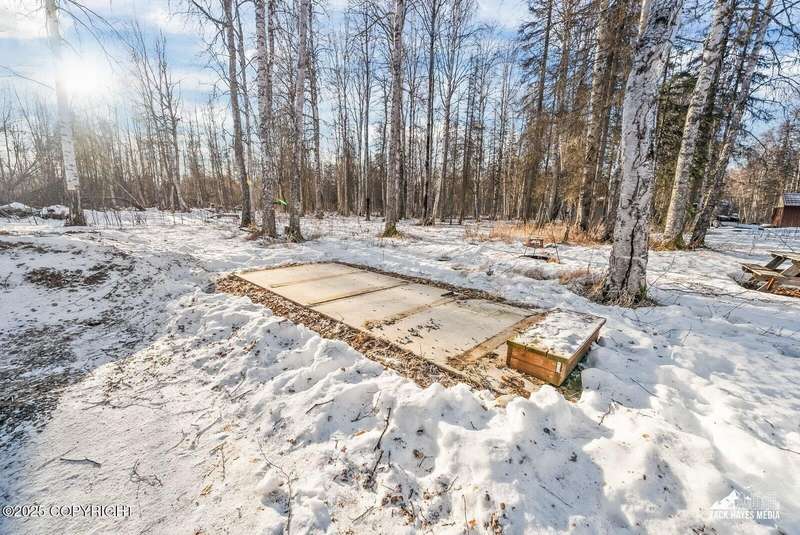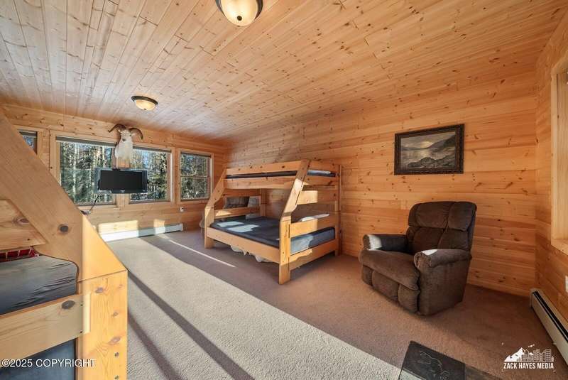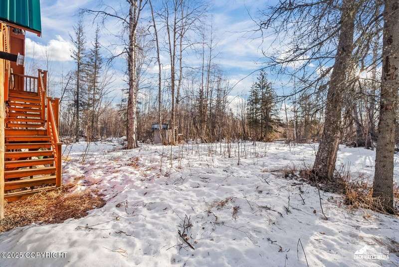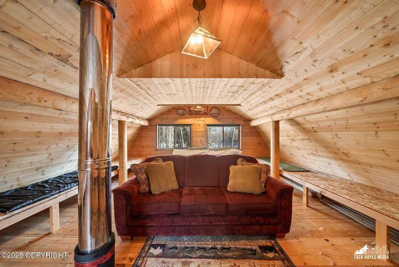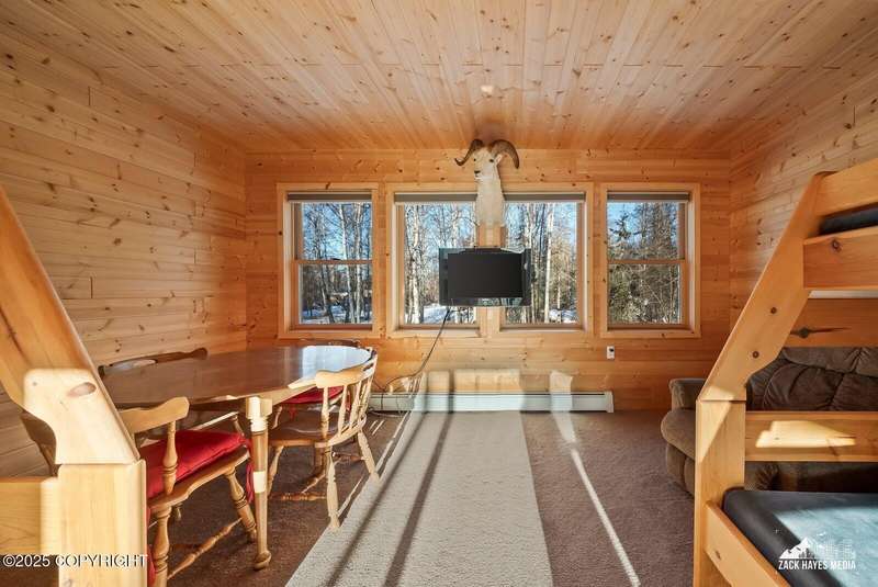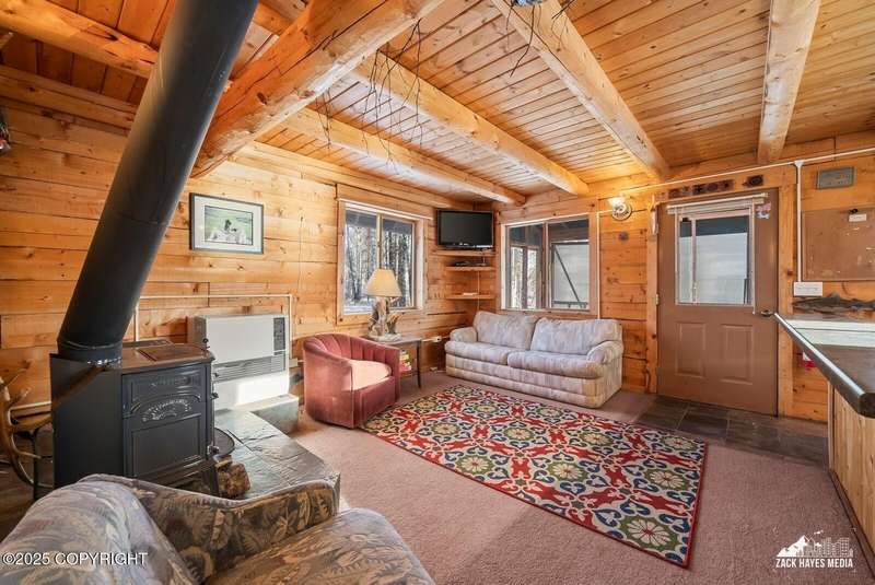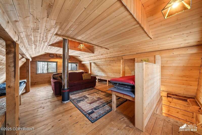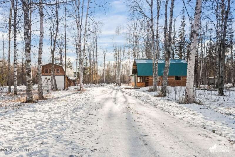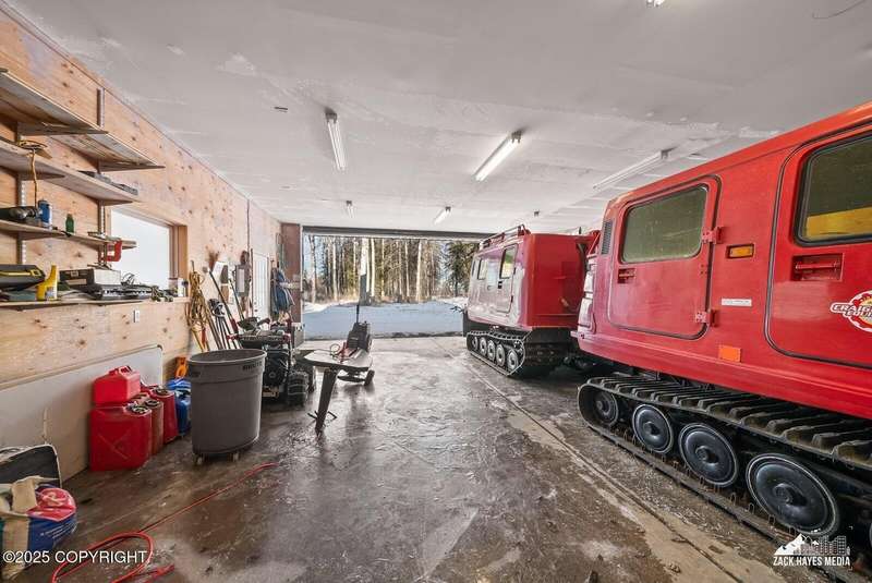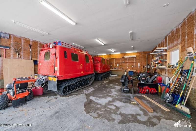 Furnished recreational snow machining cabin with direct access to miles and miles of snow machine trails including the Iditarod trail to the Susitna River right out the back of property. 891 square foot radiant-heated garage for all your toys with huge hangar door, frost free hydrants and a bunk room and deck above! House is move-in ready and includes a snow blower and field brush mower and many, many tools. Situated next to Deshka Landing boat launch on the Susitna river. Gated community.