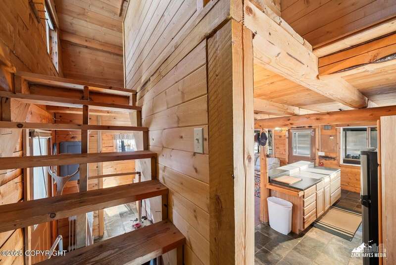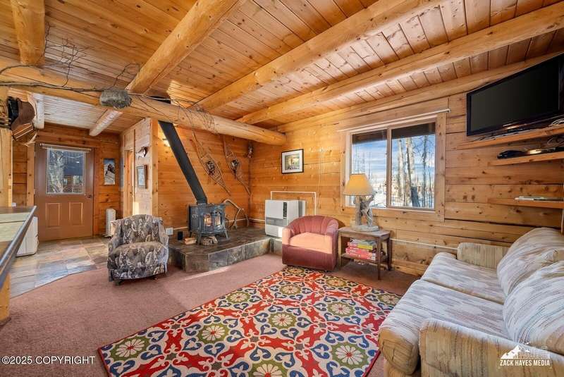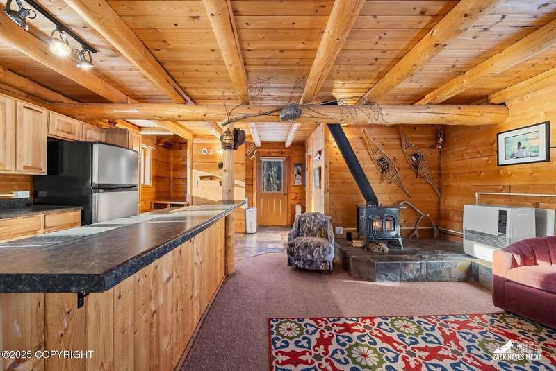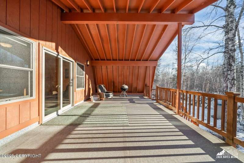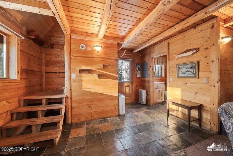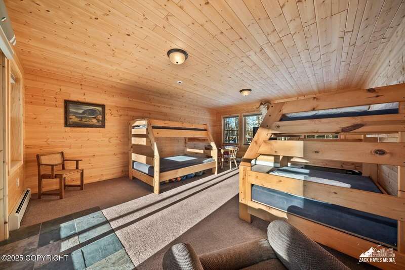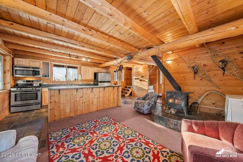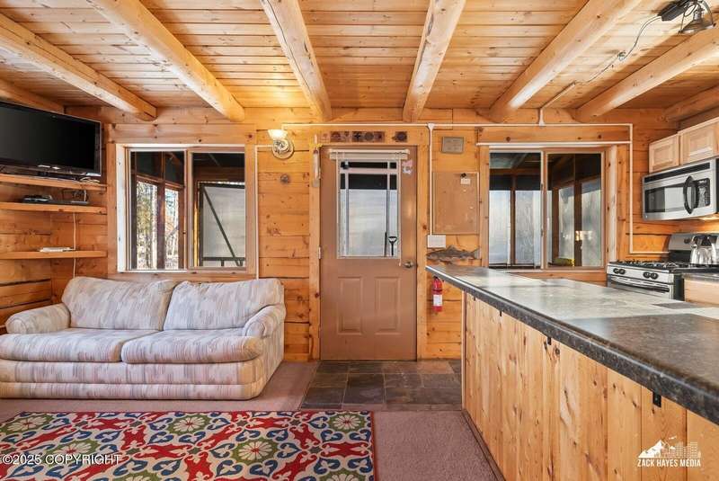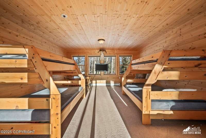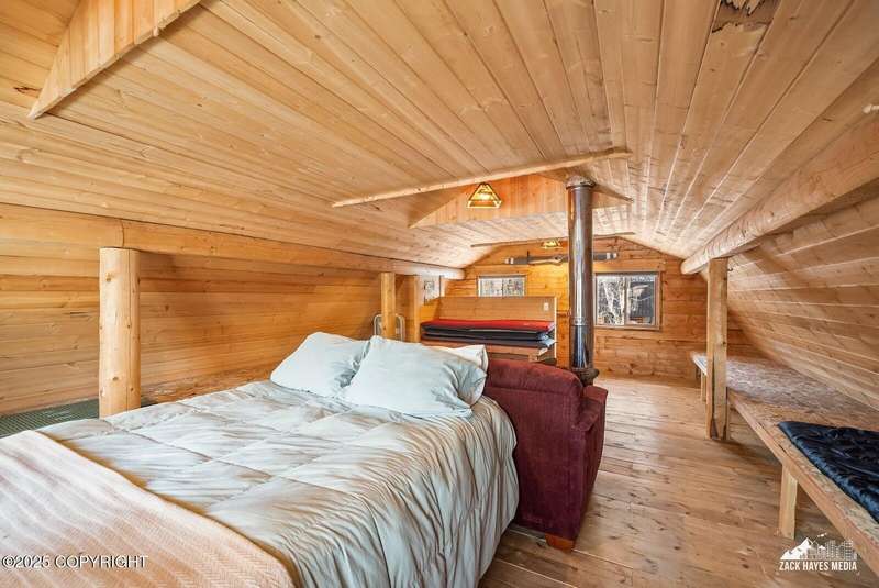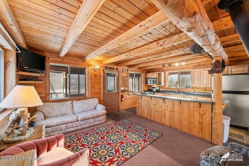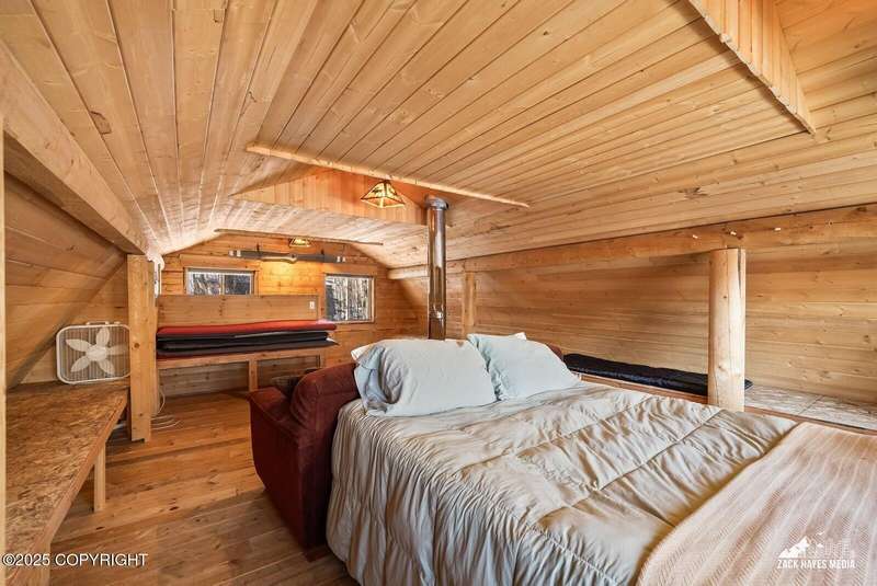Furnished recreational snow machining cabin with direct access to miles and miles of snow machine trails including the Iditarod trail to the Susitna River right out the back of property. 891 square foot radiant-heated garage for all your toys with huge hangar door, frost free hydrants and a bunk room and deck above! House is move-in ready and includes a snow blower and field brush mower and many, many tools. Situated next to Deshka Landing boat launch on the Susitna river. Gated community.