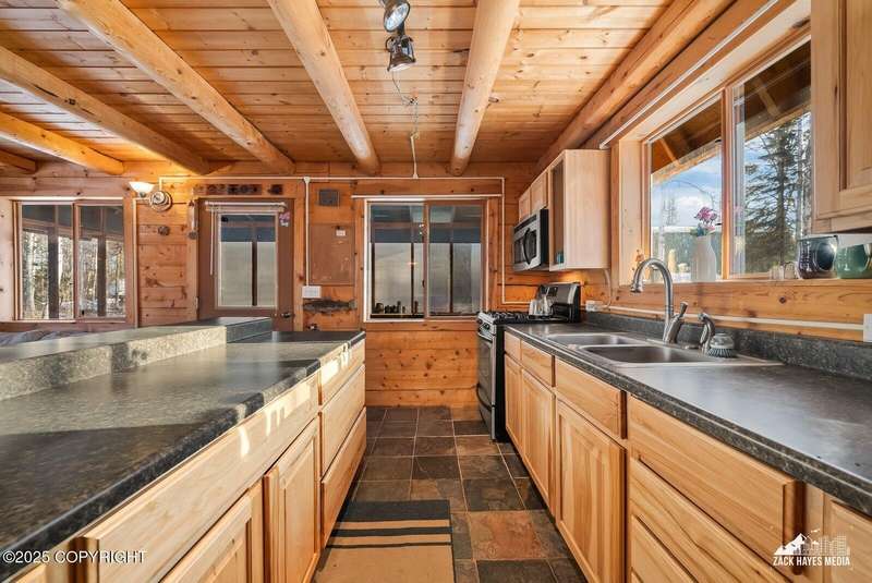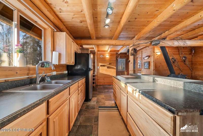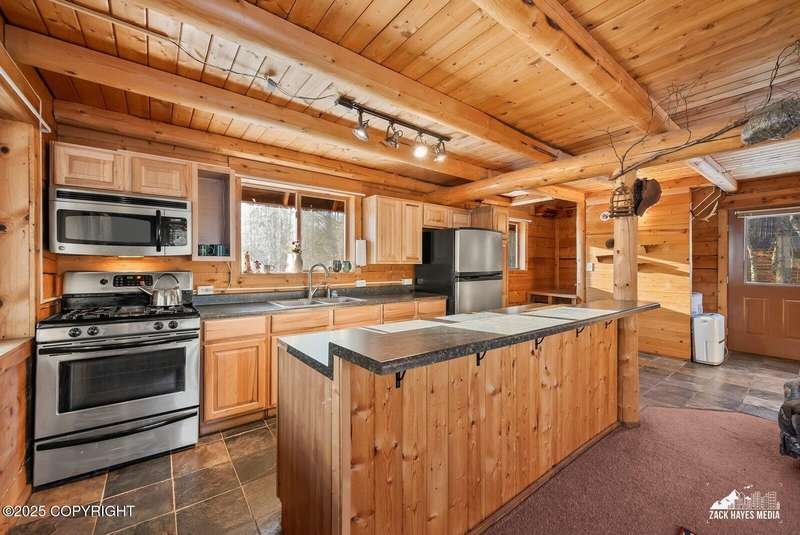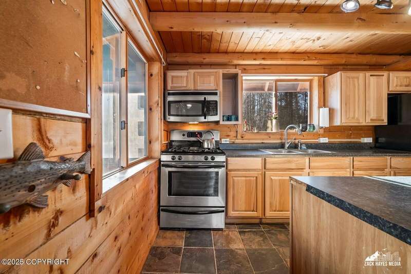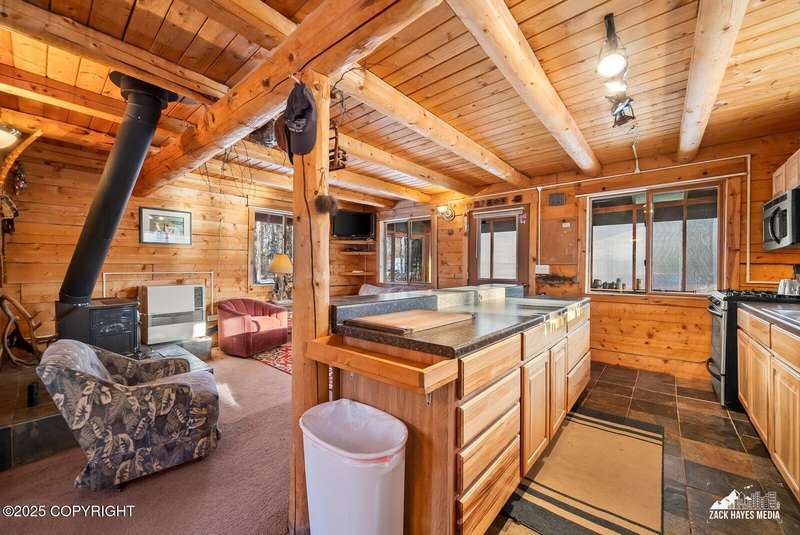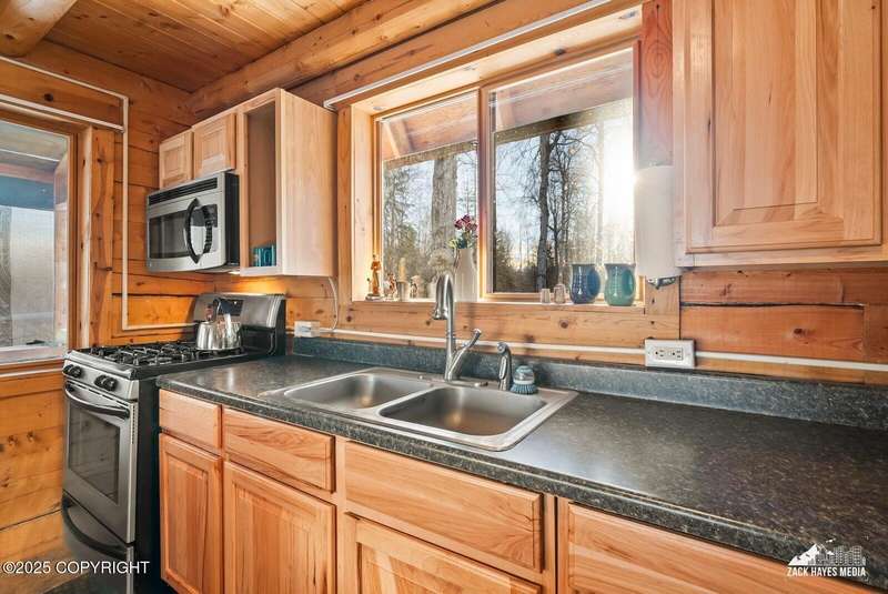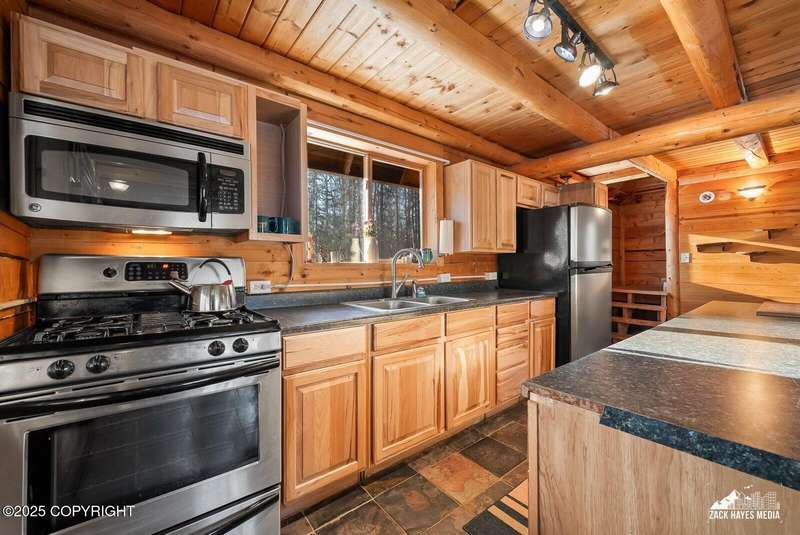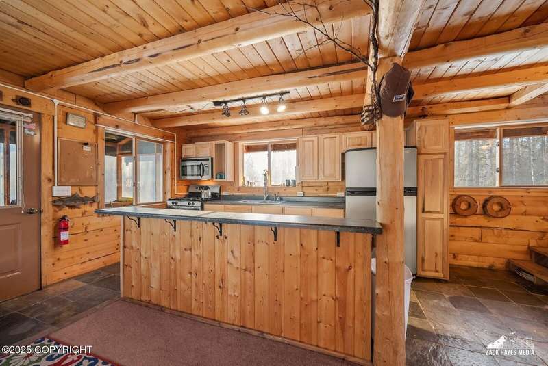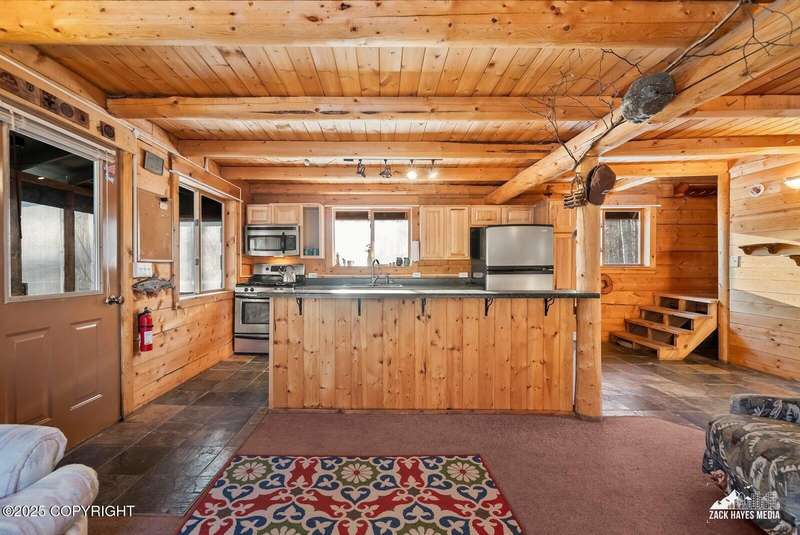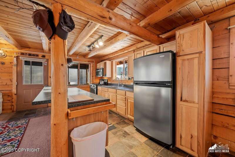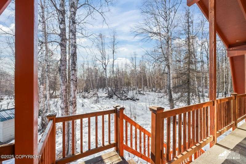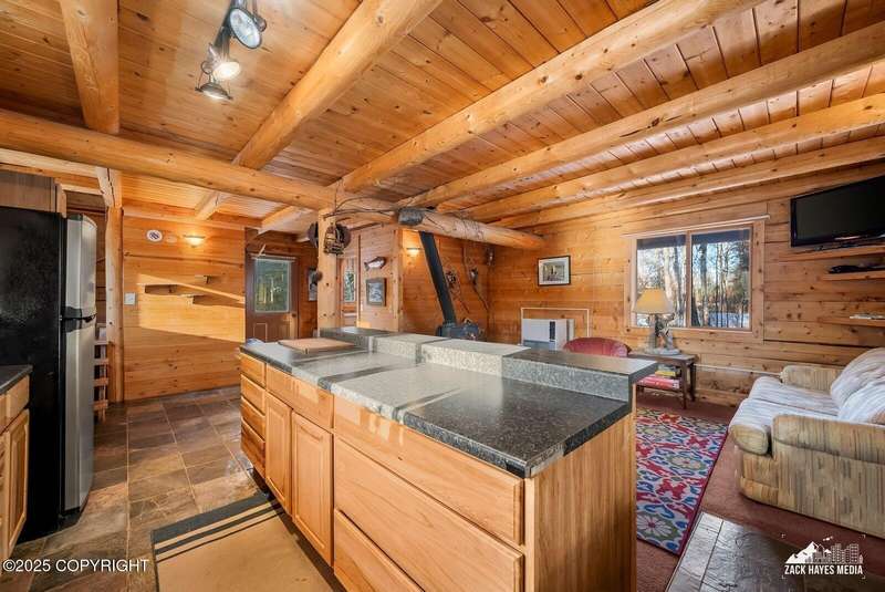 Furnished recreational snow machining cabin with direct access to miles and miles of snow machine trails including the Iditarod trail to the Susitna River right out the back of property. 891 square foot radiant-heated garage for all your toys with huge hangar door, frost free hydrants and a bunk room and deck above! House is move-in ready and includes a snow blower and field brush mower and many, many tools. Situated next to Deshka Landing boat launch on the Susitna river. Gated community.