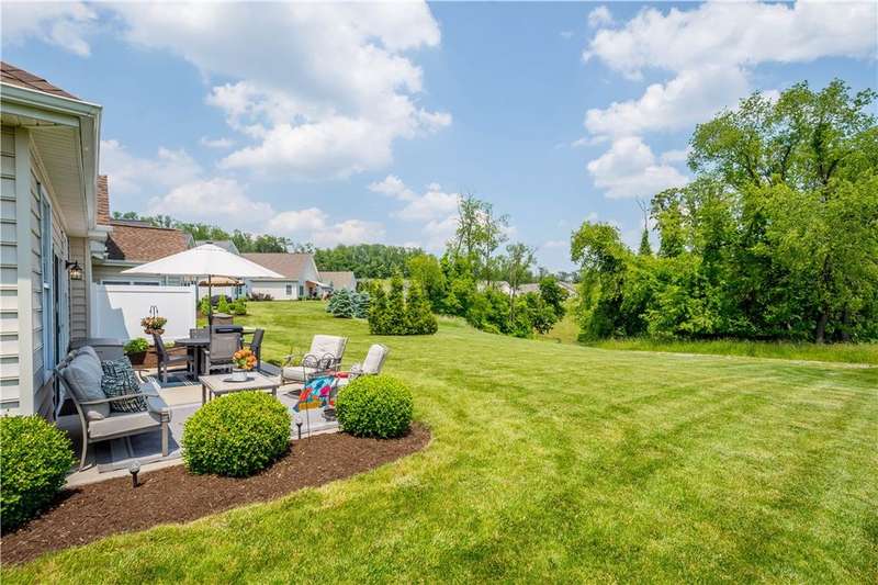 This desirable property is located in Traditions of America's 55+ community in Ohio Twp offering a 4,500 SF clubhouse w/ a heated pool, fitness center & sports bar. A cheerful sun-splashed open concept floor plan w/ soaring ceilings. Picture perfect lot w/ amazing views of a park like backyard & a treetop skyline, your own private escape. The gallery foyer makes a stunning first impression w/ its impressive tray ceiling, elegant wainscoting & entry door w/ sidelight. Anchored by a massive center island, the awe inspiring kitchen opens seamlessly into a gathering room. The main floor laundry adds a touch of step saving convenience. The owner's wing boasts an en-suite bath w/ a double bowl vanity, tiled backsplash, easy access tiled shower, walk in closet & charming window seat. A spacious storage room w/ an easy access staircase through the level entry garage. Surrounded by manicured grounds, the current owners are conveying a turn key property w/ flawless indoor & outdoor space.