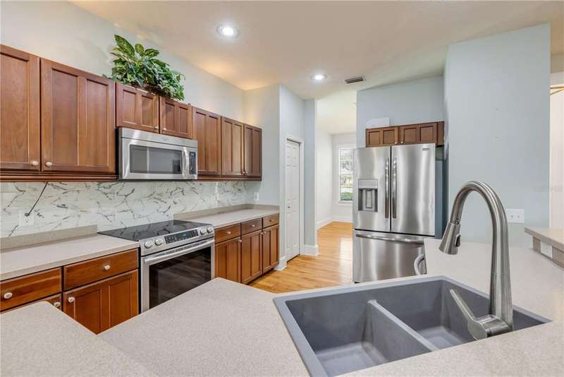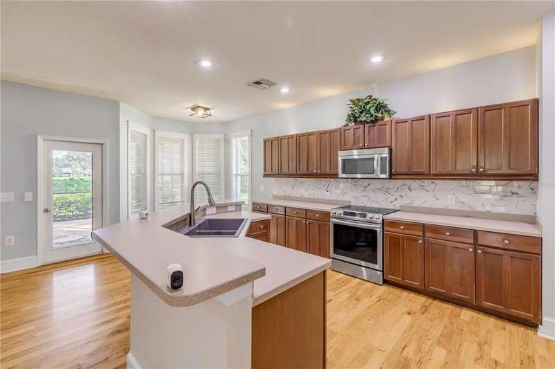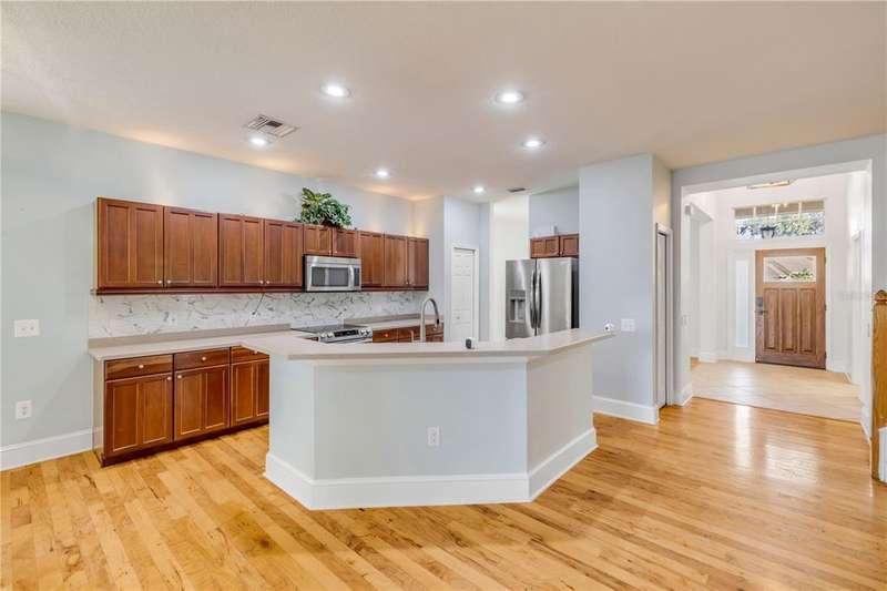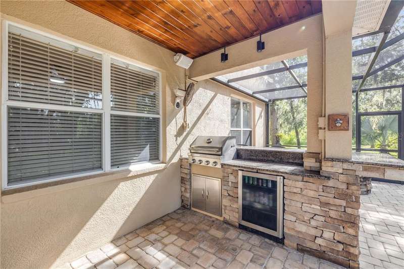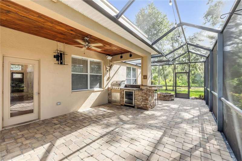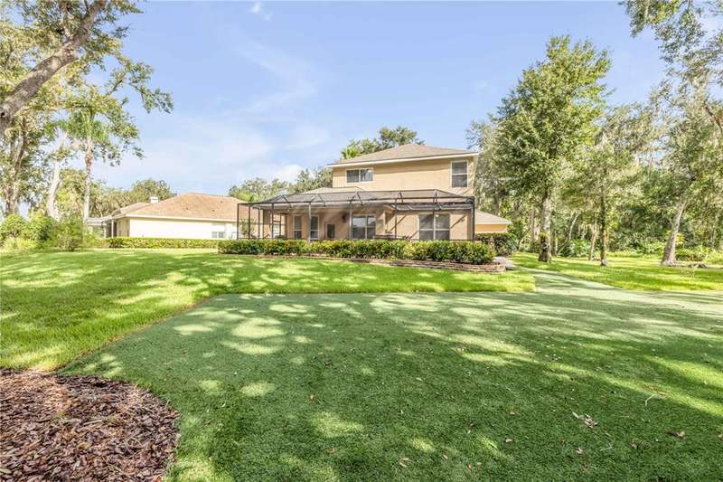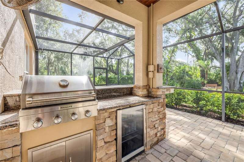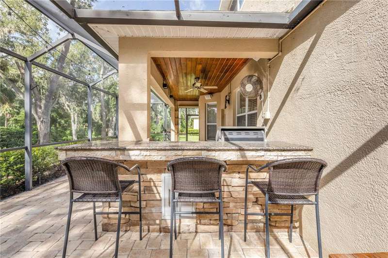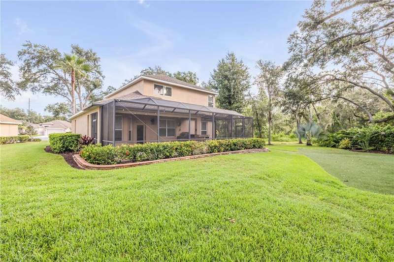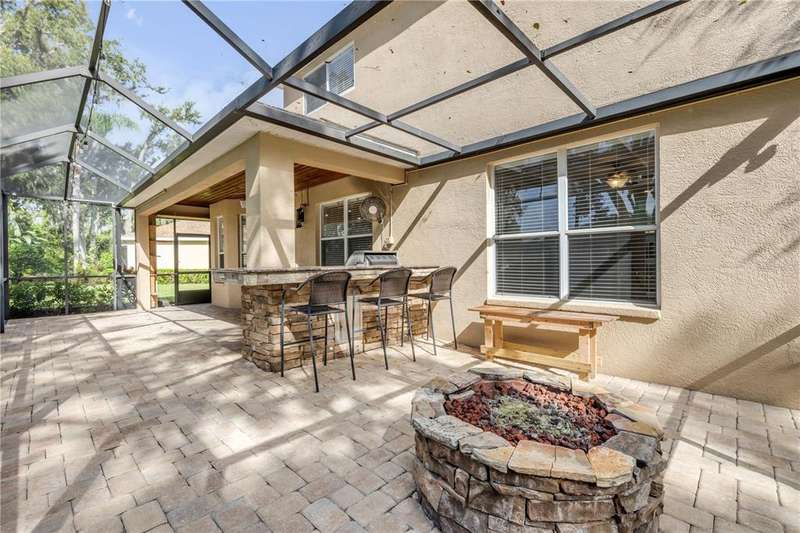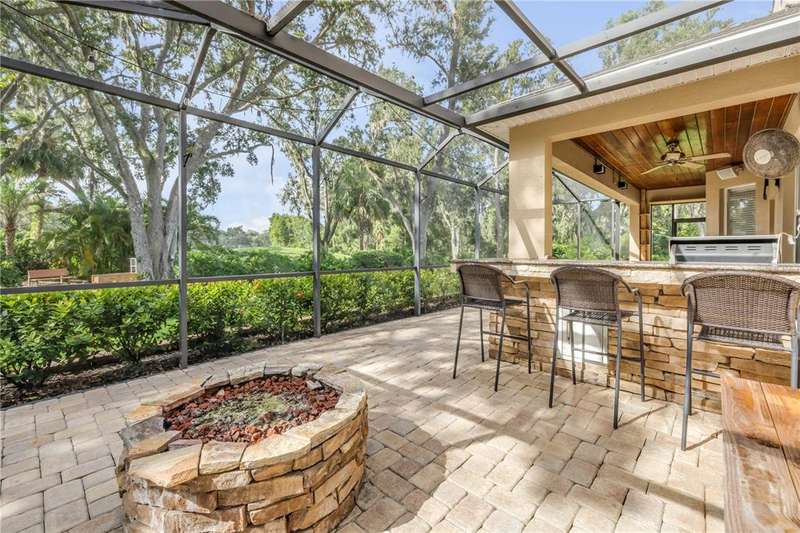 Welcome to your private retreat on a third of an acre, perfectly positioned on the iconic 14th “Signature Hole” of River Hills Country Club in Valrico. This 4-bedroom, 2.5-bath home with a 3-car garage featuring epoxy flooring and a spacious loft/bonus room sits at the end of a quiet cul-de-sac, offering privacy and sweeping golf course views. The open layout features a soaring foyer, formal dining with a pass-through to the kitchen, and a great room that flows seamlessly into the chef’s kitchen with stainless steel appliances, hardwood cabinetry, and a large island with breakfast bar seating. The first-floor owner’s suite includes dual walk-in closets and a bathroom with granite countertops, double sinks, a seamless glass shower, and a private water closet. Upstairs are three additional bedrooms, a full bath, and a versatile loft space. Outside, enjoy a fully screened pavered lanai with a fire pit and outdoor kitchen equipped with a stainless-steel grill, beverage cooler, bar seating, and TV hookup. The large backyard offers space for pets and play under mature oaks. River Hills Country Club provides trails, a pool, playground, sports courts, and optional tennis and golf memberships. Conveniently located near top-rated schools, shopping, dining, and major highways, this home offers a rare combination of privacy, space, and community amenities.