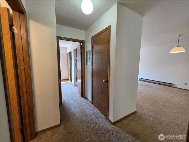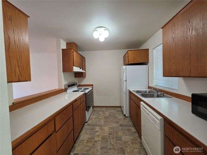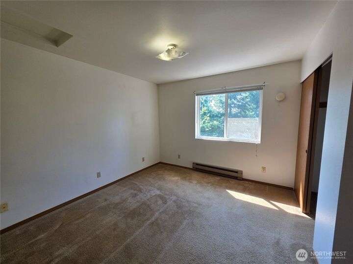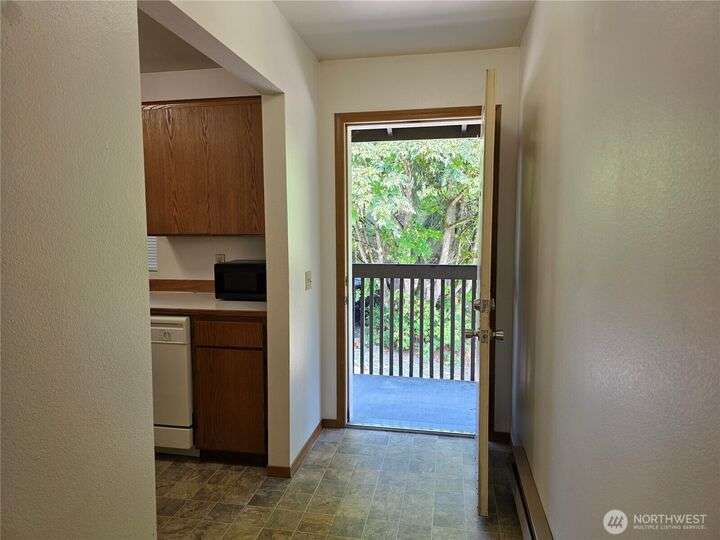 Top-floor and corner unit apartment with picturesque views of Stanwood and surrounding fields. Features wall-to-wall carpeting and vinyl flooring in the kitchen, along with a small balcony. All appliances provided, excluding a washer and dryer, which are available in the onsite community laundry room. Garbage, water, and sewer $40 per month. One-year lease required. No pets and no smoking.