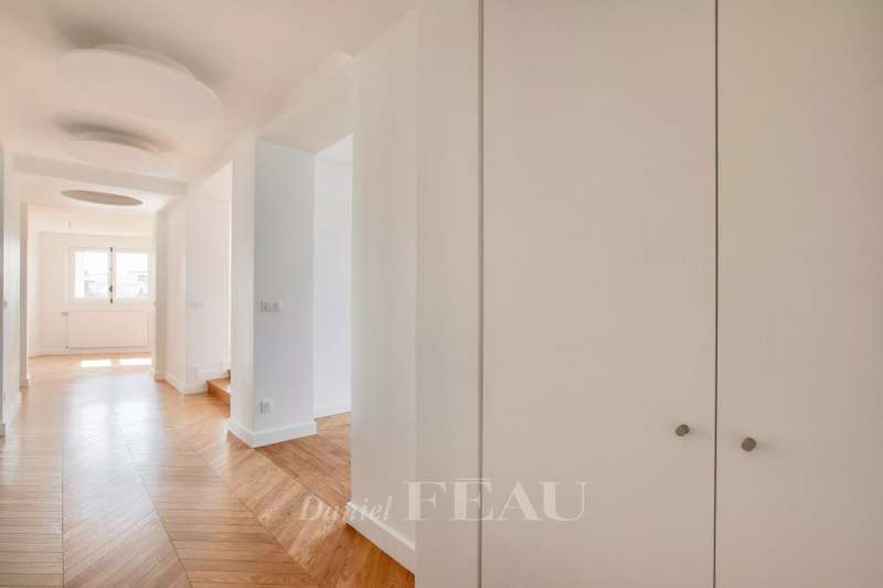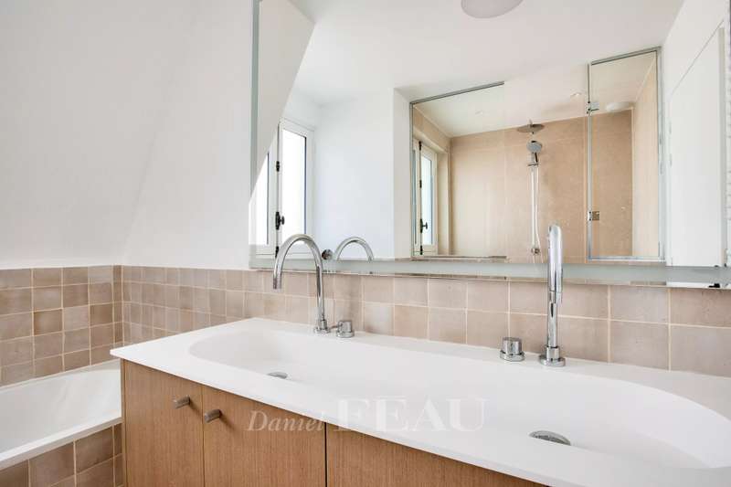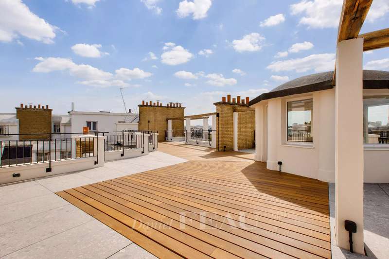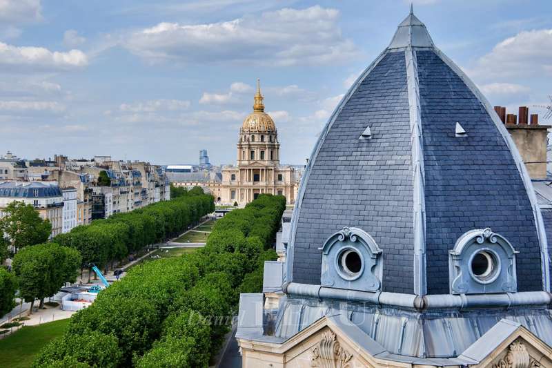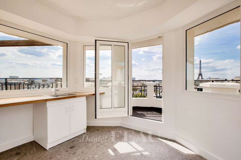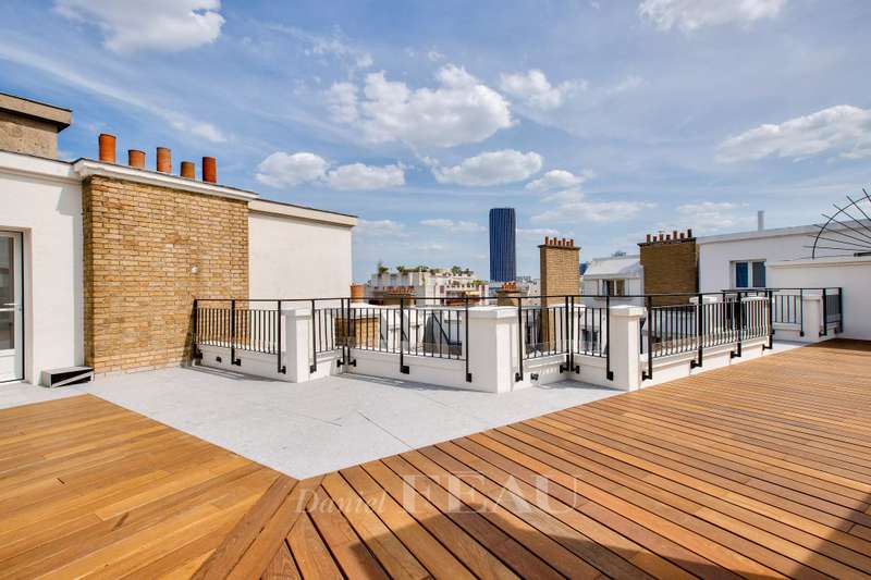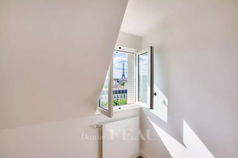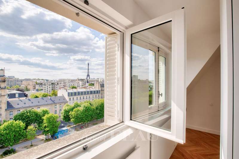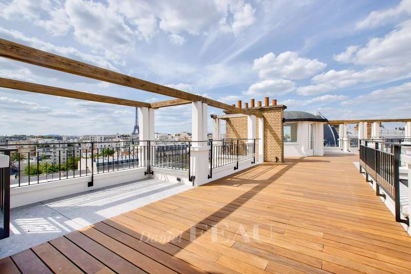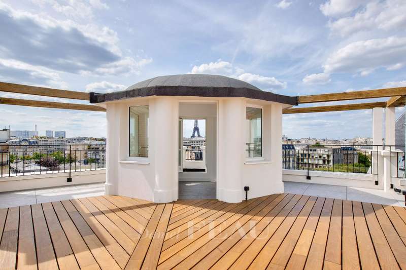 Avenue de Breteuil. This 142 sqm duplex apartment on the top floors of a luxurious 1930s building benefits from a 102 sqm roof terrace commanding a sublime panoramic view of the Eiffel Tower, the Invalides Dome and other landmarks. Meticulously renovated throughout, it includes an entry with a cloakroom, a spacious living/reception room opening onto a balcony enjoying views of the Eiffel Tower and the Invalides Dome, a fitted and semi-equipped kitchen, a master suite with a shower room and dressing room, two further bedrooms with fitted cupboards (one enjoying an Eiffel Tower view, one overlooking a courtyard), a study or possible 4th bedroom, a bath/shower room, a utility room and two guest wc. The roof terrace is equipped with a fitted summer kitchen. The building has a caretaker and is equipped with a lift, a door-entry code and an intercom. Collective heating and hot water. Available immediately exclusively under the conditions of the code Civil.