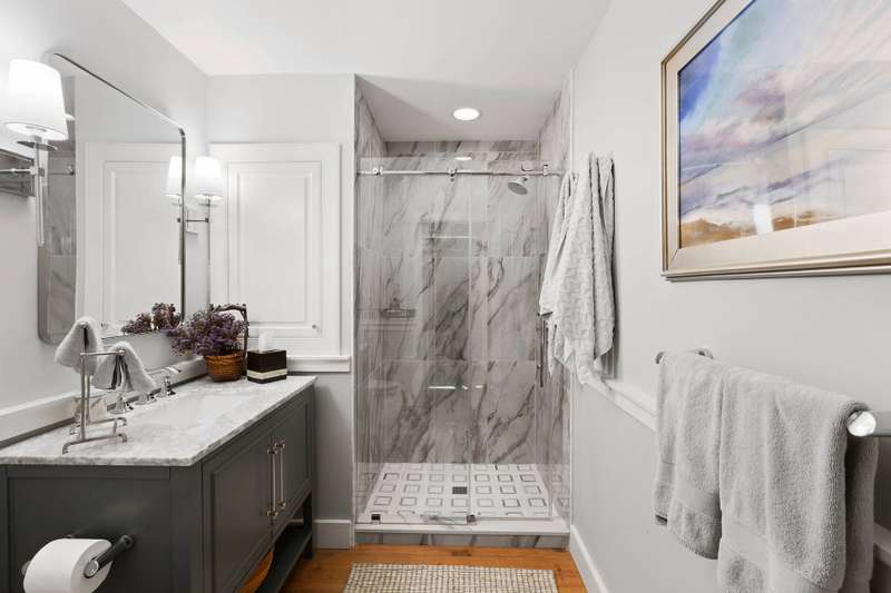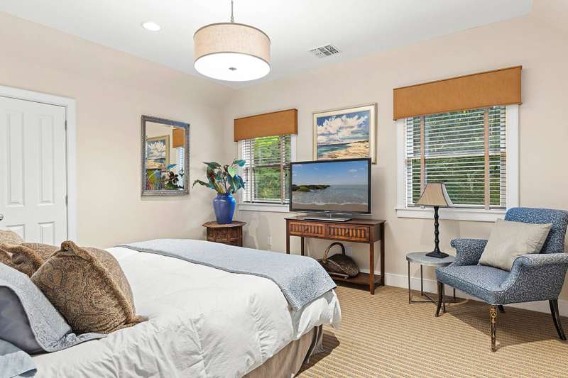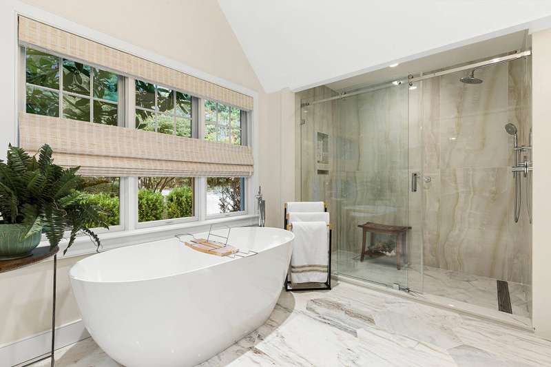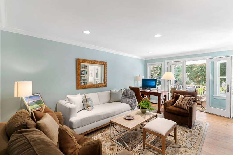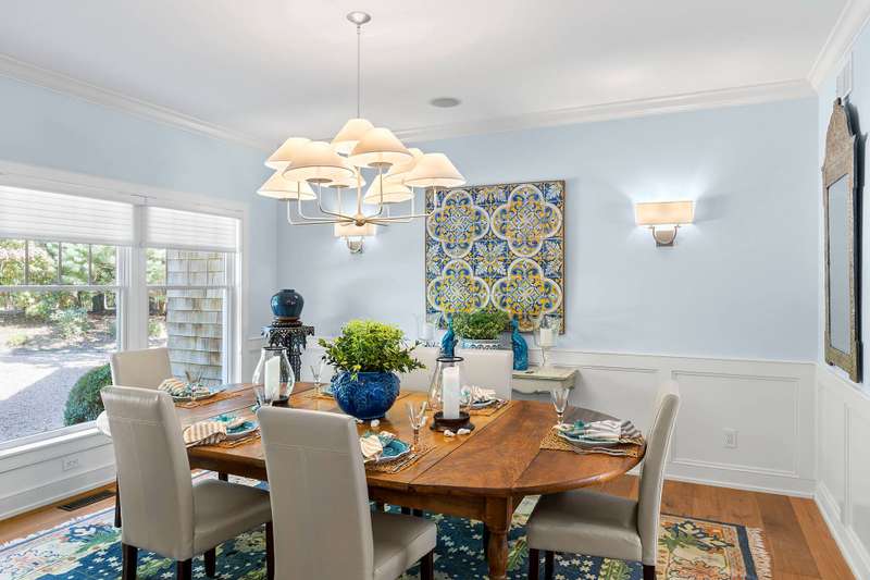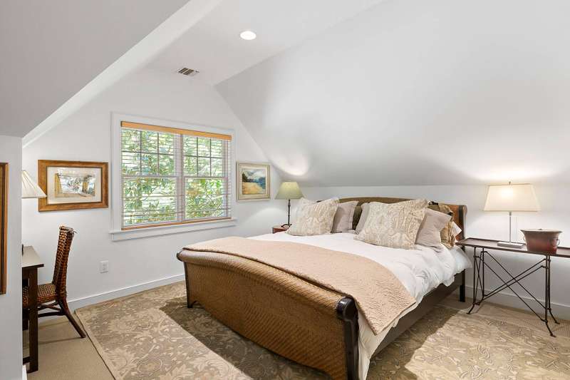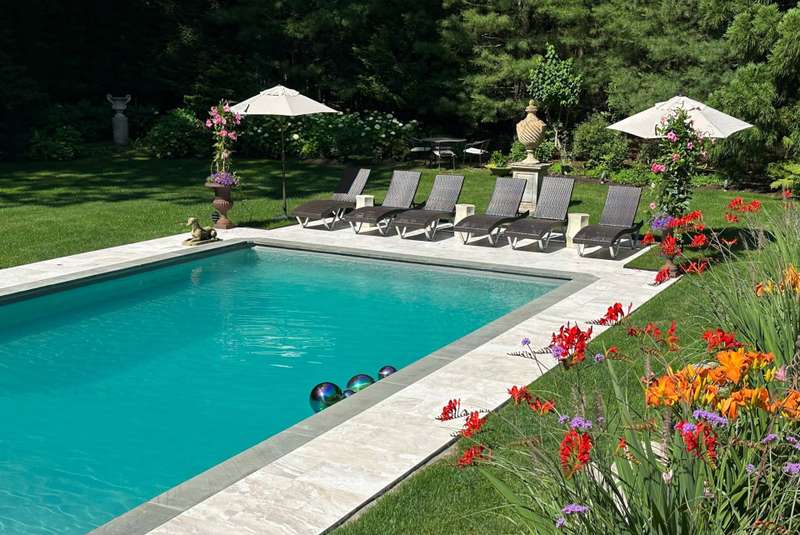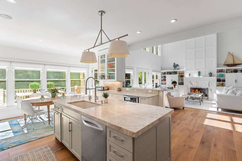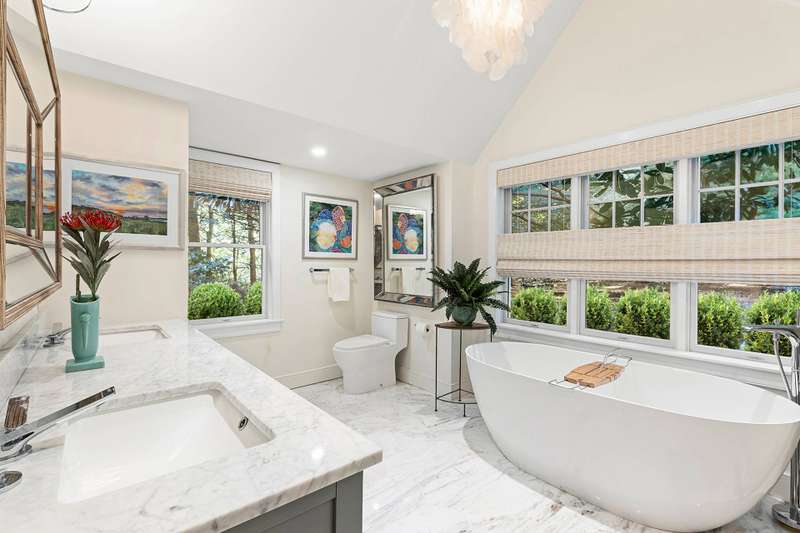 RR#:22-1534 Beautifully appointed, this 4500 sq/ft traditional contemporary situated down a meandering driveway, offers soaring double height ceilings with an open concept interior and cascading southern natural light. This two-story gem is located just minutes from East Hampton Village with world class beaches, designer shops and boating marinas. A welcoming foyer opens into a designer finished living room with a stately full height fireplace hearth and numerous oversized windows and glass doors. All flow into a brand new 'state of the art' chef's eat-in kitchen featuring a Wolf stove, microwave and oven, a Miele column refrigerator, and a Thermador column freezer completed with Quartzite countertops. In addition, on the first level there is a formal dining room and an inviting family and media room that opens out to spacious decking with a large, covered porch for indoor-outdoor living at its very best. Wide plank white oak floors enhance this newly designed modern decor. You will also enjoy a luxurious, newly renovated primary bedroom suite with marble bath and soaking tub. The bedroom is complimented with a linear glass jewel fireplace, all located on the first floor. The primary wing overlooks park-like towering mature trees with flowering gardens and a heated pool with built-in grill and entertainment areas. The second floor offers a 2-bedroom private wing with bath and an additional 2 bedrooms with a shared bath. This thoughtfully landscaped property in an upscale neighborhood also offers a basketball court and all-weather community tennis courts for the family enjoyment. Minutes from local farm stands, biking and hiking trails and LongHouse Reserve, a sculpture museum with indoor and outdoor living art featuring numerous events and tours. The iconic, world class 'Main Beach' is just a 5-minute ride away with boardwalk dining and evening beach concerts all season. This is your summer oasis with every amenity and luxury desired to enjoy a Hampton's summer vacation. Listing ID: 895685