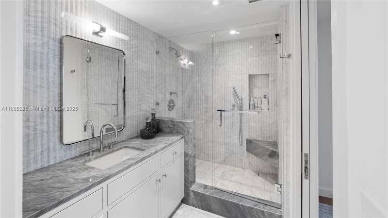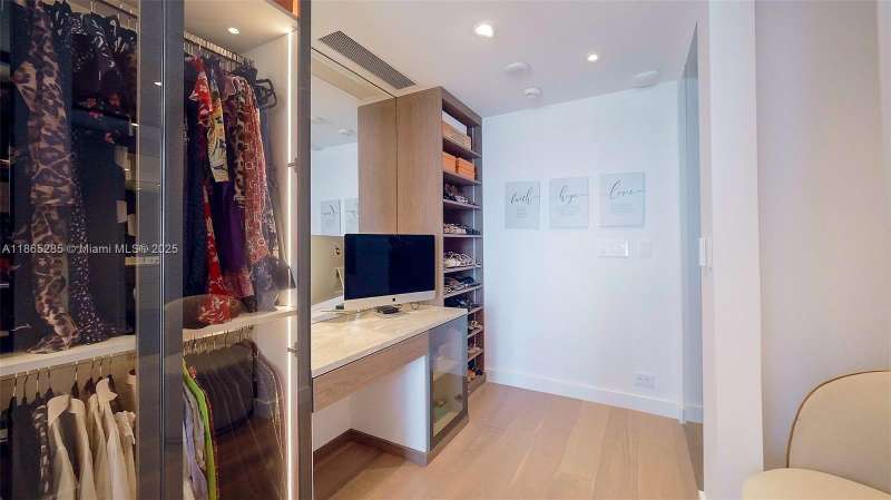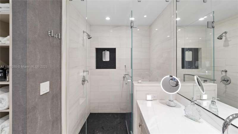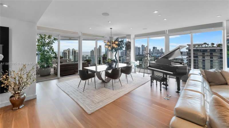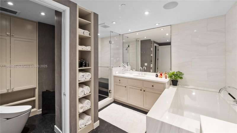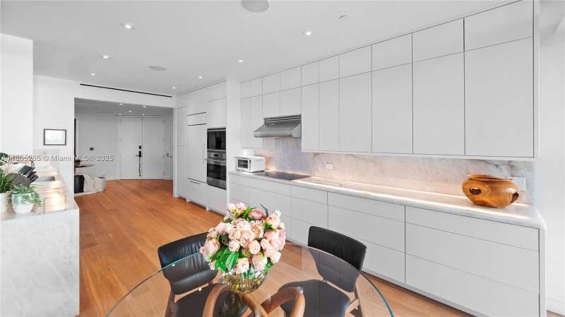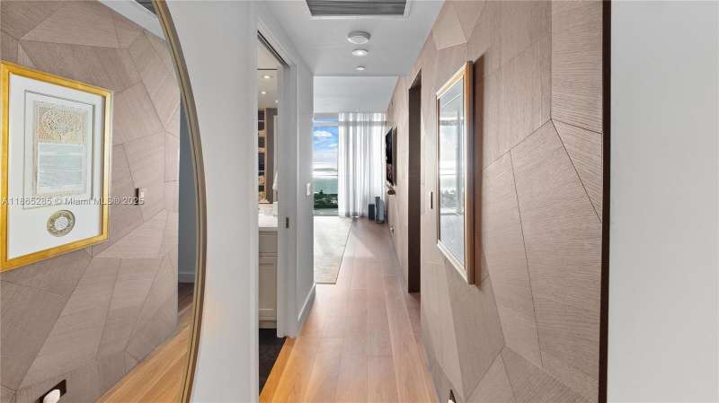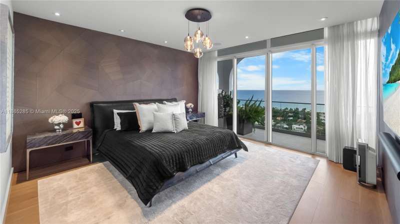 Experience luxury living in this exclusive Penthouse with breathtaking direct ocean and Intracoastal views. Perfectly located near Aventura Mall, beaches, and fine dining, this 5-bedroom, 3.5-bath residence features two master suites, including a primary with a custom women's closet and a stunning Versace-tiled bath. The gourmet kitchen boasts Wolf & Sub-Zero appliances, Italian finishes, and Cristalito countertops with underlighting. Elegant interiors include custom cabinetry, a Versace-trimmed fireplace, Sonos audio, Lutron lighting, and remote blinds. A wraparound balcony invites outdoor dining and entertaining. Resort-style amenities include pool, valet, fitness center, restaurant, theatre, social room & marina.Fully funded reserves.