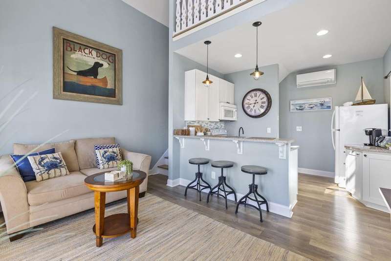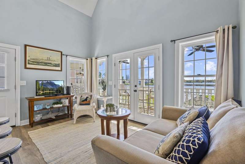 This is what you've been waiting for! An easy and affordable way to be on the water. Newer build with spectacular views of Crane Lake and the main lake. This retreat features 3 floors of living space with 2 bedrooms, 1 baths, deck and balcony. Living space and kitchen are up one level, to give you better views. Living room has dramatic 2 story ceiling bathing the area in natural sunlight. Close to the beginning of the 4 mile waterfront bike path, the boat ramp and walkable to many of the great food, drink and entertainment establishments. A boat dock is available for rent just steps away. Crane Lake is a quiet area ideal for kayaking, but connects to the main lake, too. Similar to condo living without the condo fees. Lake living is here waiting for you!