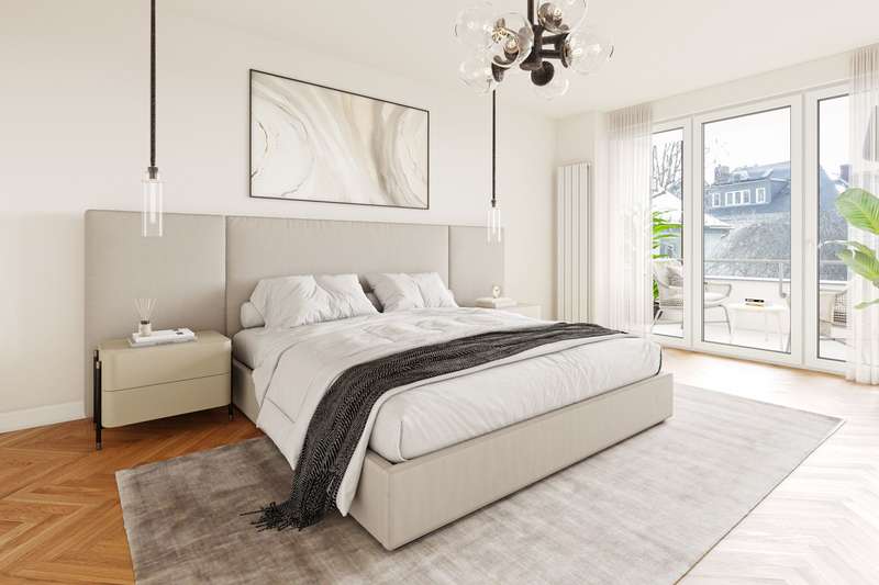 The single-family or multi-generation house on offer is in an urban location in Sachsenhausen-Nord, on the Museumsufer. Spread over three floors, with a spacious layout and a wide range of options for adapting the room layout to your needs, this exceptional home offers both a family with several children and couples who want to live and work comfortably under one roof the best conditions for a luxurious home directly on the Main. The furnishings are high-quality and timelessly modern. Several designer bathrooms are available, solid oak parquet flooring has been laid in all living rooms and bedrooms. The ceiling height in the living area is approx. six meters and the room concept is currently kept open. Another special feature of this location is the large, south-facing garden with a spacious terrace. The property has a garage with an electric door and two parking spaces in front of it.