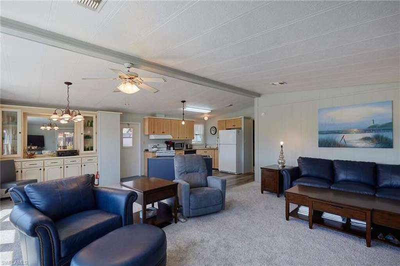 AFFORDABLE RIVERFRONT COMMUNITY LIVING! Welcome to Oak Park Co-op, a peaceful 55+ retirement community nestled near historic Alva Village and surrounded by small farms, lush woods, and the Caloosahatchee River. Residents enjoy a range of amenities, including a fishing deck overlooking the river, a marina, various game courts, a helicopter pad for medical emergencies, and a community bus for outings and shopping trips. This remodeled manufactured home sits on a spacious corner lot and boasts several recent upgrades. Impact windows (2021) and a newer roof (2018) provide peace of mind, while new flooring throughout enhances the home's modern appeal. The bedrooms feature brand-new carpet as well as the living areas. The kitchen showcases luxury vinyl plank flooring. The kitchen has been partially remodeled, including a new island for extra storage. Plus, the seller is offering a credit so you can select the countertop of your choice to personalize the space. Also GOLF CART INCLUDED WITH SALE! Don't miss this opportunity to make Oak Park Co-op your home!