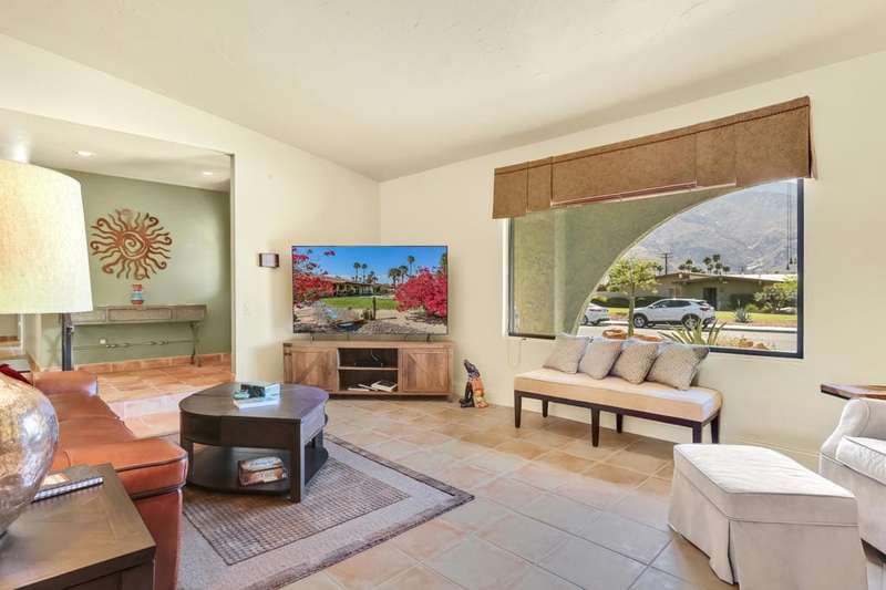 Vacation Rental. Minimum 4 night stay required. PS ID # 4630. Rate listed is monthly, good through Sept 2024. Beautiful Spanish style vacation rental home is turnkey ready to help make memories for your Palm Springs vacation. Close to downtown Palm Springs. Enjoy a 12,000 sq/ft lot with large lap pool and inground spa. Large yard to play. Children welcome. Poolside audible door sensors for kid safety. Available Pack and Play with mattress/bassinet. High chair. Nice open kitchen for the chef in you! TWO work/office spaces for those who need to work. Covered patio for shade/ open patios for sun seekers and dining. Sleep up to six persons in 3BR with 2 beautiful baths. Gas fireplace and mountain views. Utilities included including pool heating! Attached garage with laundry. Lots of add'l parking. $1000 Refundable Deposit. 12.5% TOT tax. Contact Agt for availability. Sorry NO Pets. RATES: May-Sept: $384/nt, Oct & Nov: $465/nt, Dec-April: $599/nt. April: $659/nt. All fees included plus tax.
