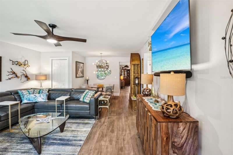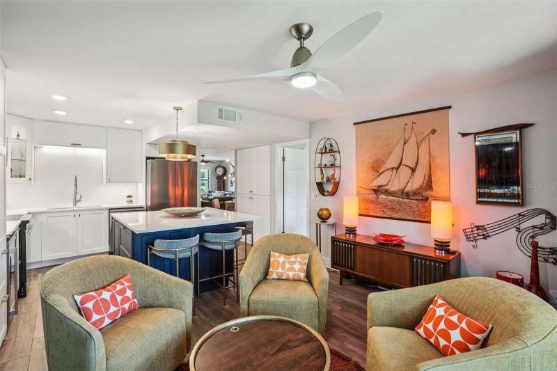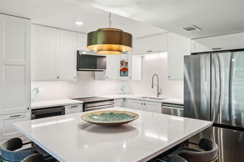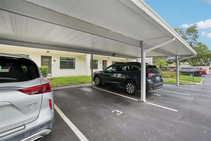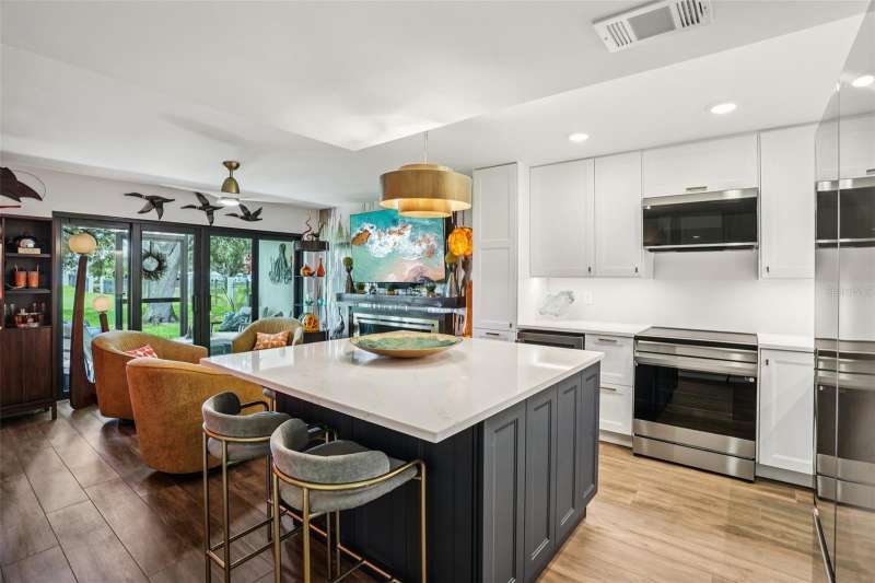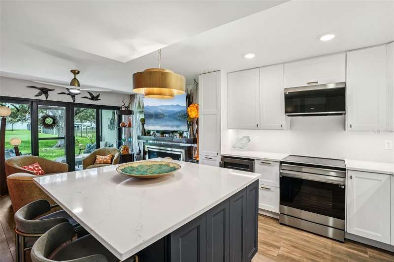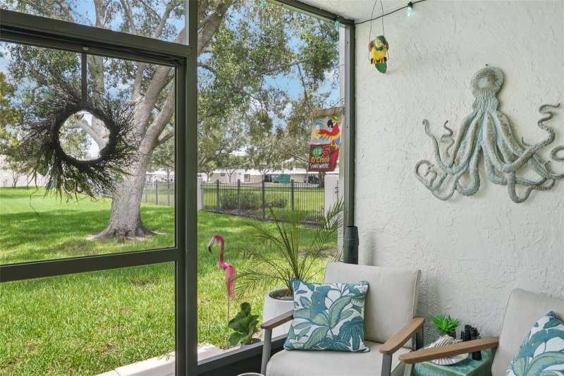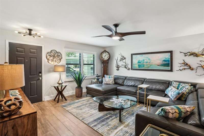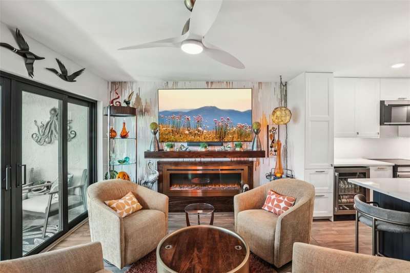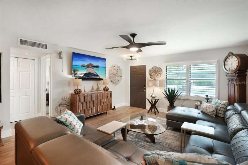 Live luxuriously in this rare exquisitely renovated split-plan 2-bedrooms, 2-baths condo with an assigned carport space. This condo is in northeast St. Petersburg’s 55+ community, Winston Park. Enjoy sitting and relaxing on the private screen-covered porch with quiet, peaceful views of the meticulously maintained grounds. Step through the front door to the beautifully decorated open living space, complete with updated features including newer kitchen (2025) with custom cabinets, quartz countertops, stainless-steel appliances (2023 & 2025), and an island. The kitchen opens to the family room where you will find a LED smart electric Touchstone fireplace with a custom-built Cedar mantel. You can relax and watch TV while enjoying the flames or enjoy the view of the grounds. The master bedroom is in the back of the condo offering an ensuite bathroom with a walk-in shower and a walk-in closet. The bathrooms are stylishly updated with smart toilets, and the hall bathroom has a tub with a shower. Throughout the condo you will find beautiful porcelain wood plank tile flooring, stylish light fixtures, plantation shutters, and new hurricane-rated doors and windows (2025) for peace of mind. Also updated is the (2022) HVAC system and the (2023) hot water tank. There are extra storage closets throughout, and additional storage in the building. The HOA fees include cable, internet, water, sewer, trash, pool, clubhouse, building maintenance, insurance, property manager, and more. The HOA has completed the Milestone Inspection and Reserve Study. This building and unit DID NOT FLOOD during the 2024 storms. You can splash around in the pool, go to the clubhouse for social events, and enjoy the occasional game on the shuffleboard courts. Live here and experience the best of NE St Petersburg’s restaurants, shops, entertainment, parks, BEACHES, golf courses, and so much more. Some of the furniture is negotiable with a reasonable offer.