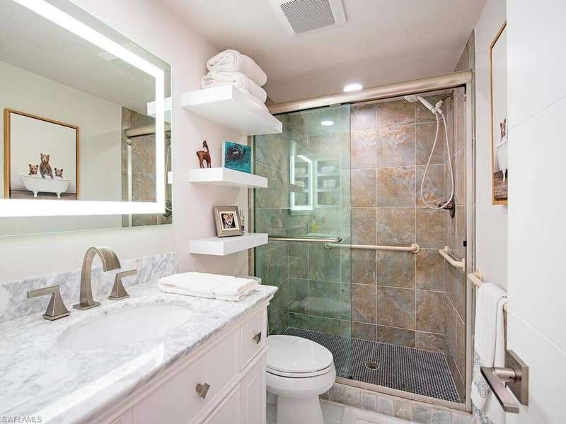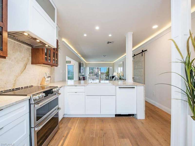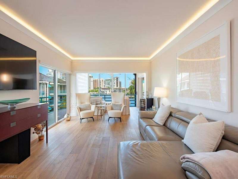 Park Shore Landings is one of the most sought-after low-density bay-front communities in Naples, ideally positioned along the serene waters of Venetian Bay and just a short stroll to the shops and dining found at Venetian Village. Known for its intimate setting, manicured grounds, and private beach access, the community offers a relaxed yet upscale coastal lifestyle in the heart of Park Shore. The unit offered is a rarely available top-floor, end-unit showcasing unobstructed western views across the bay, where evening skies and water reflections create a quiet, dramatic backdrop. The open-concept floor plan connects the kitchen, dining, office nook, and living areas, with natural light pouring in from multiple exposures, while the two bedrooms and two bathrooms are quietly secluded. Additional notable enchancements include rich wood floors throughout, a modernized kitchen with stainless steel appliances and precoius-stone countertops, as well as custom lighting-offering both style and comfort in every detail. Park Shore Landings features a bay-front pool and spa, private guest suite, grilling areas, available boat docks, and a resident clubhouse. Owners also enjoy private beach access through the Park Shore Association. This is a prime opportunity to own in one of Park Shore's most desirable bay-front enclaves, just minutes from Gulf beaches, Waterside Shops, the upcoming Four Seasons Naples Beach Club, and downtown Naples.