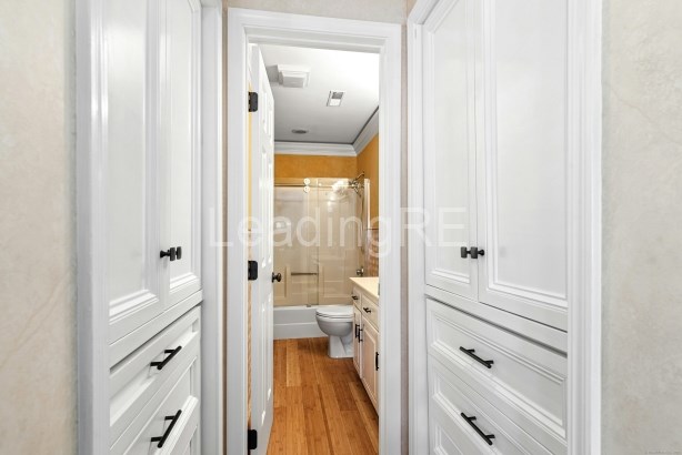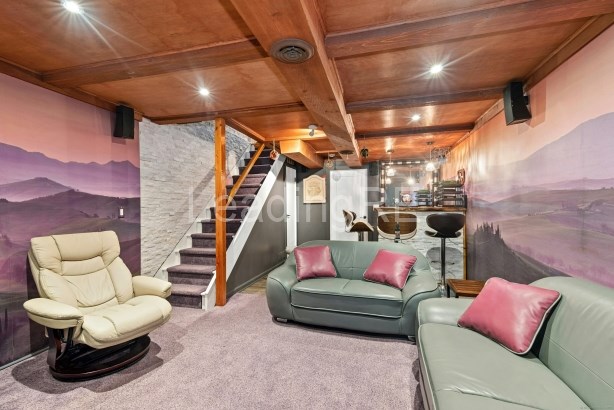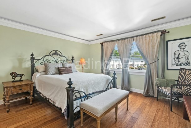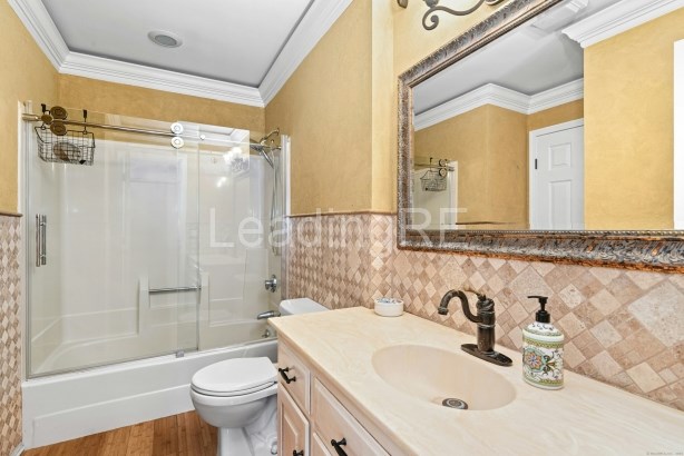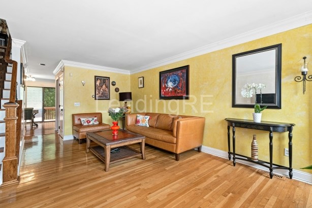 Stylish, spacious, and thoughtfully designed, this three-level, two-bedroom, one-and-a-half bath townhouse is located in the coveted Madison Commons community in Bridgeport's North End. The home offers a refined balance of elegance and comfort, with every detail carefully considered. The main living areas are enhanced by sun-filled spaces, hardwood floors, and custom finishes that create a warm, sophisticated atmosphere. Venetian plaster walls, thick crown moldings, and unique wall treatments bring character and style throughout. A private deck off the kitchen provides a peaceful retreat overlooking the woods of a 90-acre park, ideal for relaxing or entertaining. The bedroom level features quality bamboo flooring and custom closet built-ins that maximize storage. The lower level is finished with custom cabinetry, a custom bar, and a theater-style entertainment room. A dedicated utility and exercise room, along with a newer washer and dryer, add convenience. Two assigned parking spaces are located just outside the front door. This is a truly special property that combines functionality with elegant design. Perfect for buyers seeking a home in a serene setting yet close to all the amenities of the North End, this residence offers a unique opportunity in Madison Commons. Schedule your private showing today.