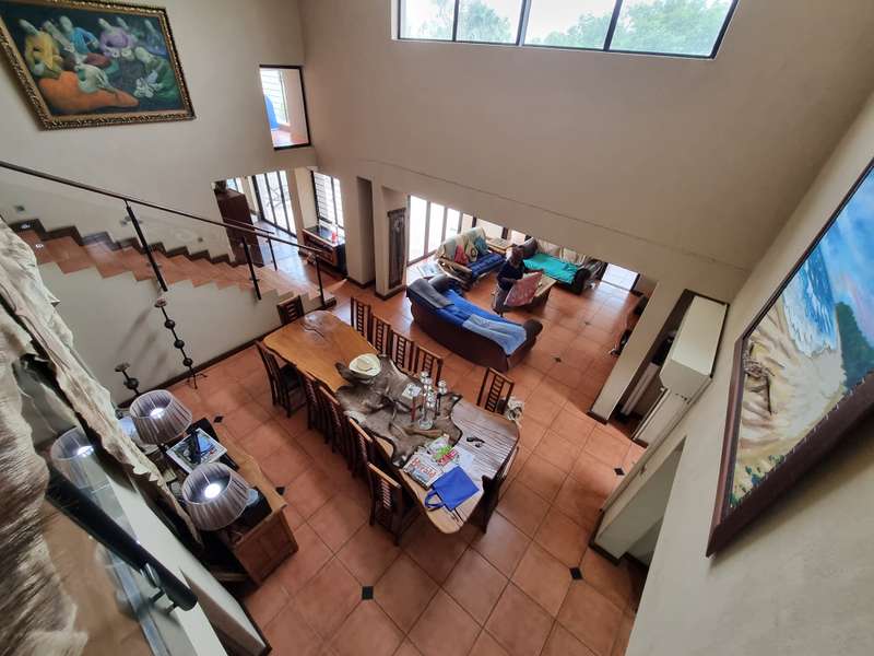 A beautiful double storey well designed home with spacious 3 bedrooms and build in cupboards. 2 Modern full bathrooms with the main bedroom having an en-suite bathroom. A sliding door entrance to an outside shower as well. The kitchen is perfect for the whole family with beautiful granite tops, plenty of cupboard space, eye level oven, hob, a spens and a door to the back of the garden. Big open plan dining room, lounge area with a sliding door to the balcony and pool area which helps to cool off during the summer months with a beautiful entertainment braai area. A jacuzzi inside the home for relaxation. Domestic quarters with a small bathroom A double garage with remote garage doors for 2 vehicles but can park 4 vehicles otherwise to be used as a big working area. Massive storeroom in the garage. Excellent value for the price. Do not miss out. Contact today for an appointment