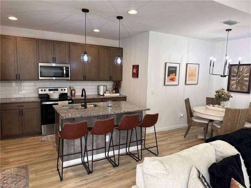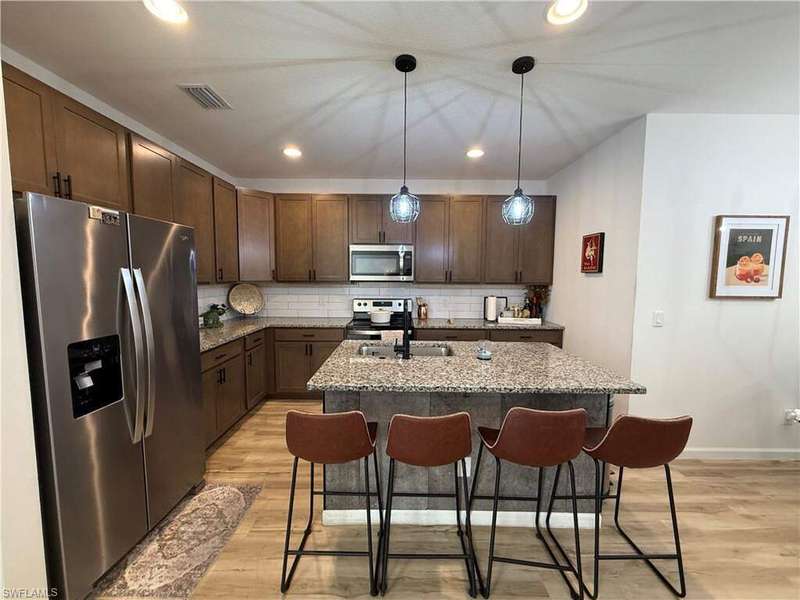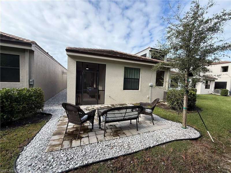 This stunning one level single family home is available for a long term lease at an unbeatable rate! Low maintenance luxury vinyl flooring throughout, stainless steel appliances, granite counter tops & an open layout perfect for any occupant. Outside of the 1300 square feet of living, enjoy the screened lanai or sun bathe on the patio out back. Centrally located minutes to I75 access, 15 minutes to barefoot beach & surrounded by all the best nightlife, restaurants, entertainment Bonita Springs has to offer. Public golf community with pickle ball, fitness center, and much more!