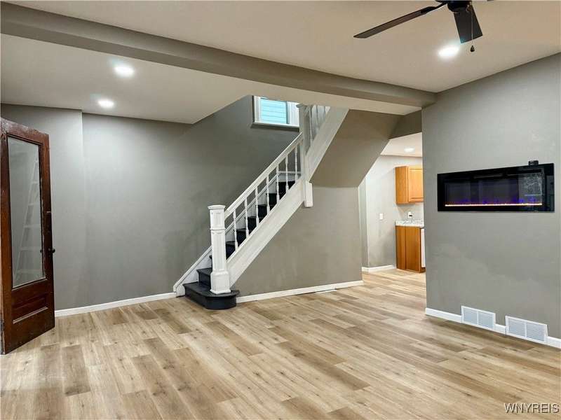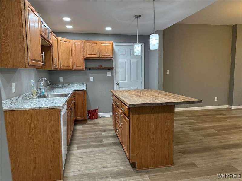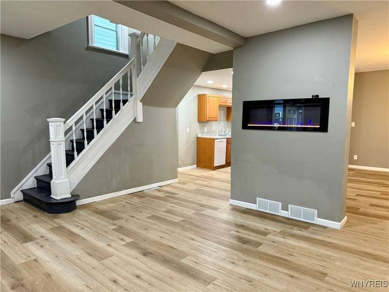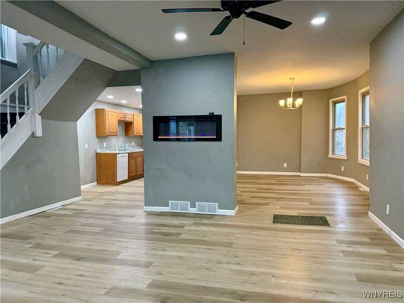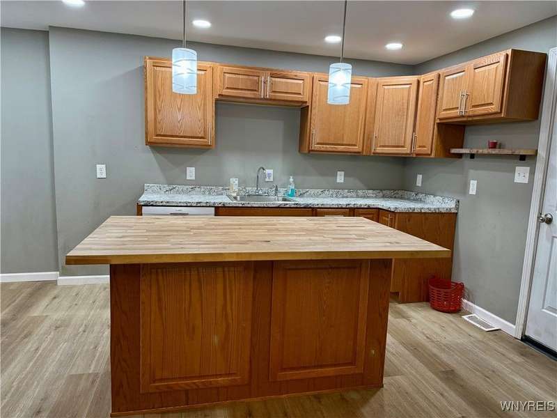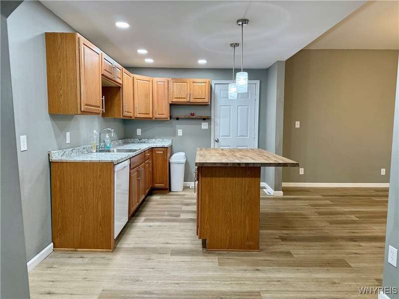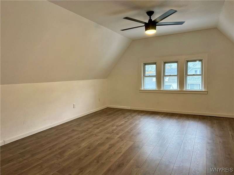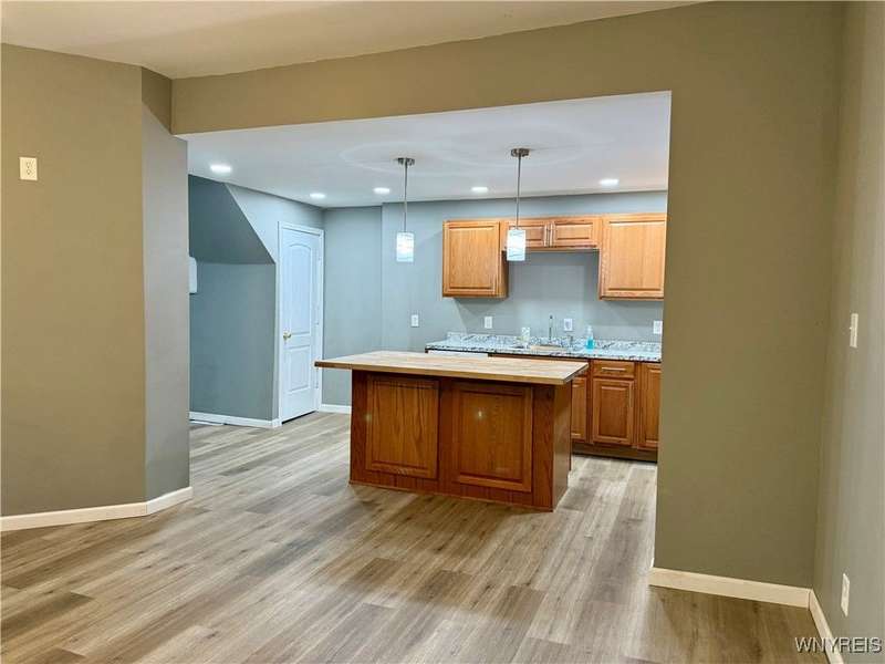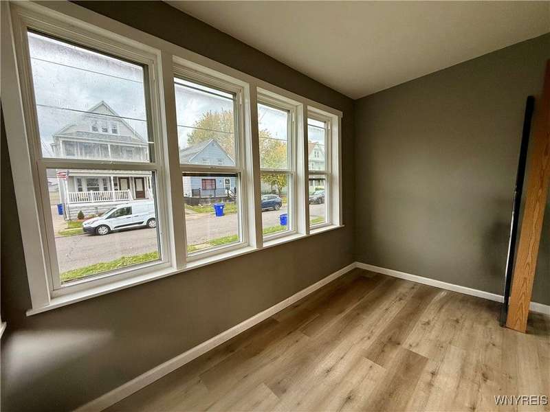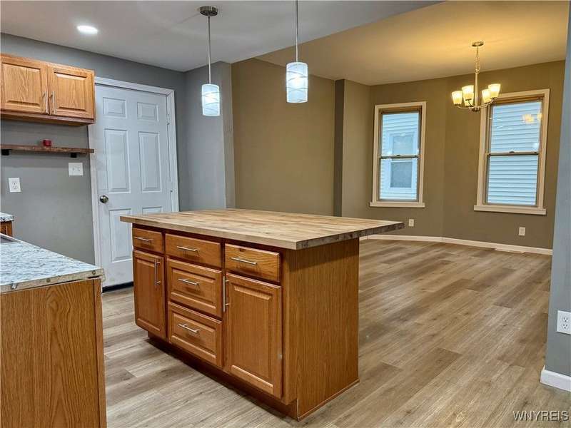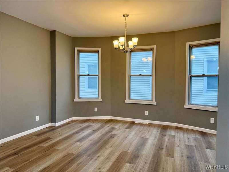 West Seneca Victorian offering 3 bedrooms, 1 bath has been lovingly updated inside with all new kitchen cabinets, counters, lighting, flooring, butcher block counter on the island, faucet, sink and dishwasher 2024. Formal dining room opens from the kitchen and leads to the living room with electric fireplace, vinyl plank floors, new drywall 2023 and new French doors that lead to enclosed porch with new windows and trim. Totally open first floor! Large foyer has an open staircase that leads to the second floor and three bedrooms. One bedroom with curved windows has no closet 2023. Third floor has two additional finished rooms with Luxury Vinyl Tile Floors - one with a closest. Additional updates include circuit break box, meter & exterior entry cable, switches & outlets 2023. New drywall throughout the entire house 2023. New plumbing, including water and drain lines 2022. Updated, large bathroom has washer dryer hookups. New flooring throughout 2025. New gutters & downspouts 2025. Full tear off roof 2017. Third floor finished rooms are not included in the overall square footage. West Seneca schools and easy access to stores and thruway. Delayed negotiations - offers due Tuesday, November 11 at noon. Open house Saturday, 11/8 from 11-1.