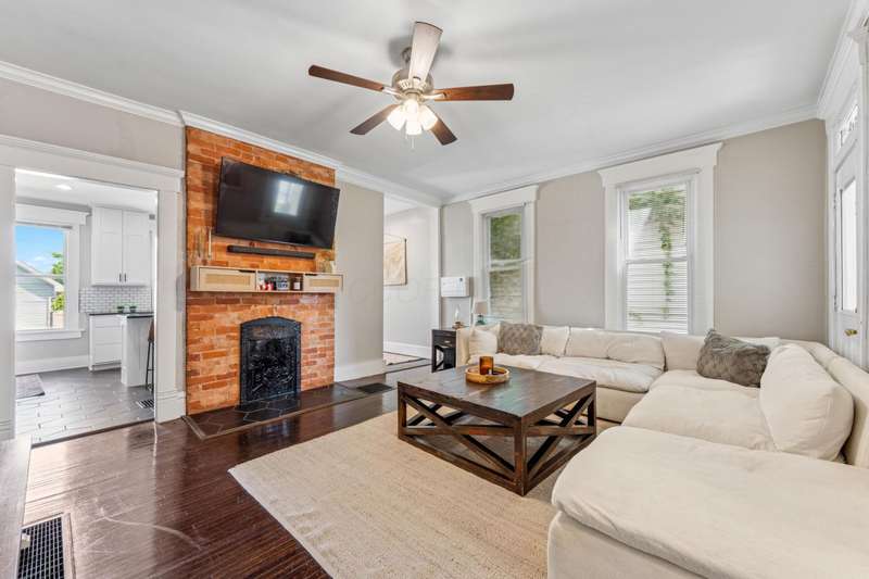 Renovation in 2021 brings new life to this classic Italian Village gem! Blending original charm with thoughtful updates, this 2-bedroom home features custom Amish cabinetry with soft-close drawers, granite countertops, stainless appliances, electric door lift to access the basement, exposed brick, and stylish tilework. The original hardwood floors, pocket doors, and decorative fireplaces add timeless character. Two gorgeous full baths and a convenient half bath are all newer, plus second-floor laundry. The finished third floor???accessed from one of the bedrooms???is included in the square footage and currently used as a cozy den or bonus room. Fresh paint inside and out! Just steps from Short North favorite shops, restaurants and entertainment???this home is perfect as a primary residence or for long- or short-term rental opportunities in an unbeatable location!