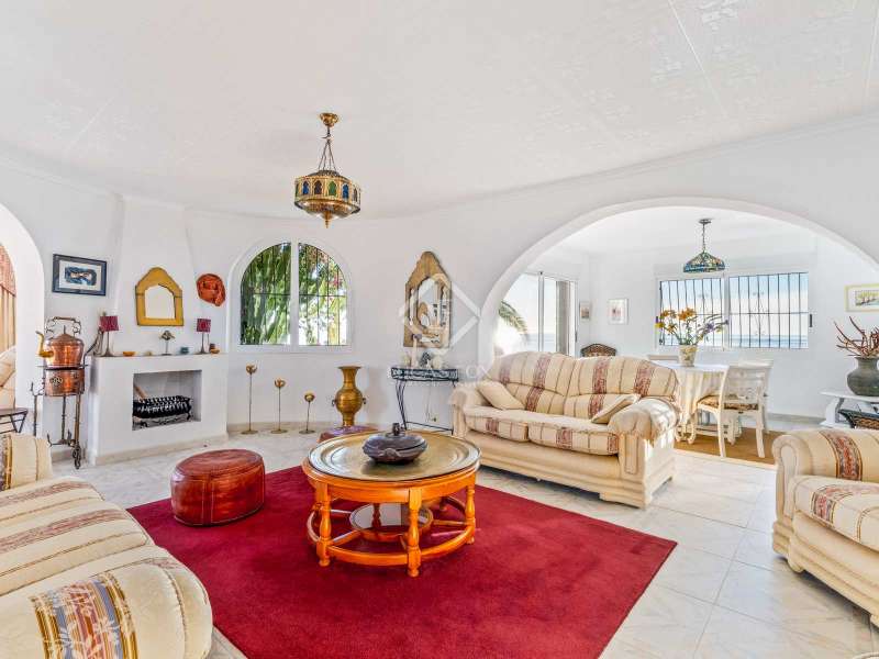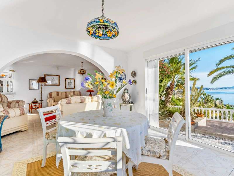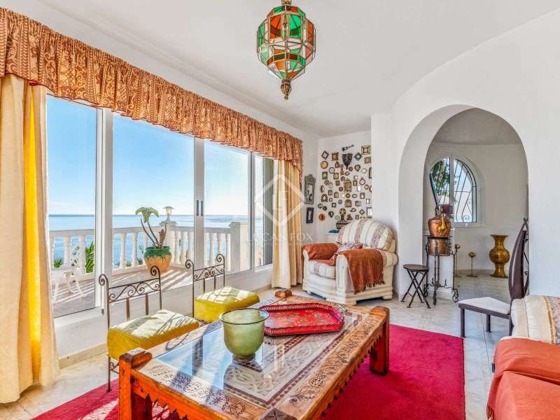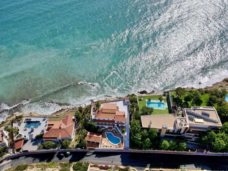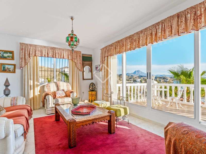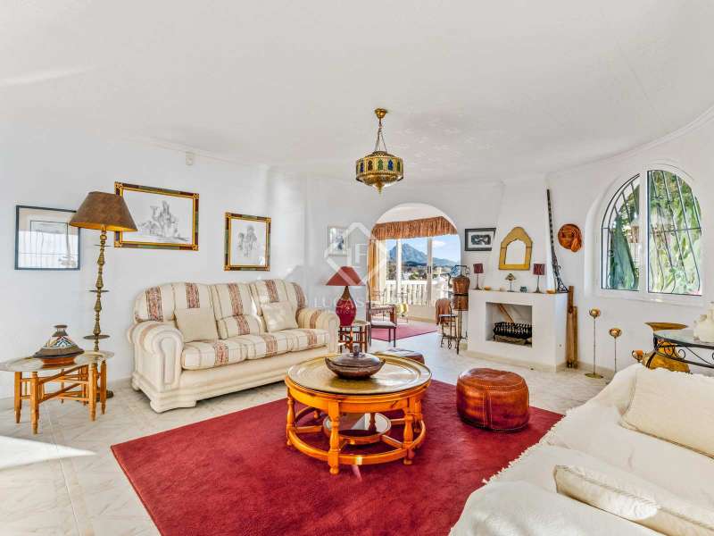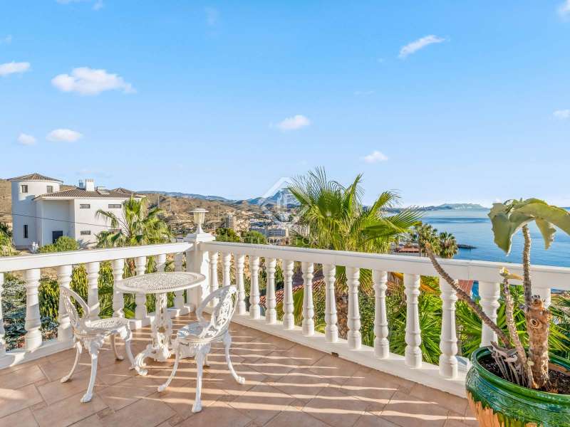 This magnificent house is located on the best street in Pueblo Acantilado in El Campello, just 10 minutes from the centers of El Campello and Villajoyosa. It is a quiet area, which stands out for having the best sea views in the entire province of Alicante. It has very good connections, thanks to the tram station a 10-minute walk away, as well as the national road N-332 and the AP-7 motorway. The closest beach is Cala Lanuza, which is a 10-minute walk away. The plot of more than 1000 m² offers numerous corners to enjoy the views: from its beautiful terraces, we can contemplate the mountains and the sea, passing through the city of Alicante and its castle to the island of Benidorm and the impressive Puig Campana, the second highest mountain in the region. There is also a large swimming pool to cool off on summer days and a summer kitchen to enjoy meals with family and friends. The plot also has a garage for three cars, as well as palm trees and several fruit trees. As for the house, it is distributed over two floors that can be left independent, depending on the use you want to give to the spaces. On the ground floor, we have a entrance hall, a ensuite bedroom that can be used as a living room, a kitchen with a pantry and technical room, two additional bedrooms and another full bathroom . Going up to the main floor , we have numerous rooms with views of the sea and the mountains: three large living rooms (two of them with fireplace), a semi-open kitchen with sea views, two bedrooms and two complete bathrooms. The 1982 house has been perfectly maintained with top quality materials, electric shutters, split air conditioning and large windows. Get in touch for more information.
