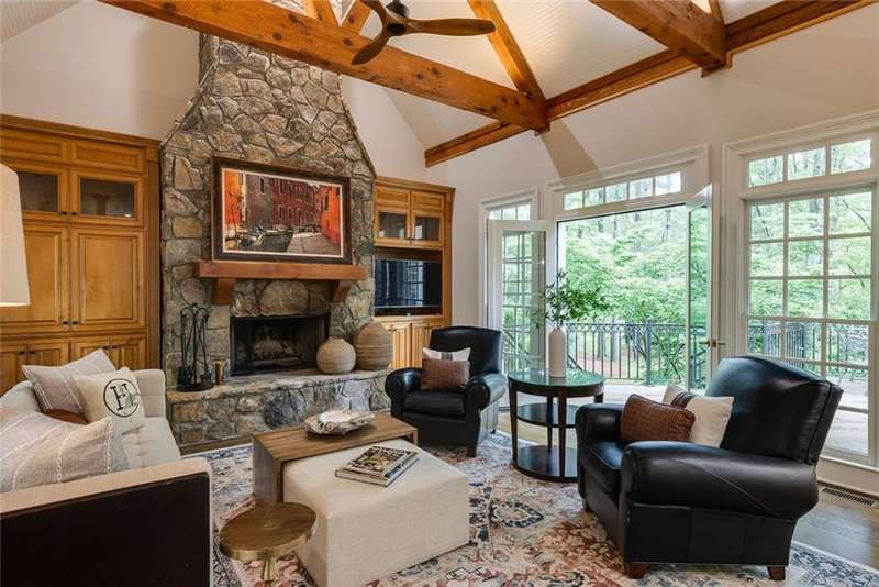 Exquisite Chattahoochee Riverfront Estate in Sentinel Ferry! Welcome to this rare and elegant riverfront retreat in the prestigious gated swim and tennis community of Sentinel Ferry. Perfectly situated on a level lot with sweeping views of the Chattahoochee River, this custom-built home offers a seamless blend of luxury, comfort, and natural beautyall in one of Sandy Springs most desirable locations. Step inside to a dramatic two-story foyer that sets the tone for the homes refined interiors. A richly paneled study with built-in bookcases and a fireplace provides the perfect space for a private office or library. Opposite, the banquet-sized dining room impresses with elegant wainscoting and a tray ceiling, ready to host gatherings both large and intimate. The light-filled two-story great room features soaring Palladian windows that frame breathtaking river views, complemented by custom built-ins and a stately fireplace. Just off the great room, a covered deck offers a peaceful perch overlooking the lush, private backyard and the tranquil waters beyondideal for morning coffee or evening entertaining. The heart of the home is a chefs dream kitchen, beautifully outfitted with painted cabinetry, quartz countertops, a stylish tile backsplash, and a large center island with breakfast bar seating. High-end stainless steel appliances include a Wolf gas cooktop and double ovens, while a coffee bar with beverage cooler and a walk-in pantry add thoughtful convenience. The kitchen flows effortlessly into the sunny breakfast room and a beamed family room with a cozy stone fireplaceperfect for relaxed everyday living. Also on the main level are two powder rooms, including one located within the spacious laundry roomoffering both functionality and convenience for daily living and entertaining. The main-level owners suite is a luxurious sanctuary, featuring a tray ceiling, a sitting area with a double-sided fireplace, and large windows that invite in natural light. The spa-like bath includes a double vanity, a glass-enclosed shower, soaking tub, and his-and-hers walk-in closets with custom closet systems for ultimate organization. Upstairs, four spacious secondary bedrooms provide flexible space for family and guests. Two bedrooms feature private en-suite baths, while the remaining two share a well-appointed Jack-and-Jill bath. Each room offers generous closet space and natural light. A large bonus room, accessible via a separate rear staircase, makes an ideal playroom, media space, or teen retreat. There's also a walk-in attic for additional storage. The fully finished daylight terrace level opens up a world of possibility. Designed for entertaining, it includes a media room, wine cellar, and a game room with a full bar. A private guest bedroom and full bath make it perfect for visitors or multigenerational living. An exercise room and a flexible-use roomideal for a home office, craft room, or additional bedroomround out this incredibly versatile space. Step outside to a covered patio and enjoy seamless access to the backyard and riverfront beyond. This home is freshly painted, with hardwood floors on the main level, new flooring on the terrace level, high ceilings, detailed millwork, and designer finishes throughoutevery detail has been thoughtfully curated to offer both beauty and function. Located in the heart of Sandy Springs, you're just minutes from top-rated public and private schools, Dunwoody Country Club and Golf Course, parks, trails, and vibrant shopping and dining districts. With easy access to major interstates, this is a location that keeps you connected to everything Atlanta has to offer while allowing you to retreat to your own private riverside sanctuary.