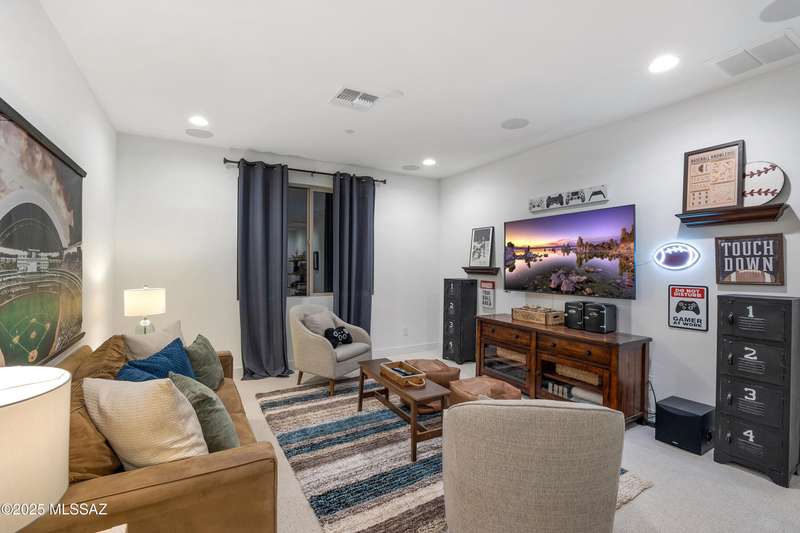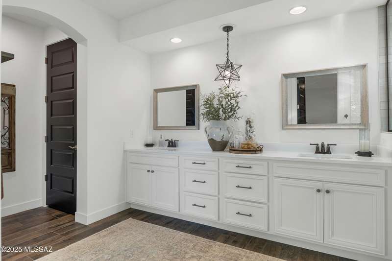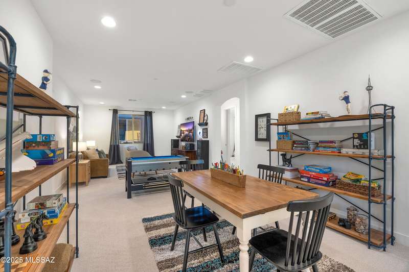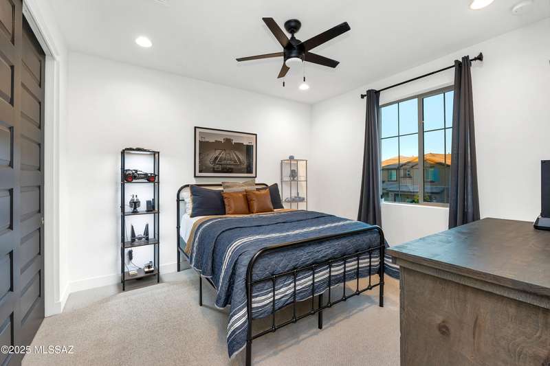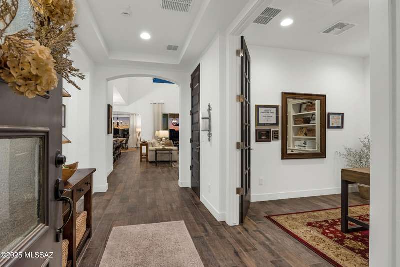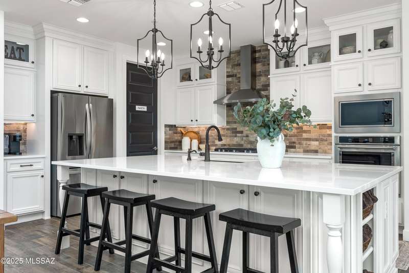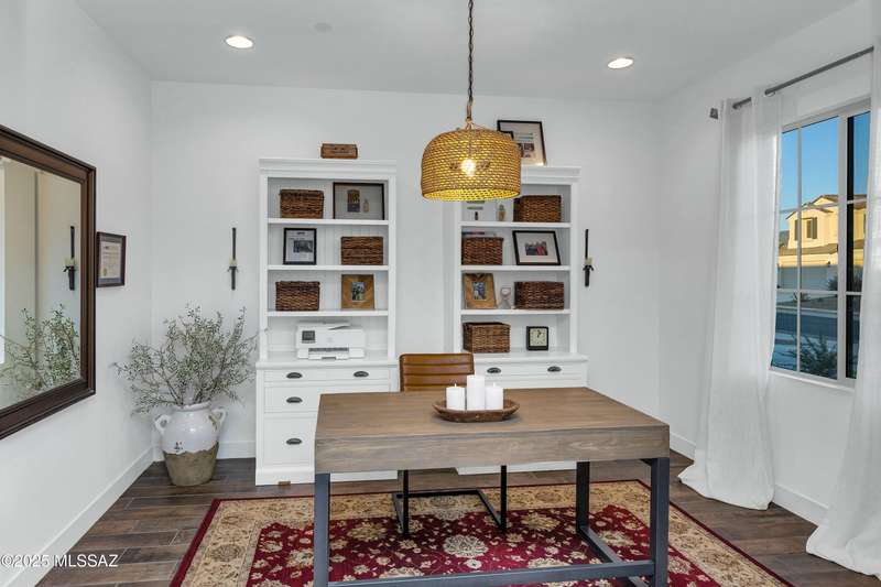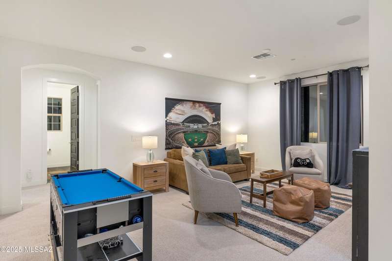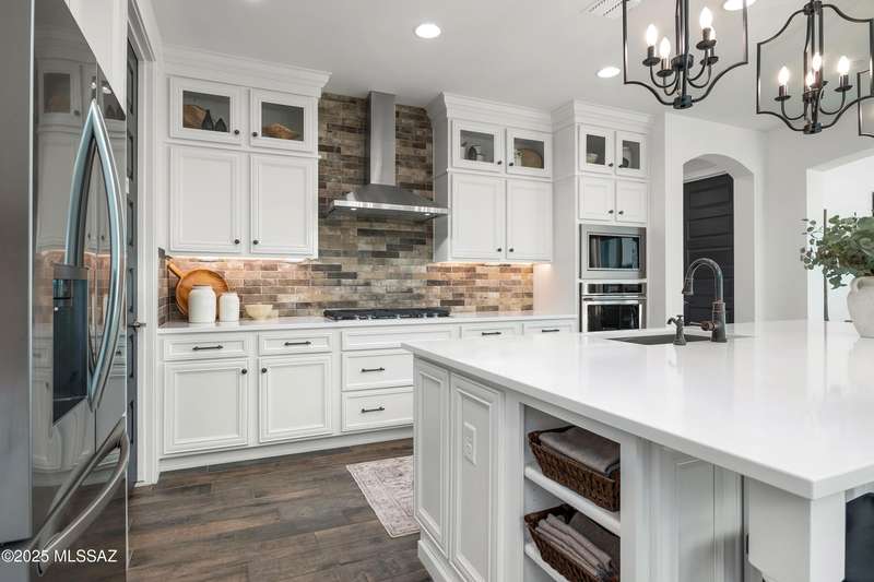Discover this highly upgraded Pulte Messina model in the coveted Rocking K community, located in the award-winning Vail School District. This spacious home offers 6 bedrooms, 4.5 baths, a loft, a den, and a 3-car tandem garage, with a rare 2-foot floorplan extension for added space. The chef's kitchen features KitchenAid(r) appliances, quartz countertops, beautiful pendants, an expansive granite sink, Oakcraft(r) cabinetry with soft-close drawers, and built-in pullouts. Retreat to the primary suite, where a spa-like bathroom showcases Oakcraft cabinetry, a walk-in shower with dual rain showerheads, subway tile surrounds, and a sleek glass partition. All secondary bathrooms and the laundry room feature matching cabinetry, upgraded glass showers, and premium finishes. The backyard is a true