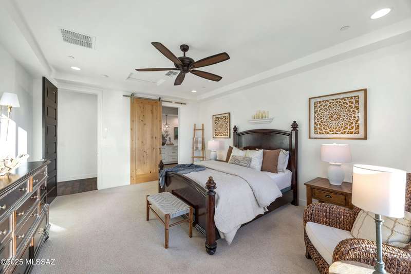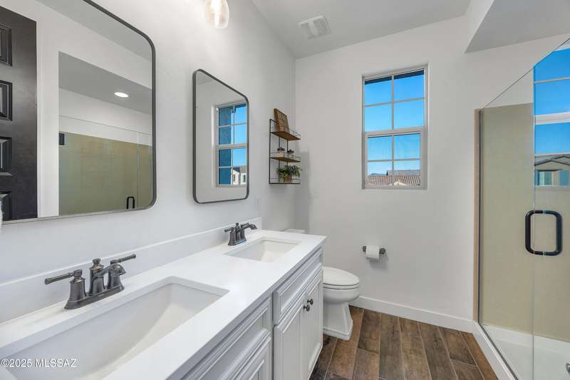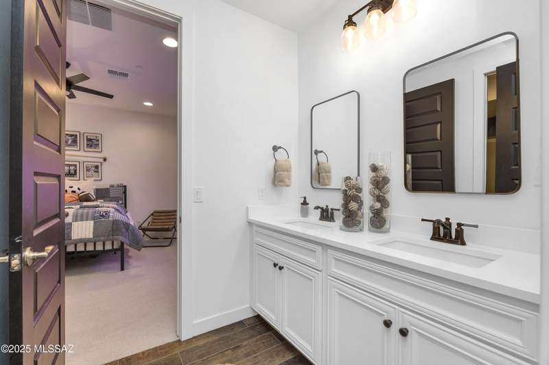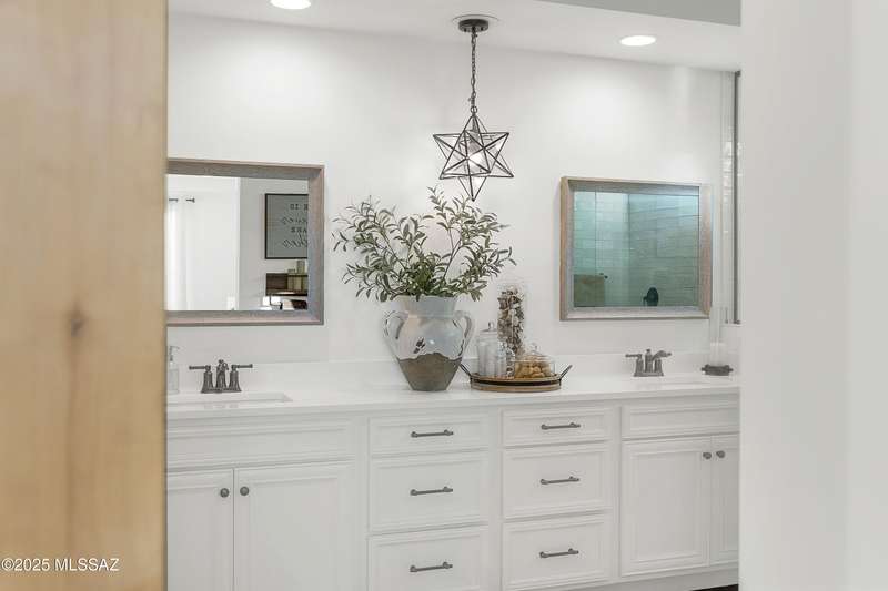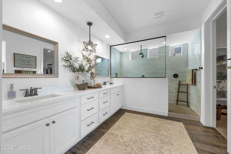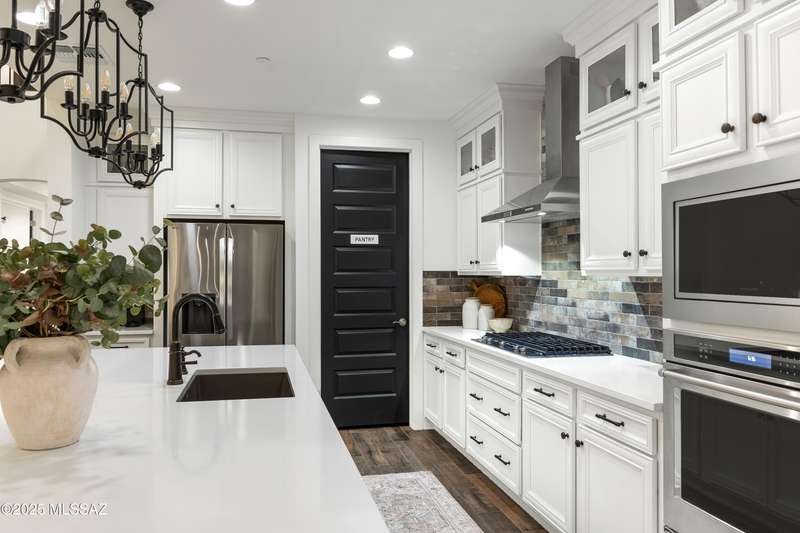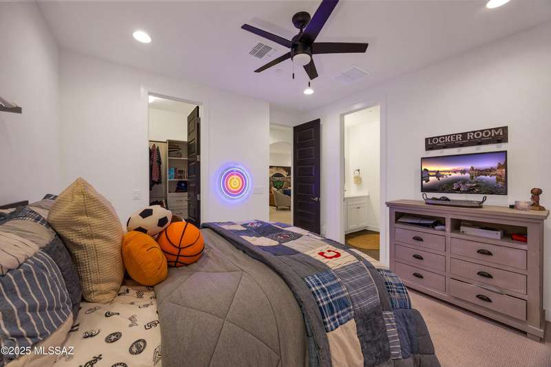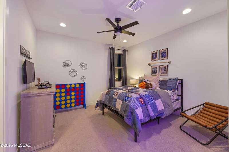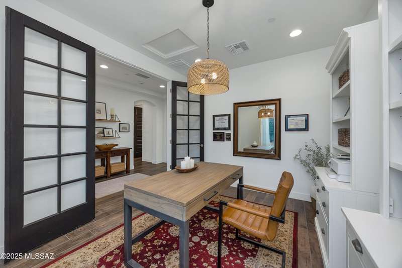Discover this highly upgraded Pulte Messina model in the coveted Rocking K community, located in the award-winning Vail School District. This spacious home offers 6 bedrooms, 4.5 baths, a loft, a den, and a 3-car tandem garage, with a rare 2-foot floorplan extension for added space. The chef's kitchen features KitchenAid(r) appliances, quartz countertops, beautiful pendants, an expansive granite sink, Oakcraft(r) cabinetry with soft-close drawers, and built-in pullouts. Retreat to the primary suite, where a spa-like bathroom showcases Oakcraft cabinetry, a walk-in shower with dual rain showerheads, subway tile surrounds, and a sleek glass partition. All secondary bathrooms and the laundry room feature matching cabinetry, upgraded glass showers, and premium finishes. The backyard is a true